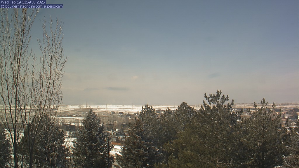 The Superior cam has a great view to the northwest over Boulder, the Flatirons, Indian Peaks and Long’s Peak.   The Coal Creek trail is visible in the foreground with old town Superior.  Thanks to Aweida Venture Partners management for the great view.