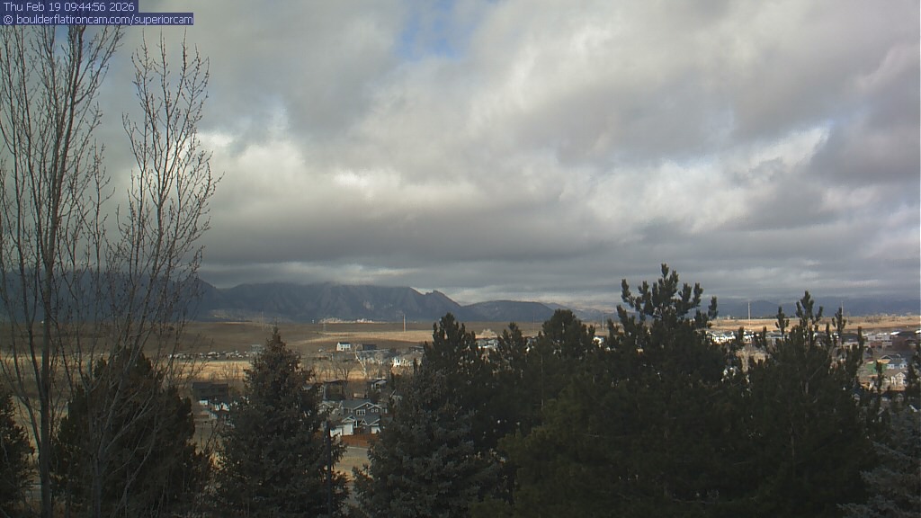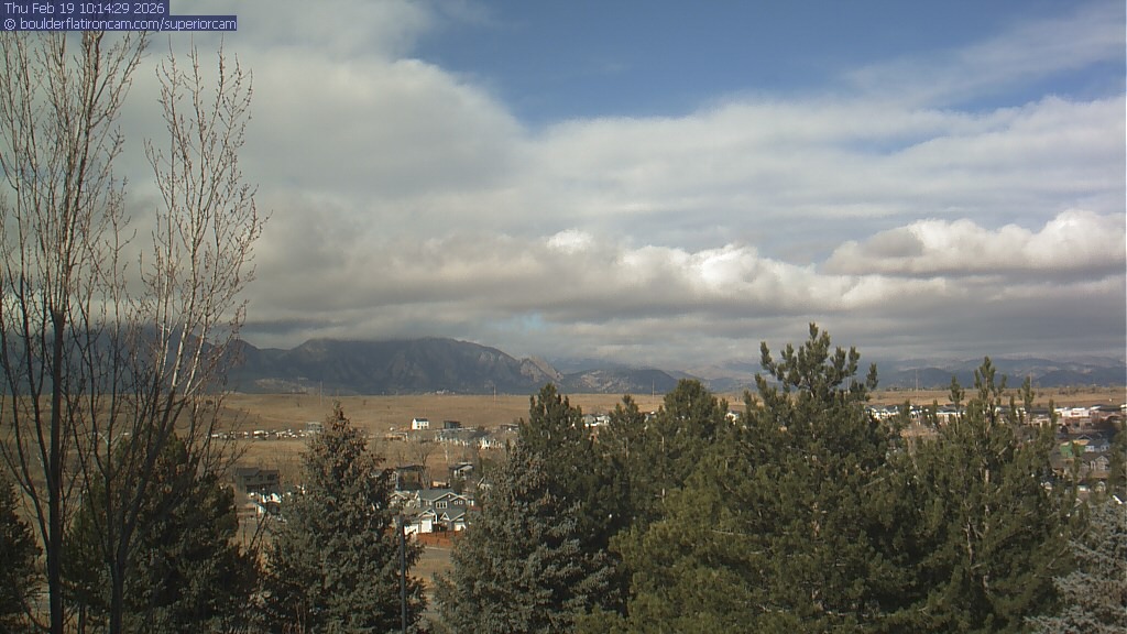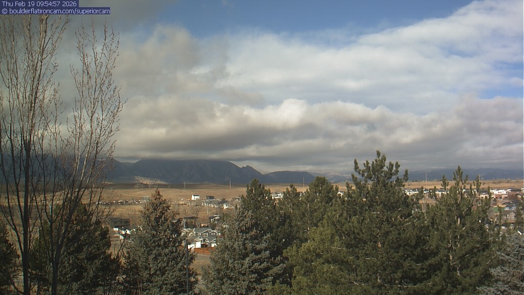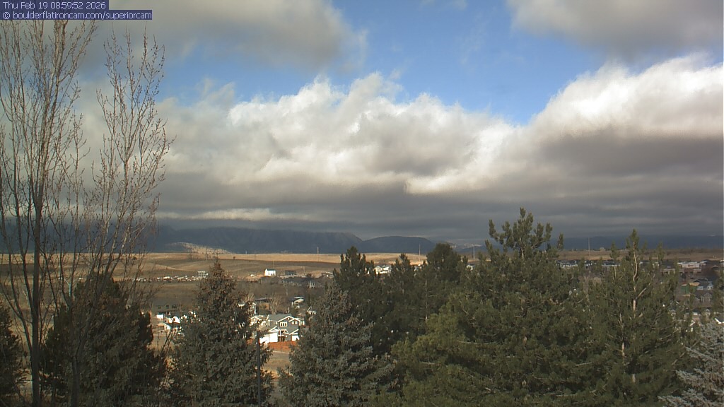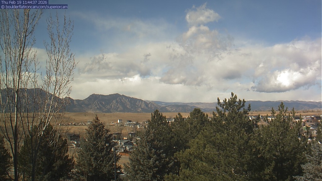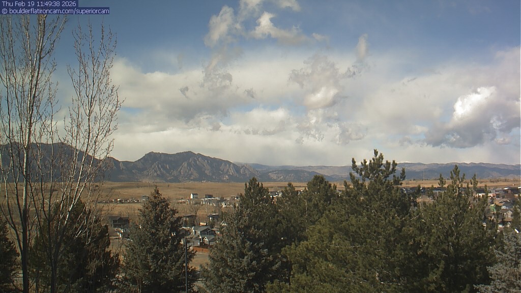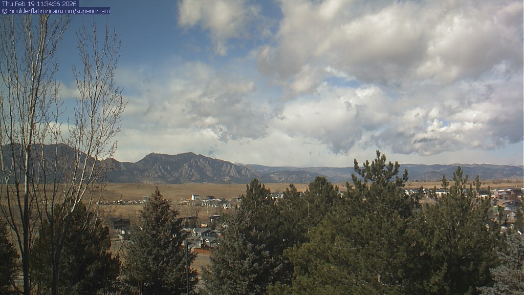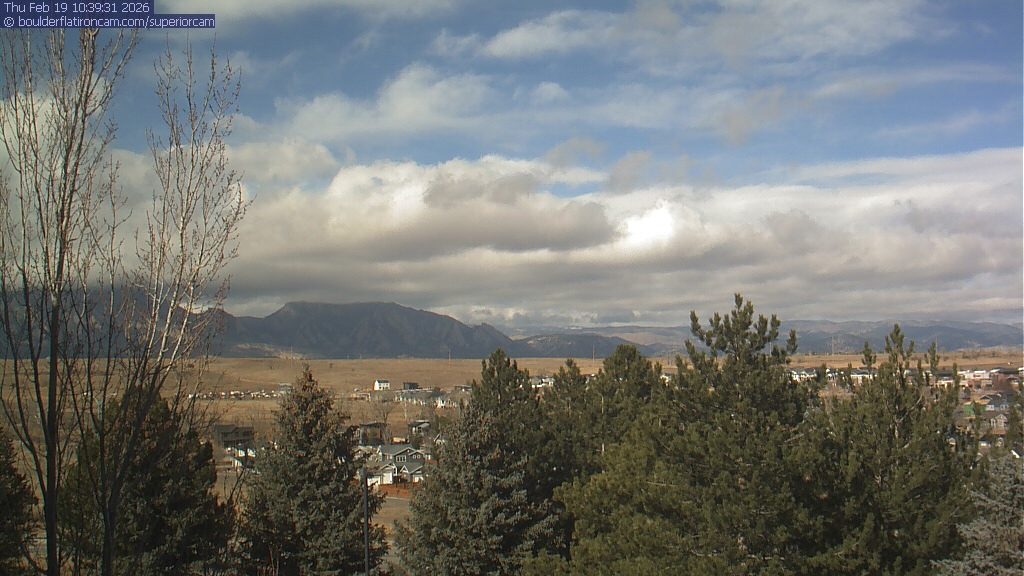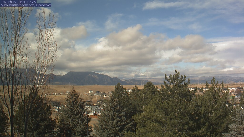The Superior cam has a view to the northwest over Boulder, the Flatirons, Indian Peaks and Long’s Peak.   The Coal Creek trail is visible in the foreground with old town Superior.