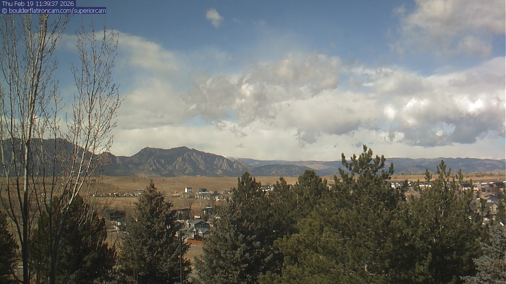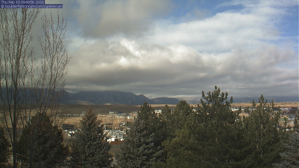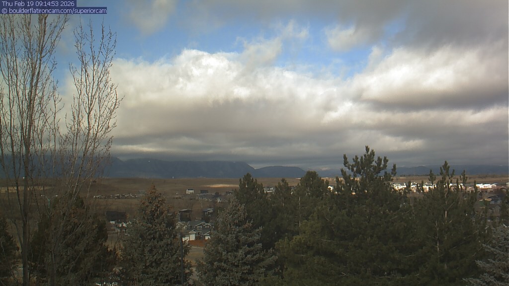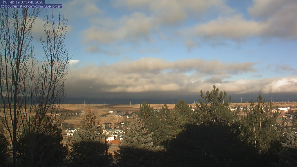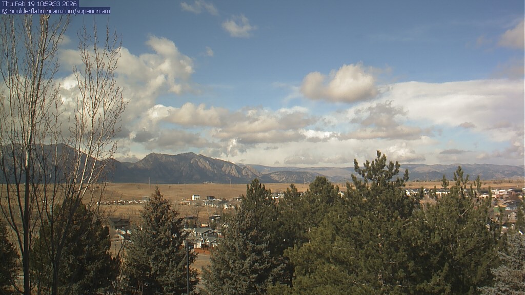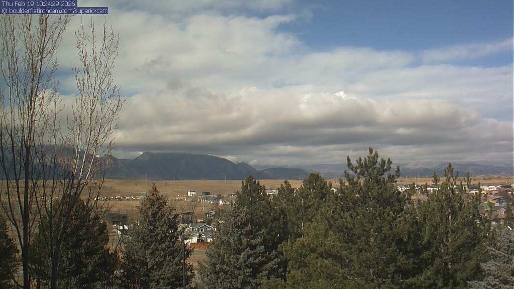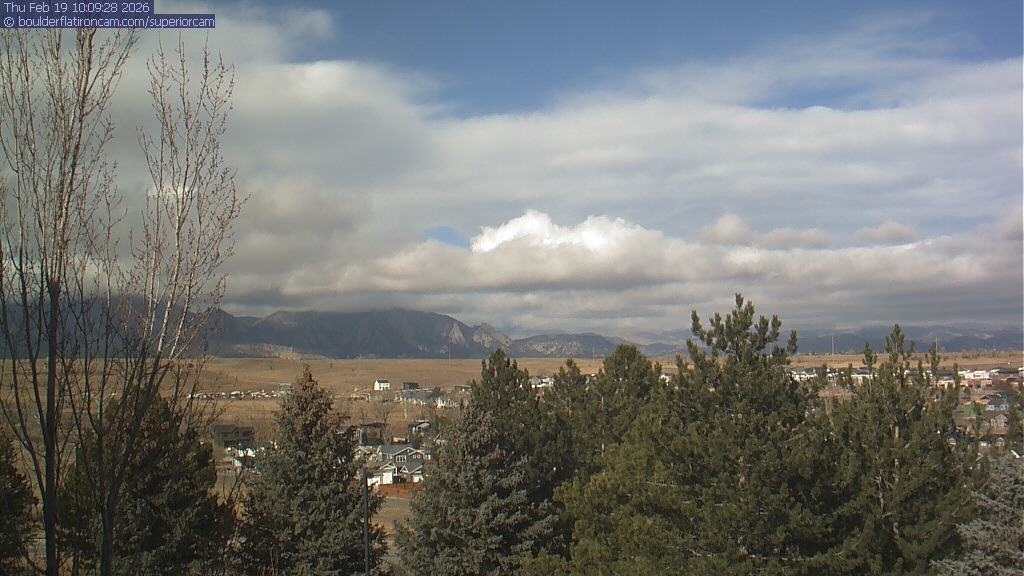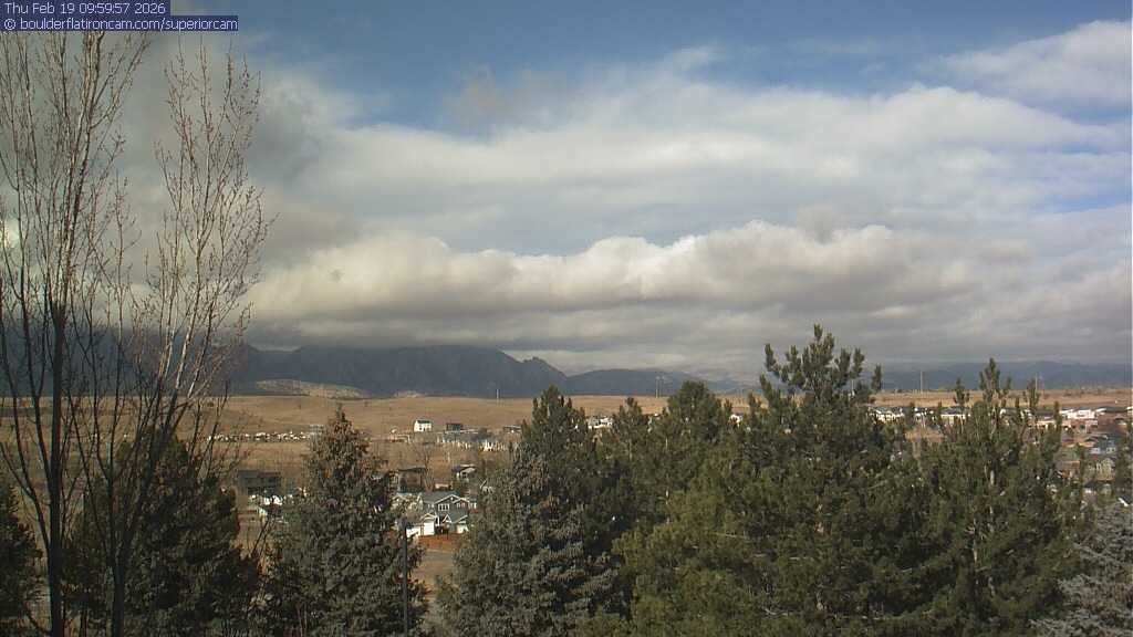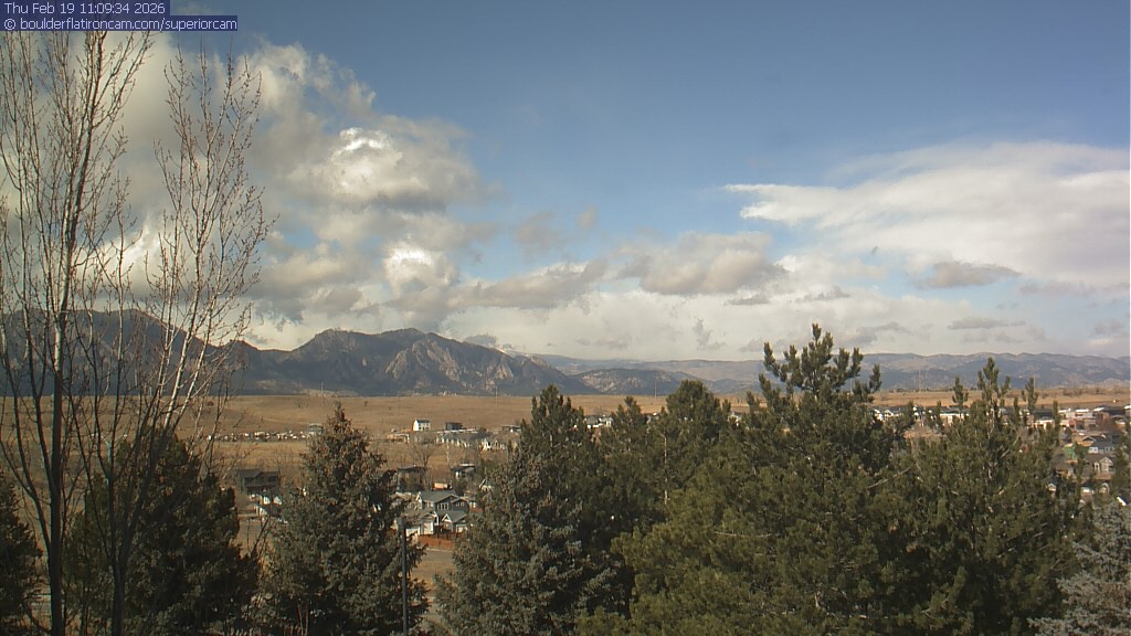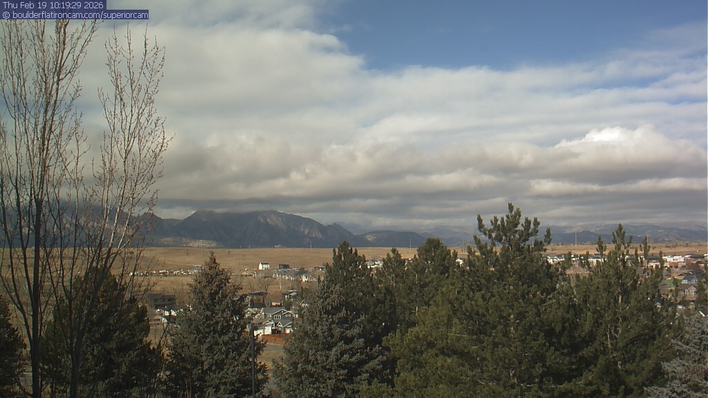 The Superior cam has a view to the northwest over Boulder, the Flatirons, Indian Peaks and Long’s Peak.   The Coal Creek trail is visible in the foreground with old town Superior.