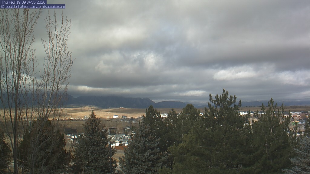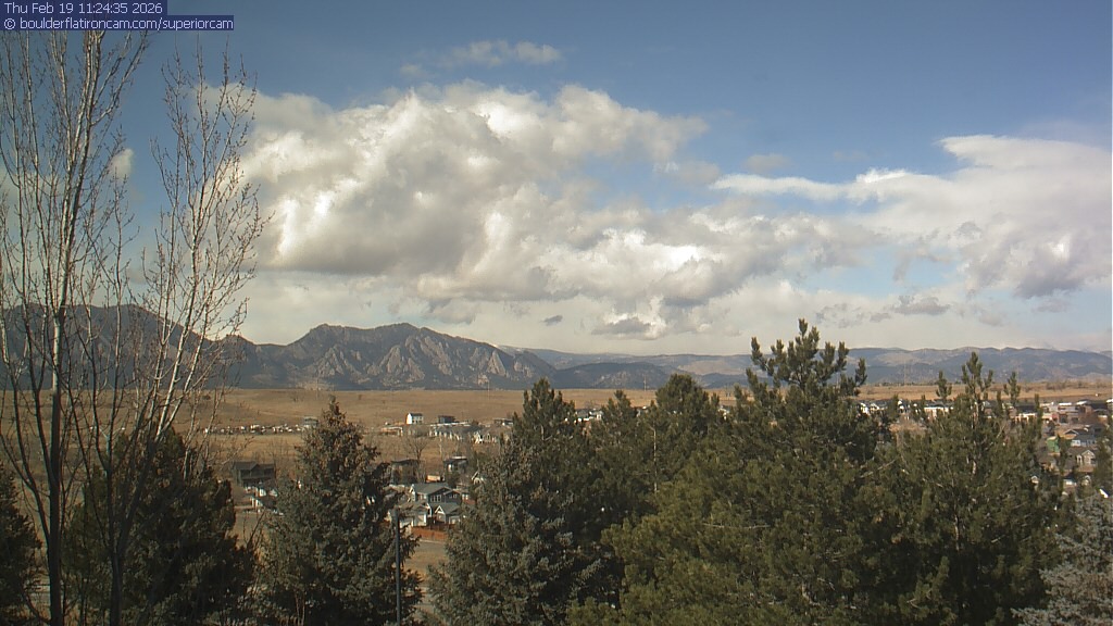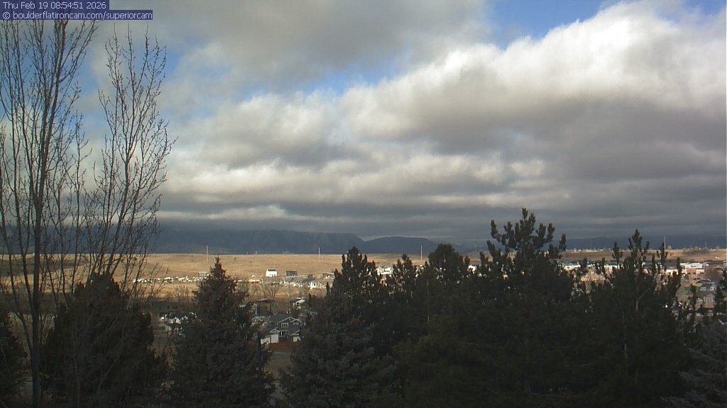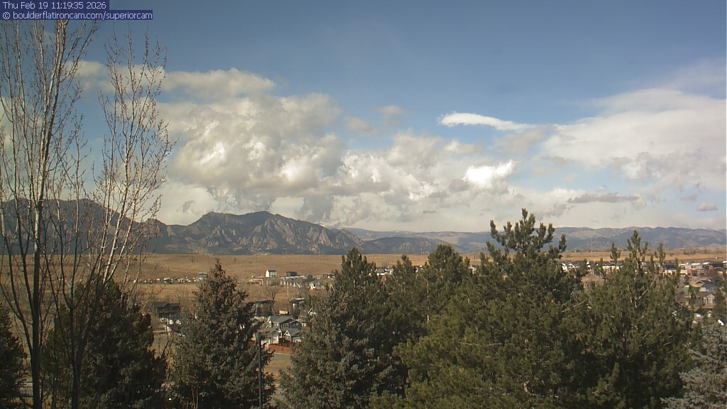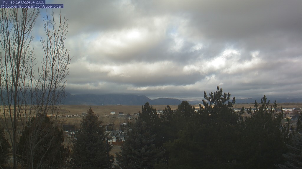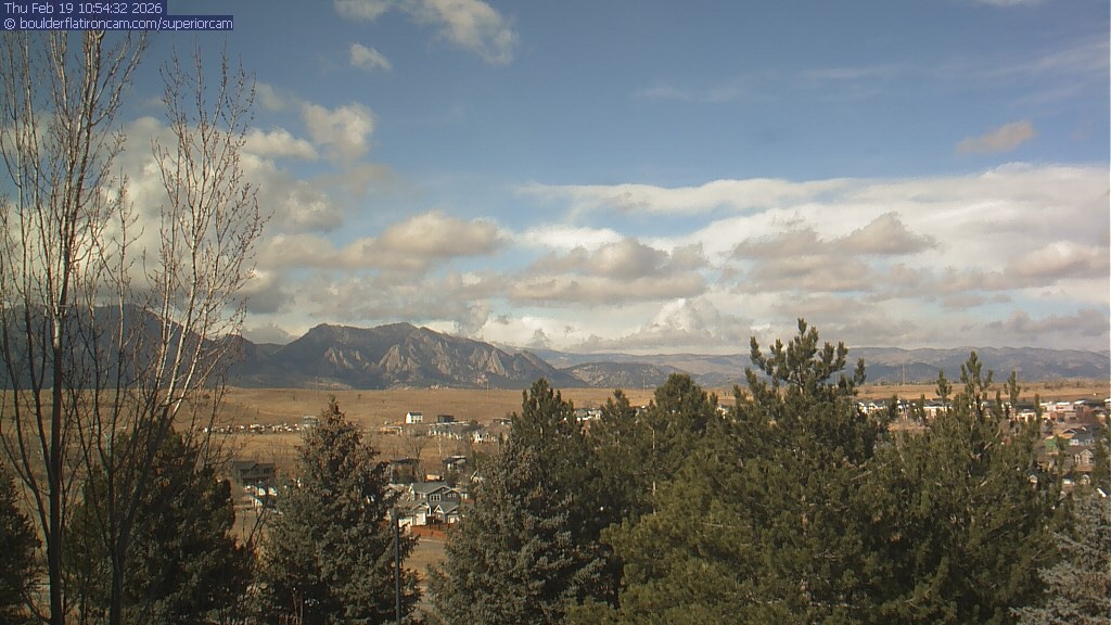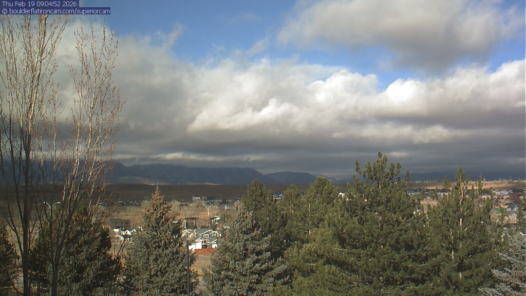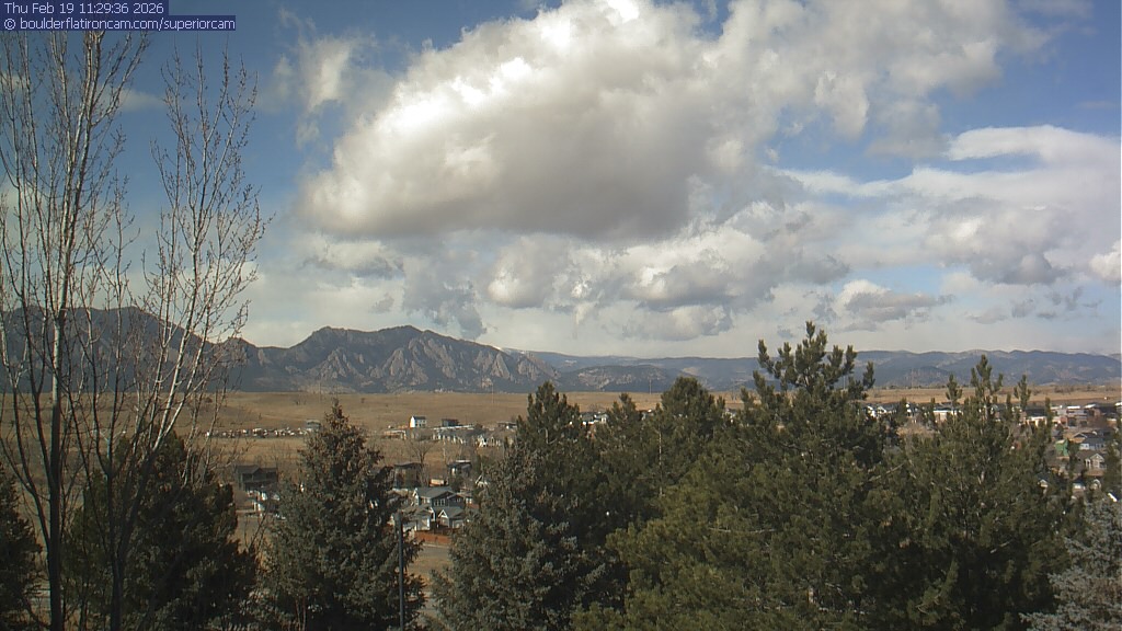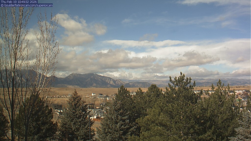 The Superior cam has a view to the northwest over Boulder, the Flatirons, Indian Peaks and Long’s Peak.   The Coal Creek trail is visible in the foreground with old town Superior.