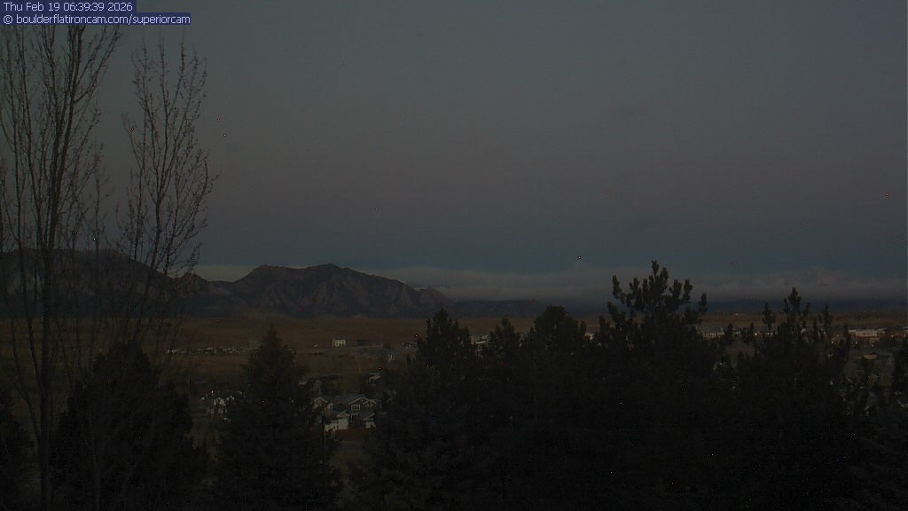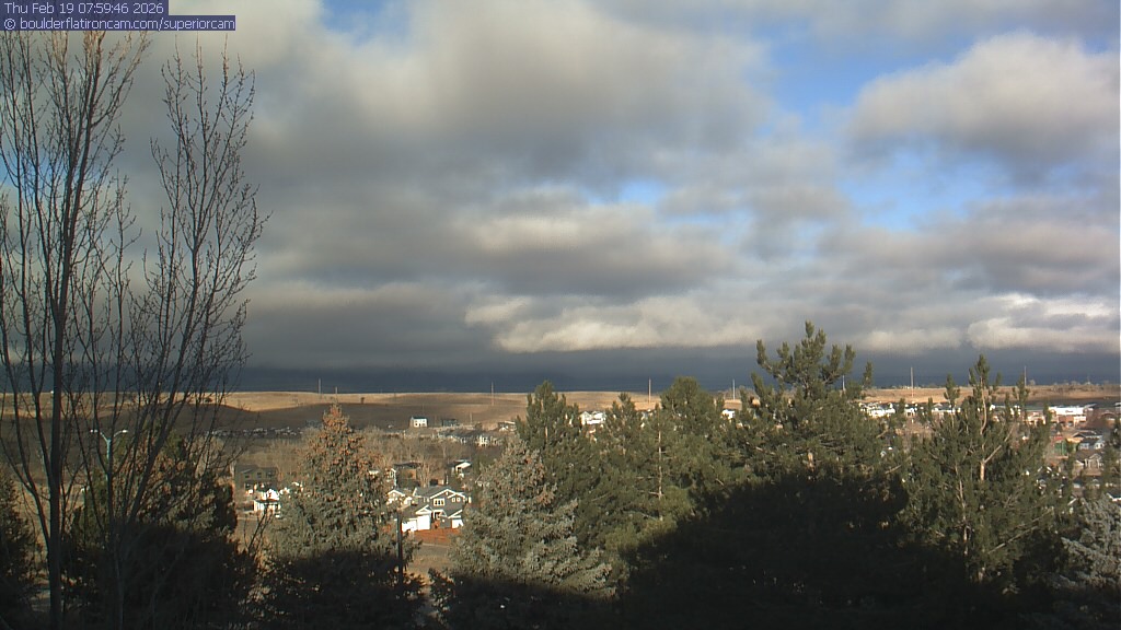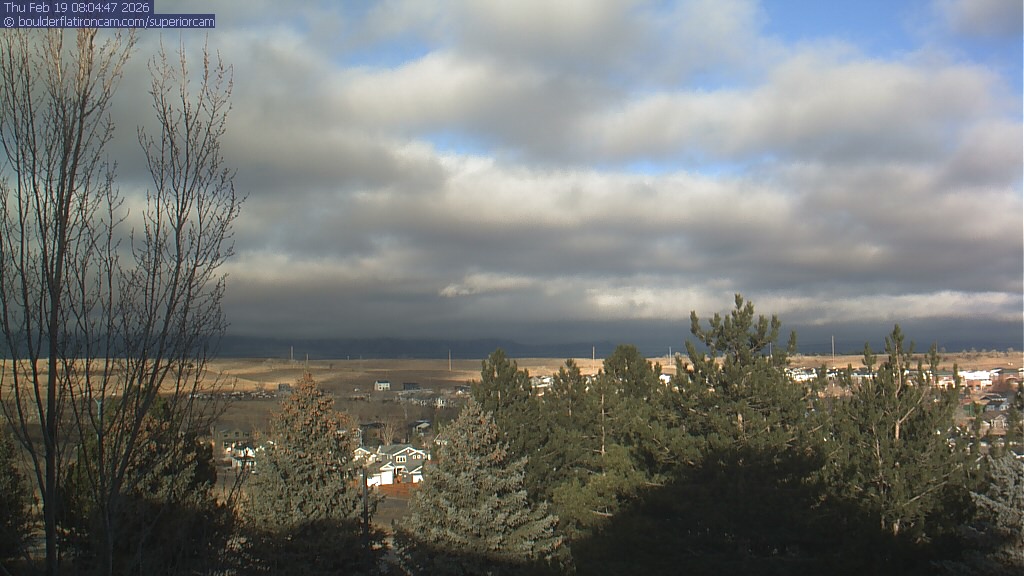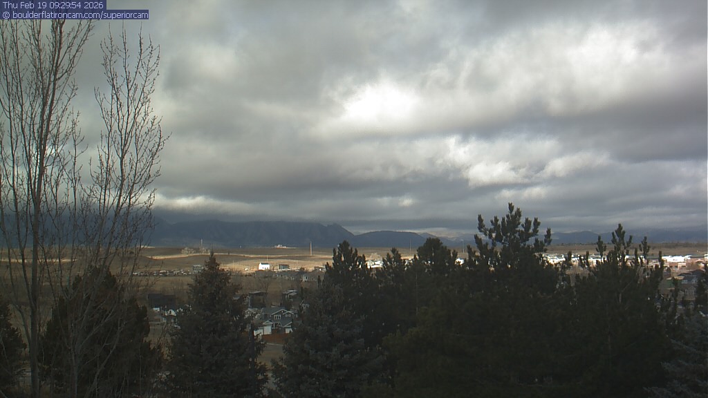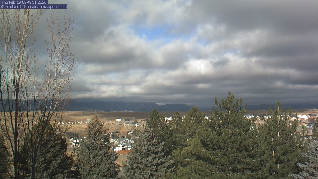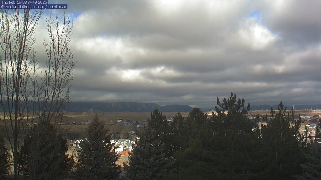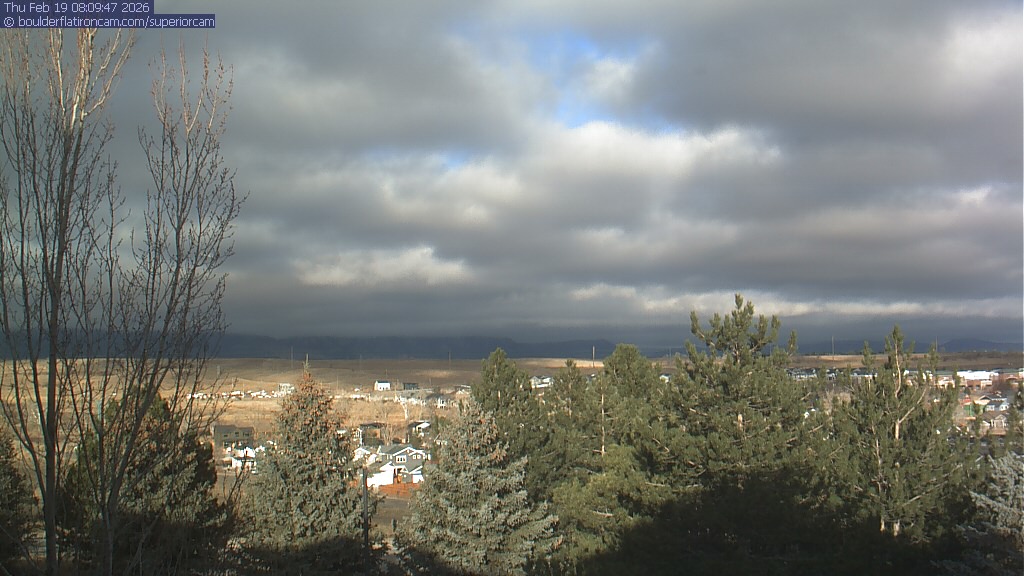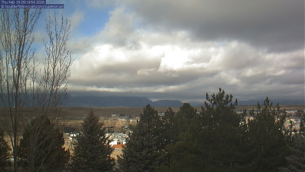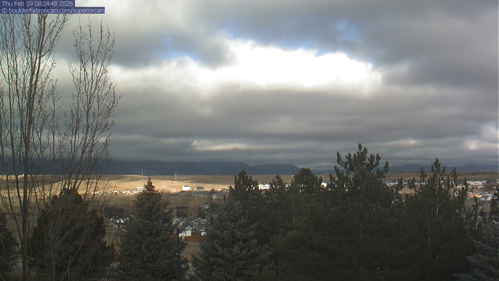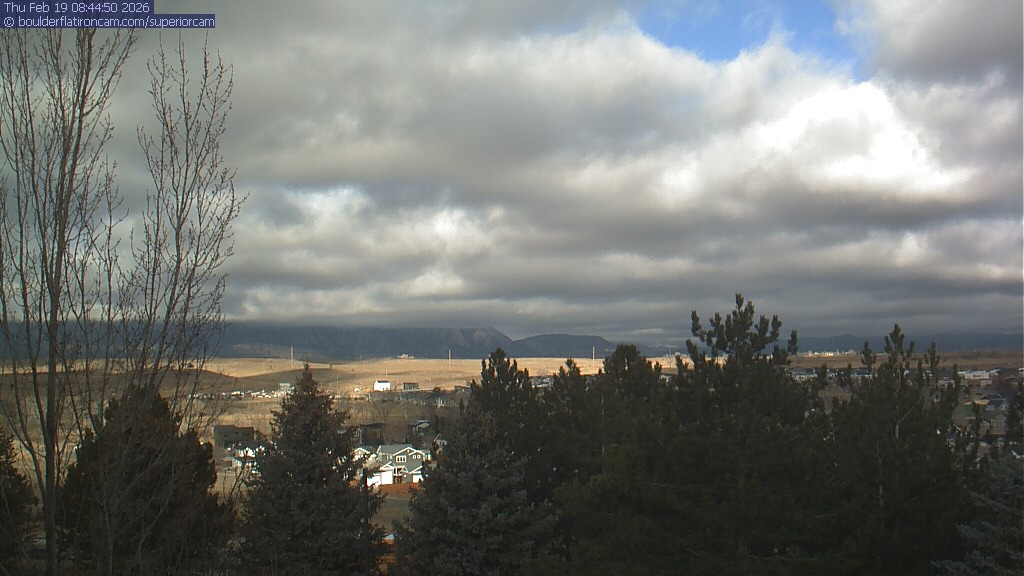 The Superior cam has a view to the northwest over Boulder, the Flatirons, Indian Peaks and Long’s Peak.   The Coal Creek trail is visible in the foreground with old town Superior.