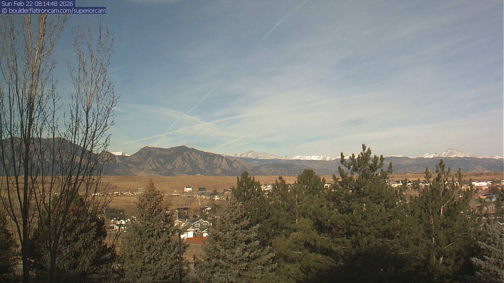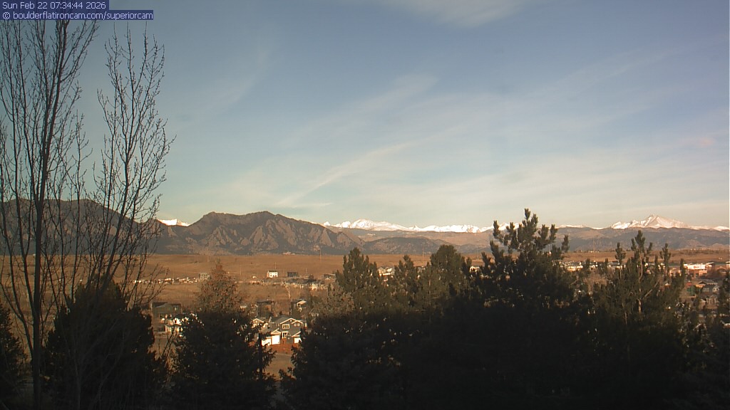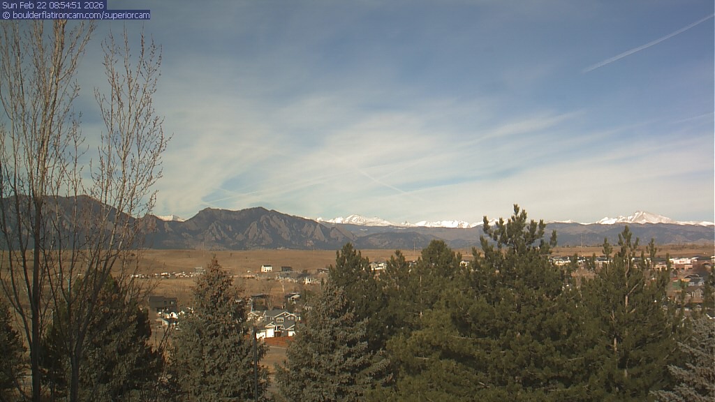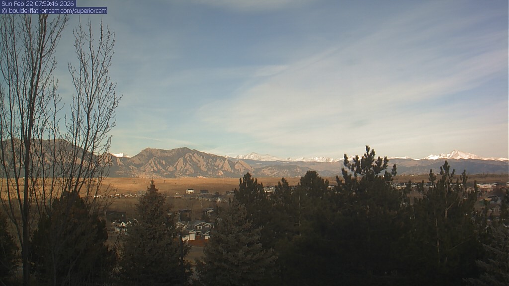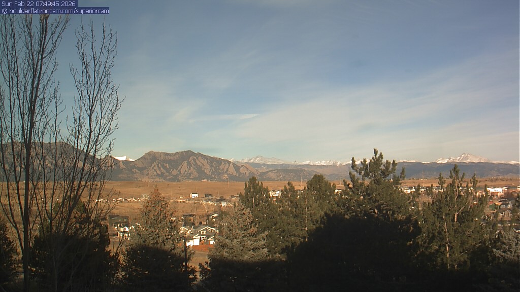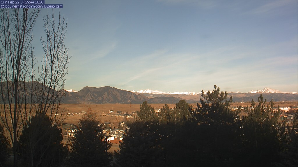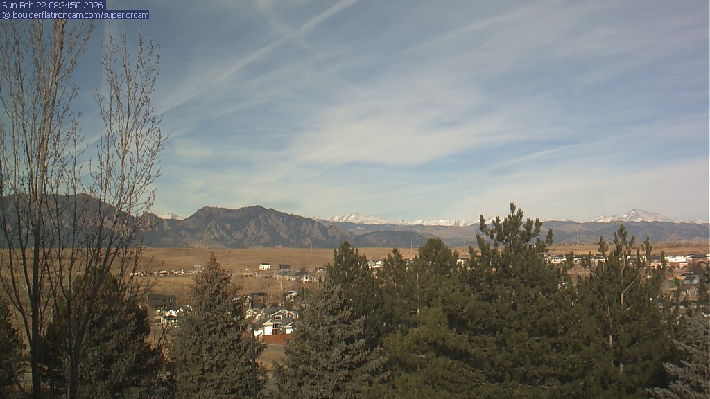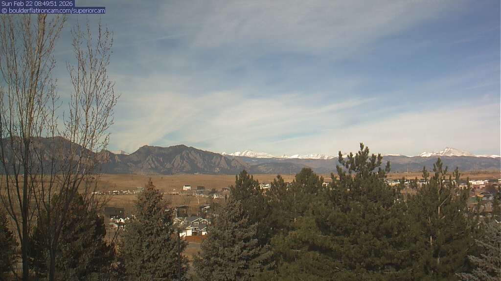 The Superior cam has a view to the northwest over Boulder, the Flatirons, Indian Peaks and Long’s Peak.   The Coal Creek trail is visible in the foreground with old town Superior.