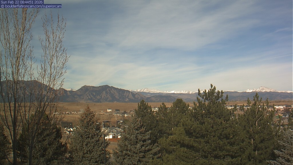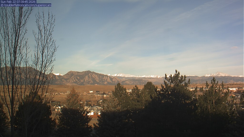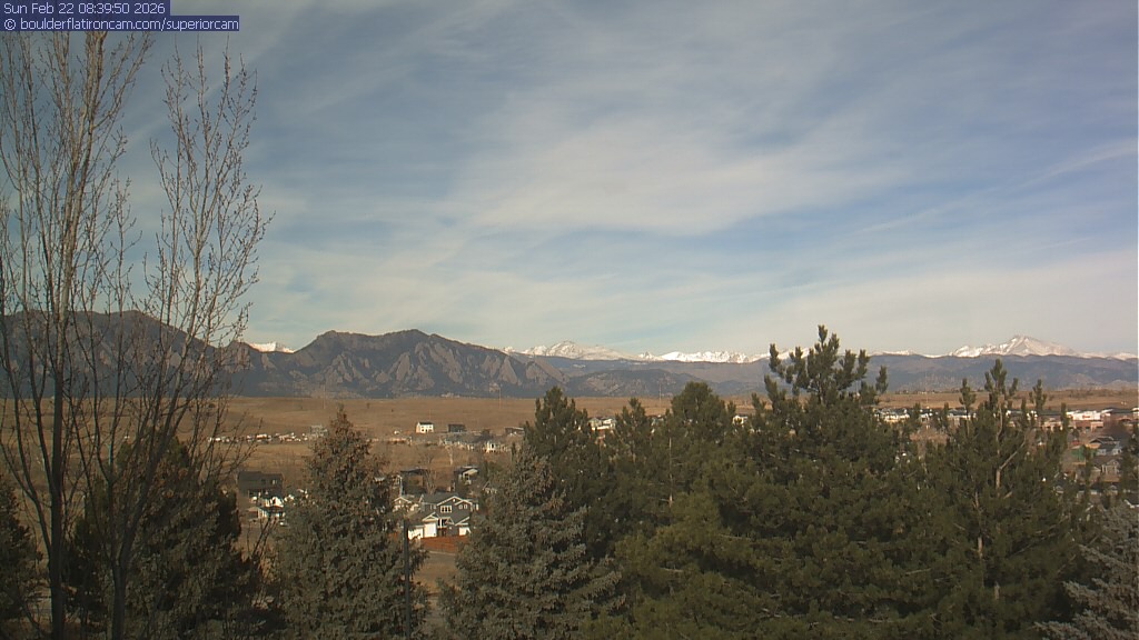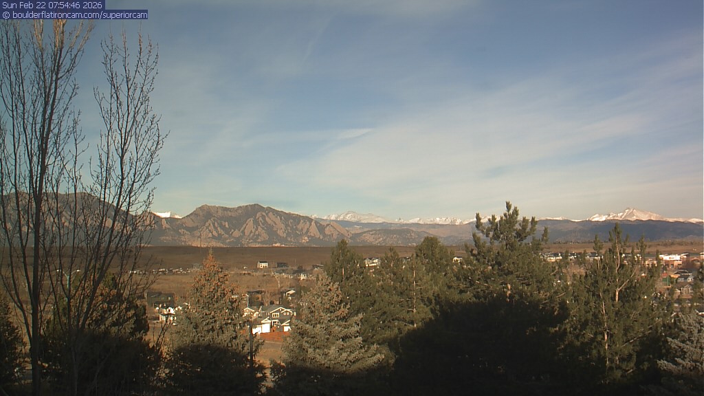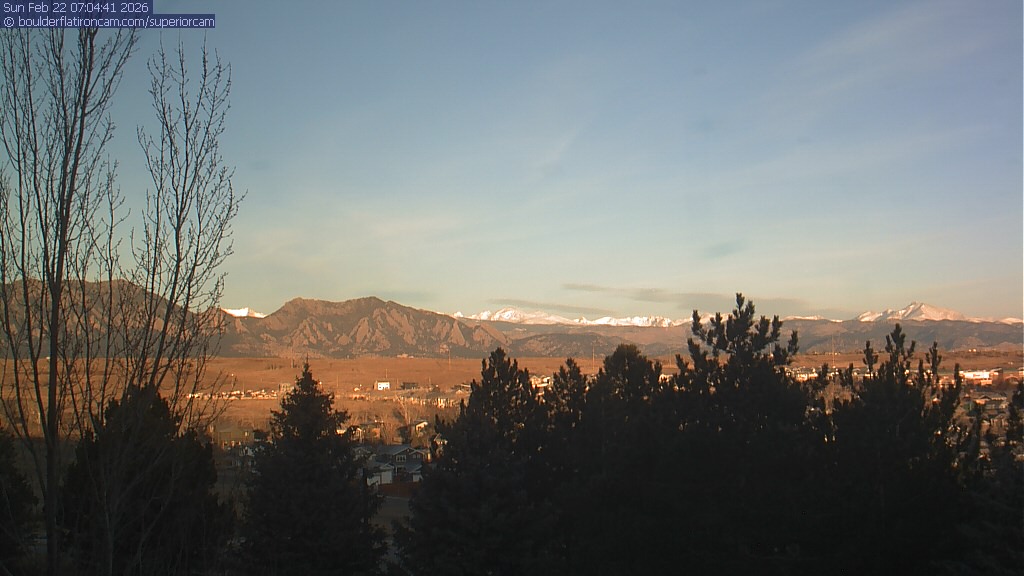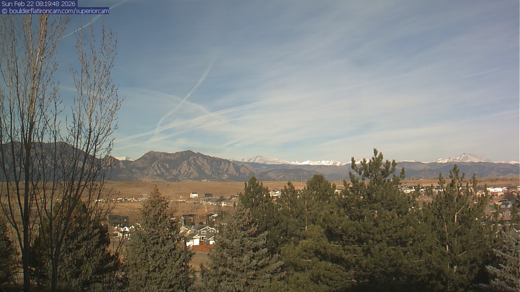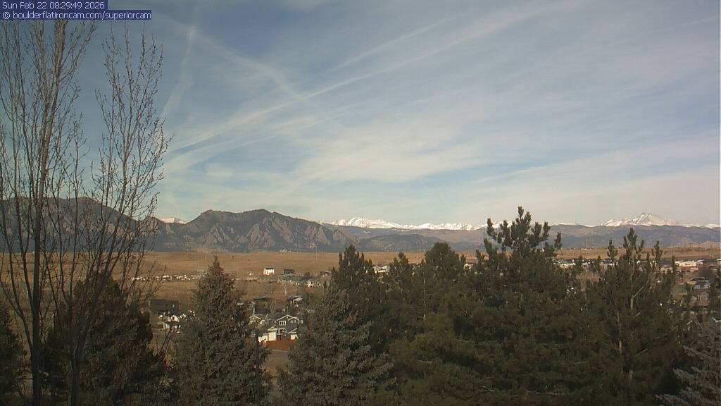 The Superior cam has a view to the northwest over Boulder, the Flatirons, Indian Peaks and Long’s Peak.   The Coal Creek trail is visible in the foreground with old town Superior.
