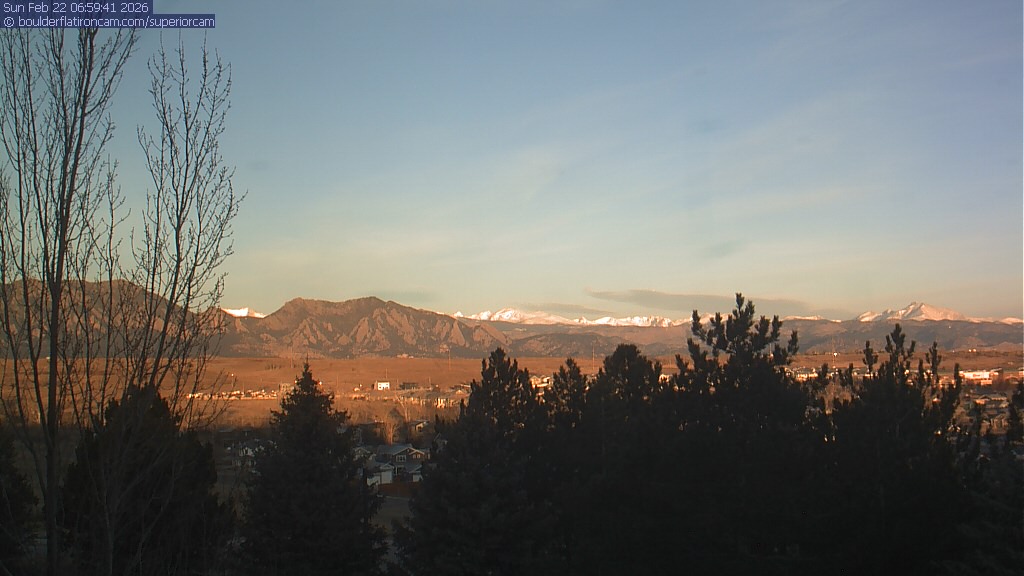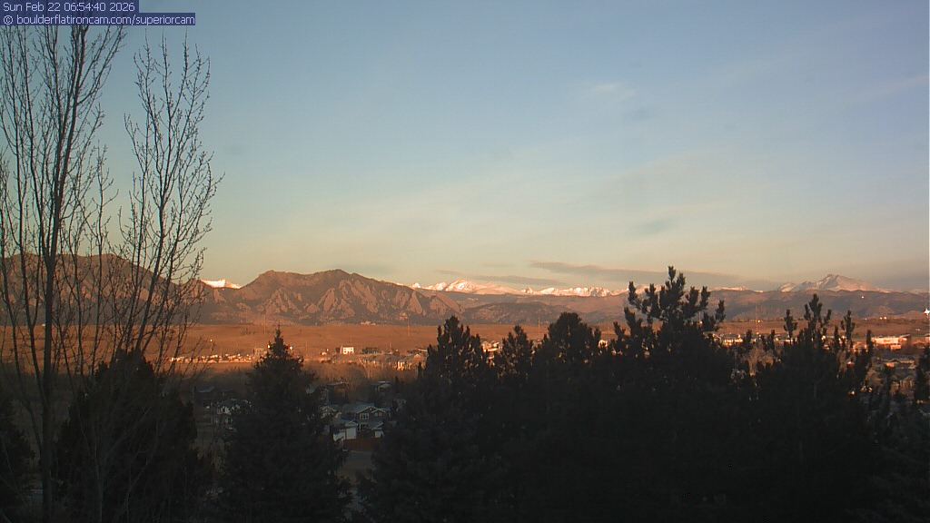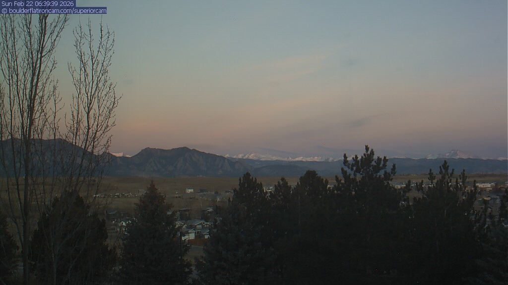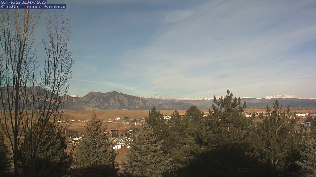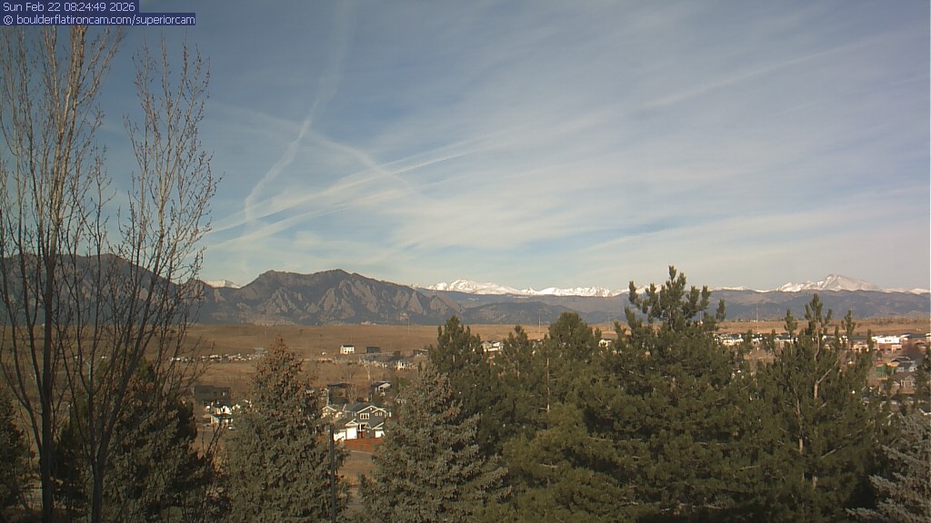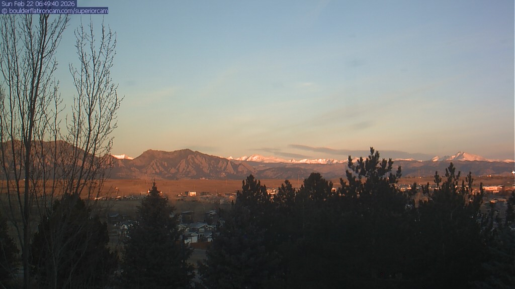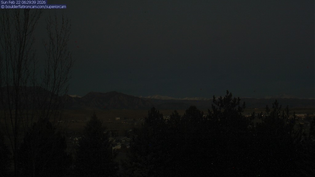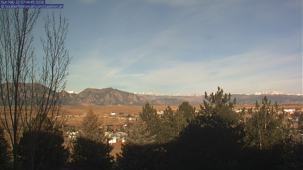 The Superior cam has a view to the northwest over Boulder, the Flatirons, Indian Peaks and Long’s Peak.   The Coal Creek trail is visible in the foreground with old town Superior.
