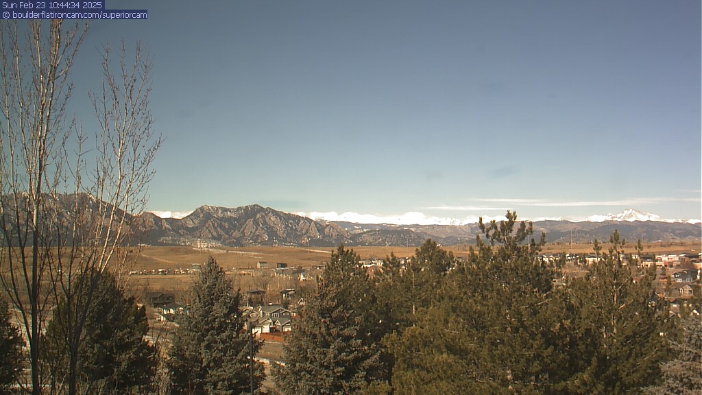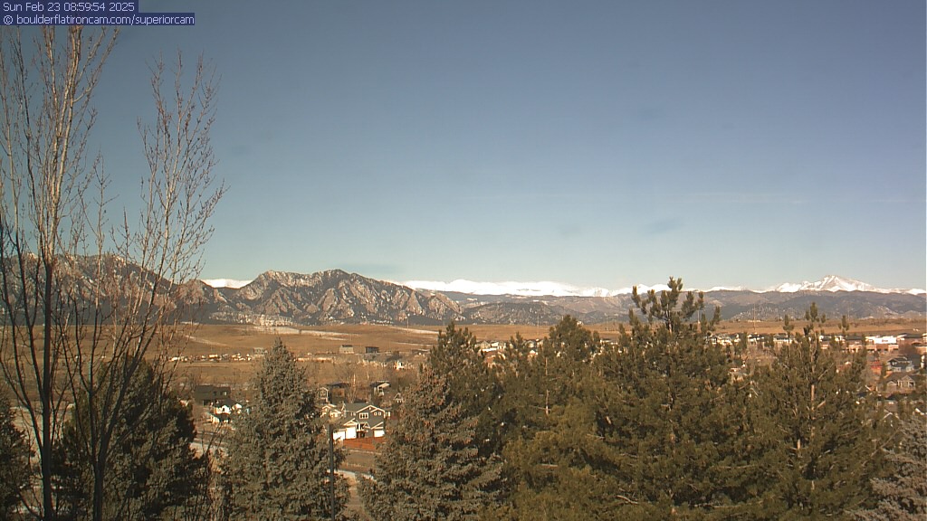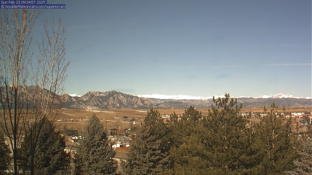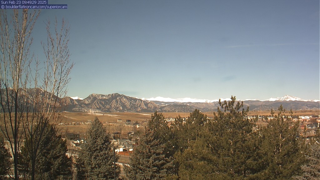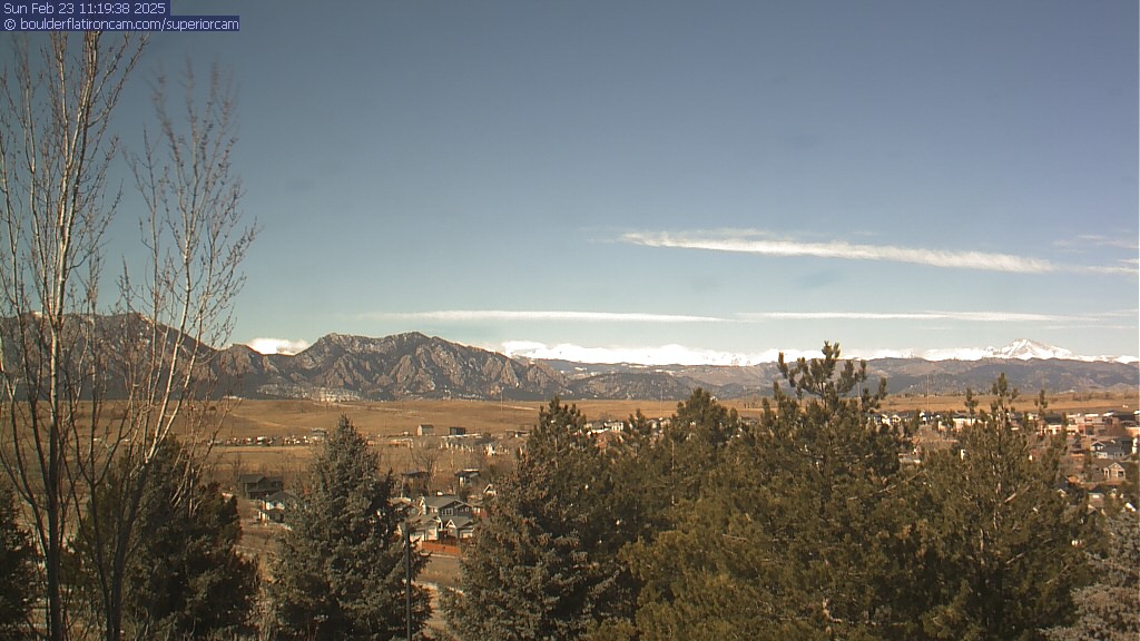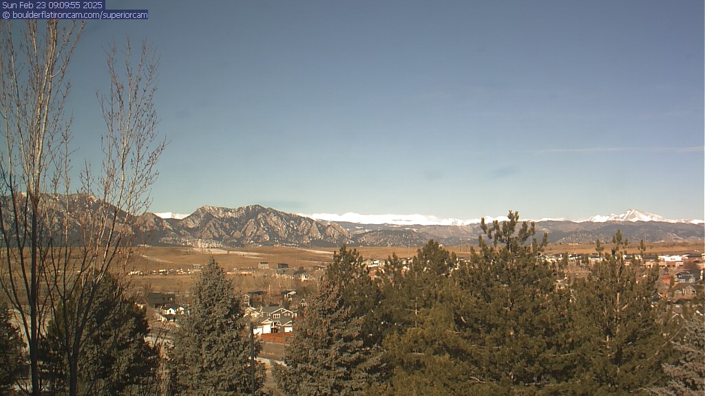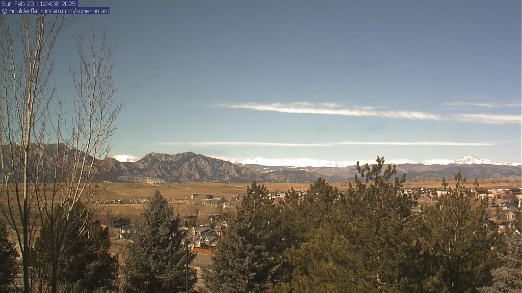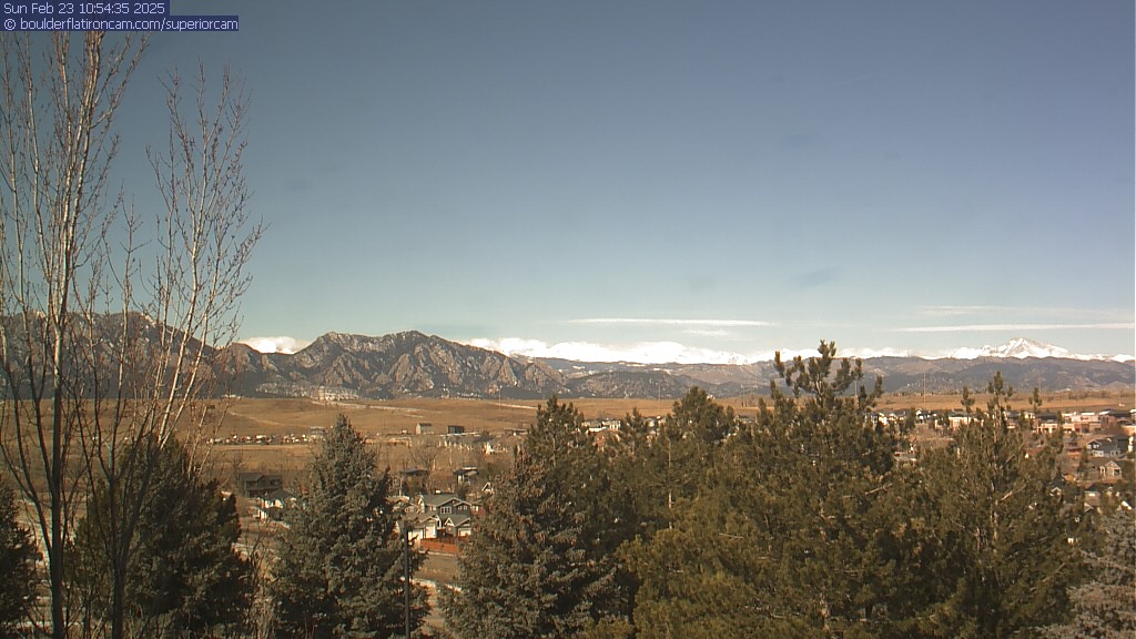 The Superior cam has a great view to the northwest over Boulder, the Flatirons, Indian Peaks and Long’s Peak.   The Coal Creek trail is visible in the foreground with old town Superior.  Thanks to Aweida Venture Partners management for the great view.
