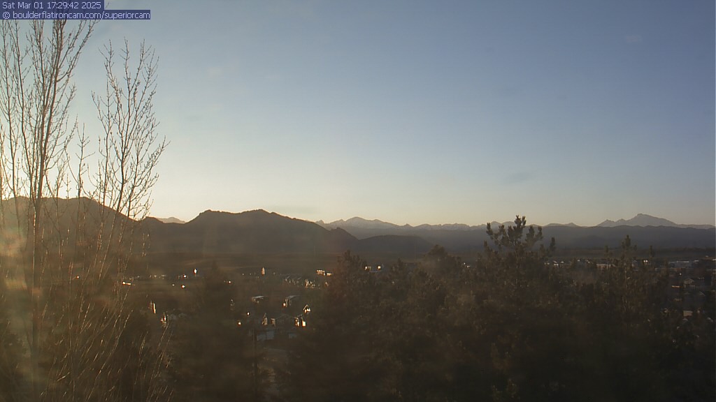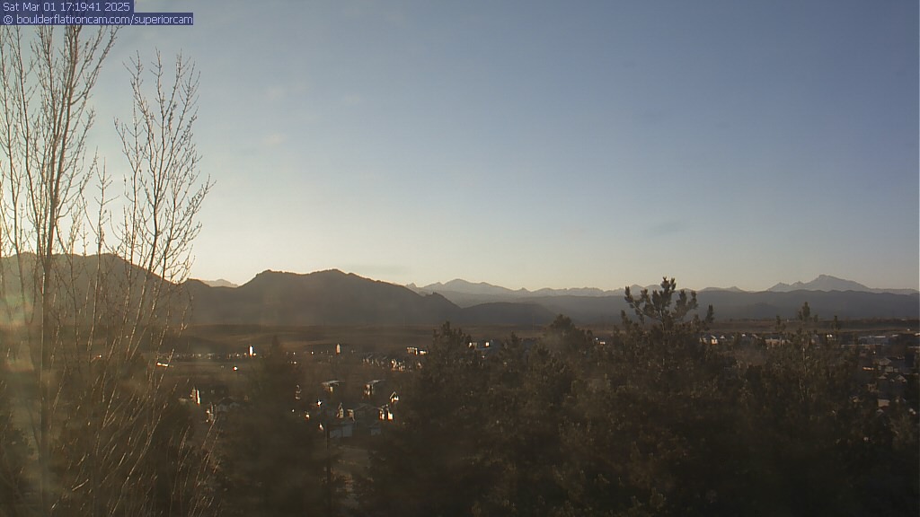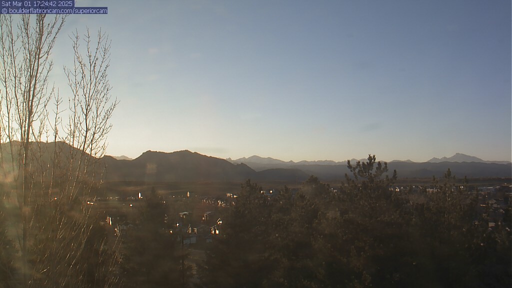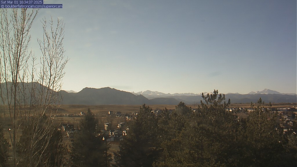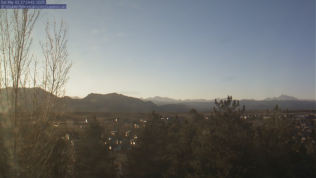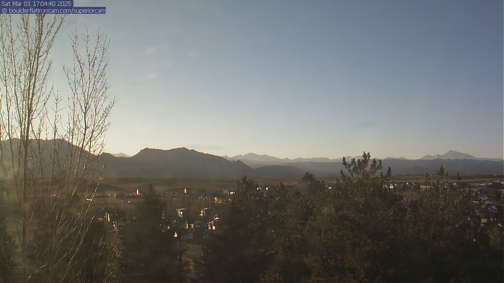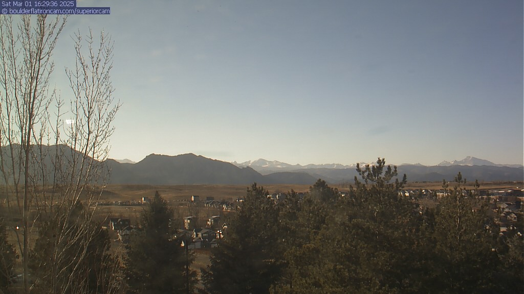 The Superior cam has a great view to the northwest over Boulder, the Flatirons, Indian Peaks and Long’s Peak.   The Coal Creek trail is visible in the foreground with old town Superior.  Thanks to Aweida Venture Partners management for the great view.
