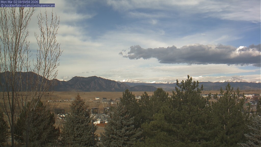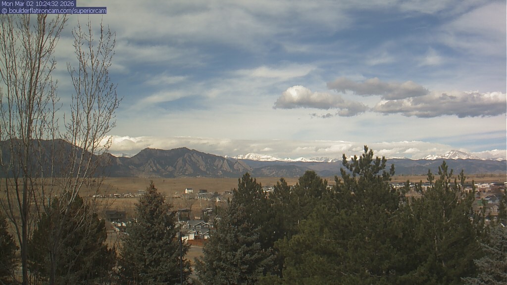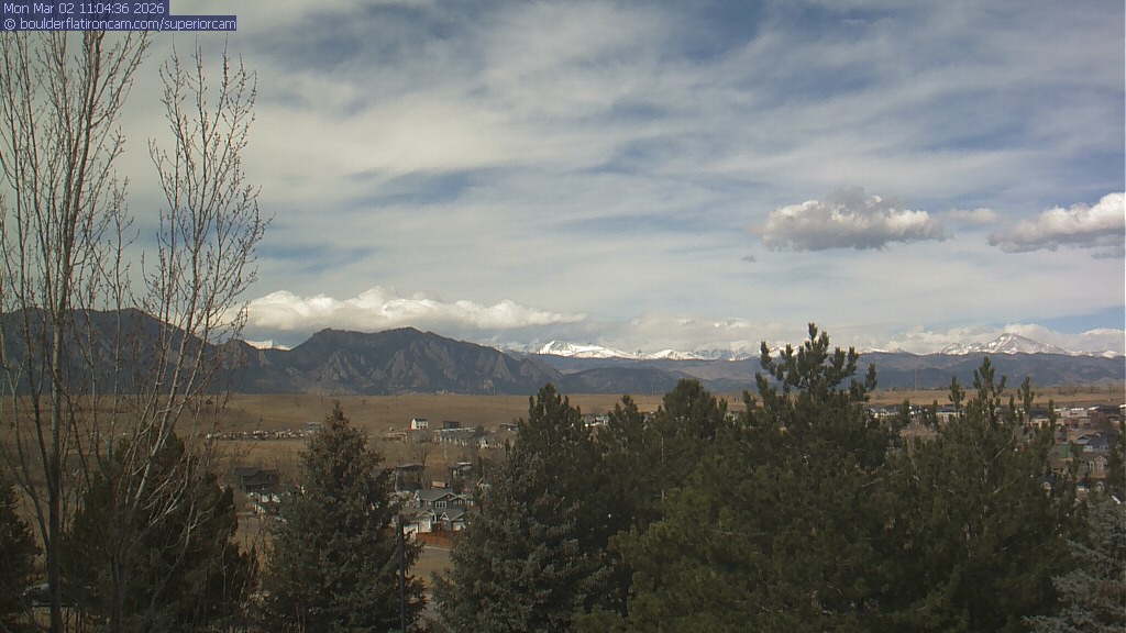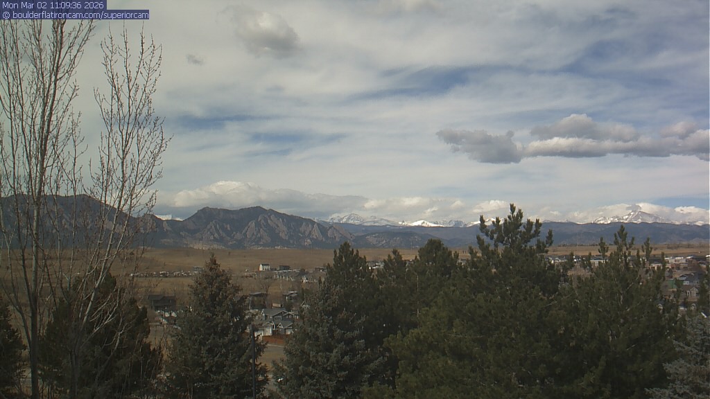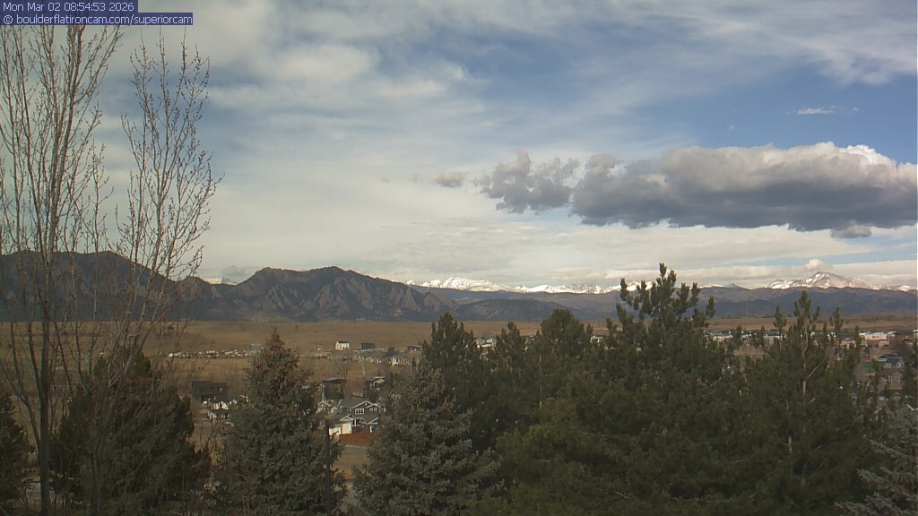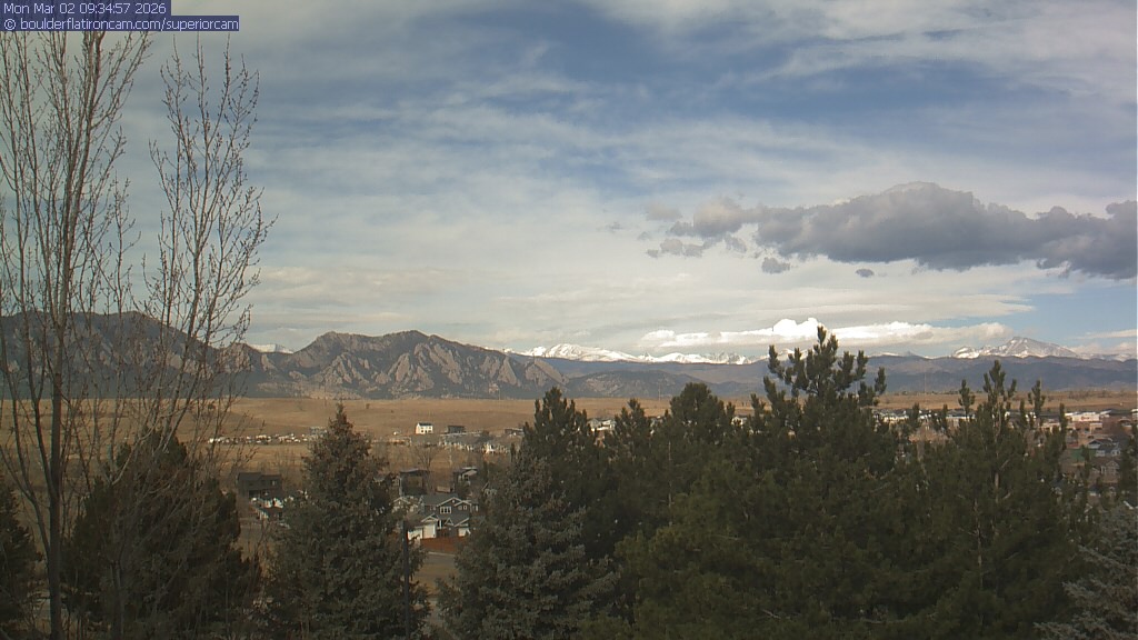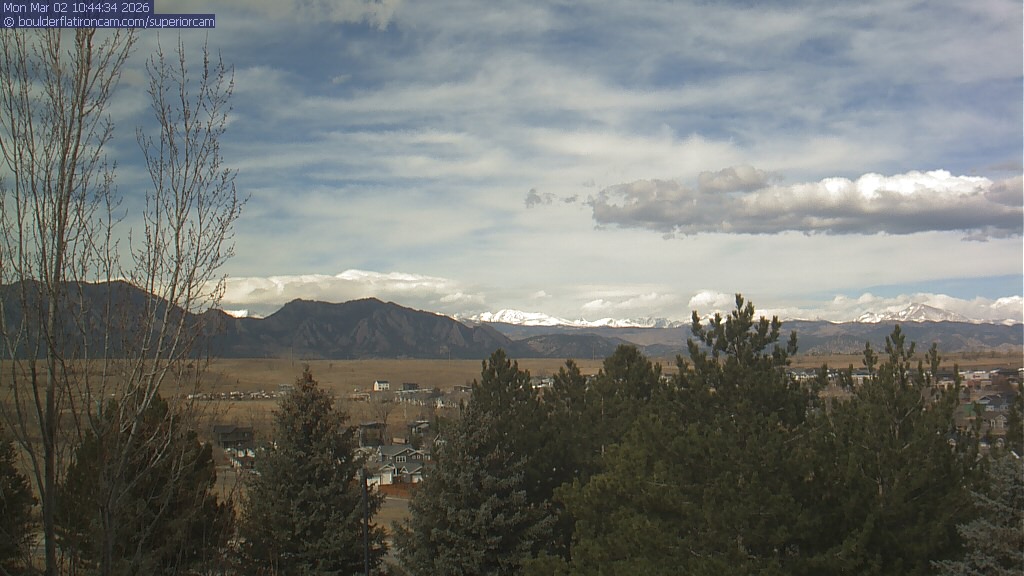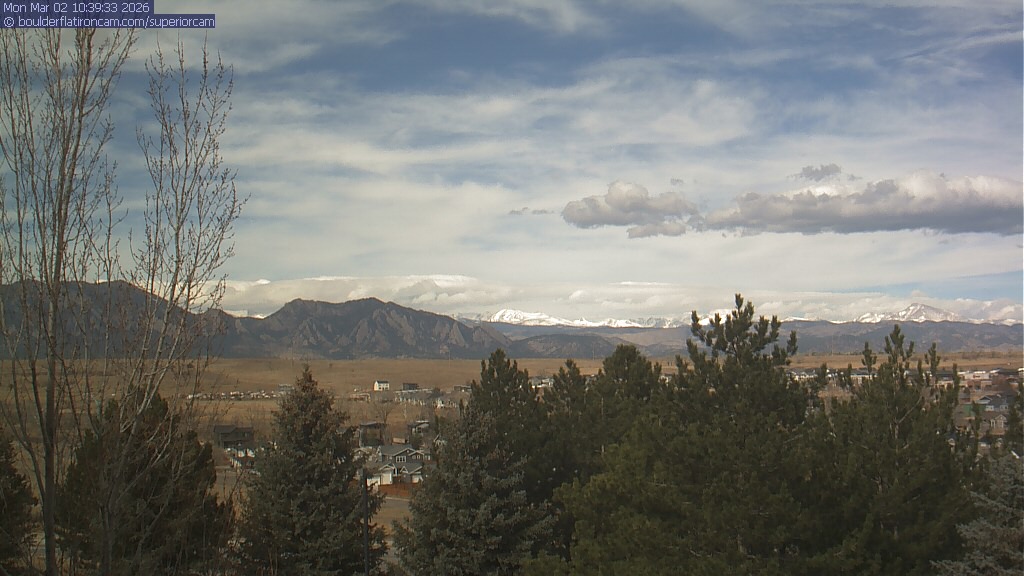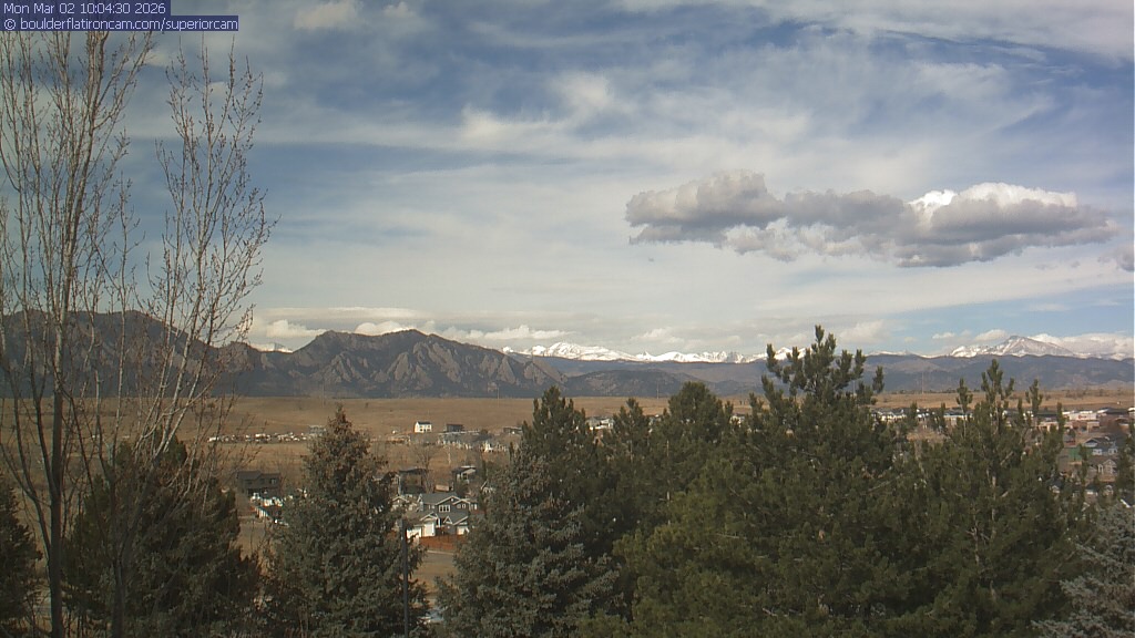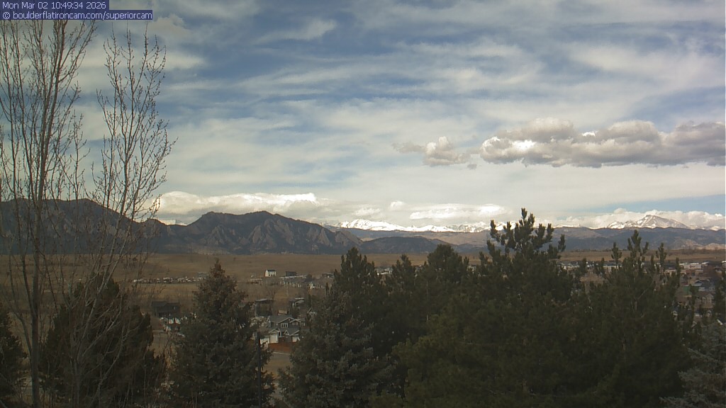 The Superior cam has a view to the northwest over Boulder, the Flatirons, Indian Peaks and Long’s Peak.   The Coal Creek trail is visible in the foreground with old town Superior.
