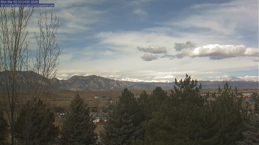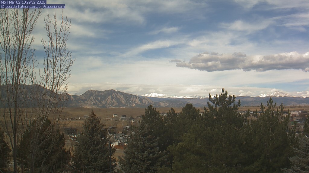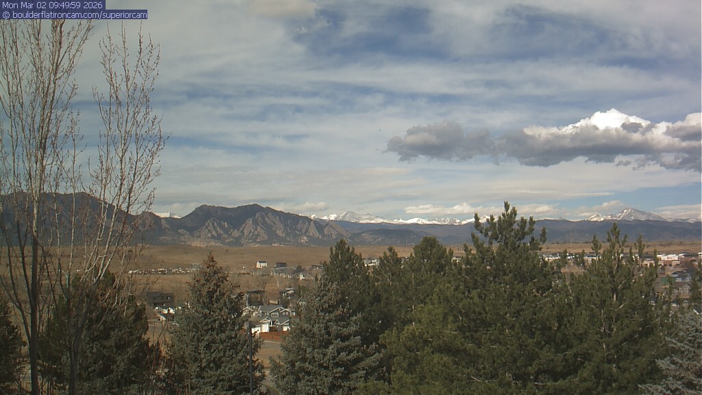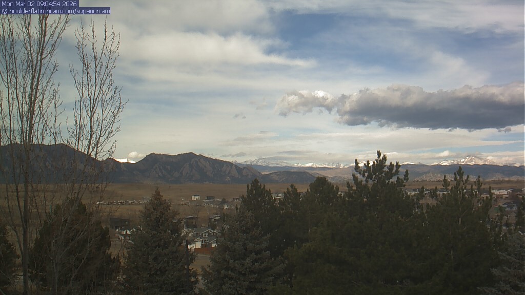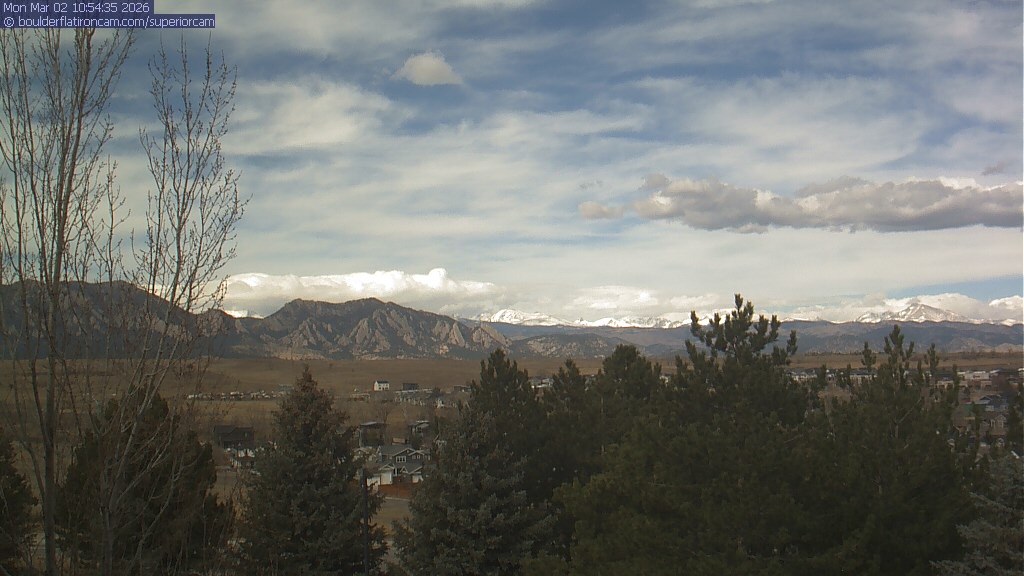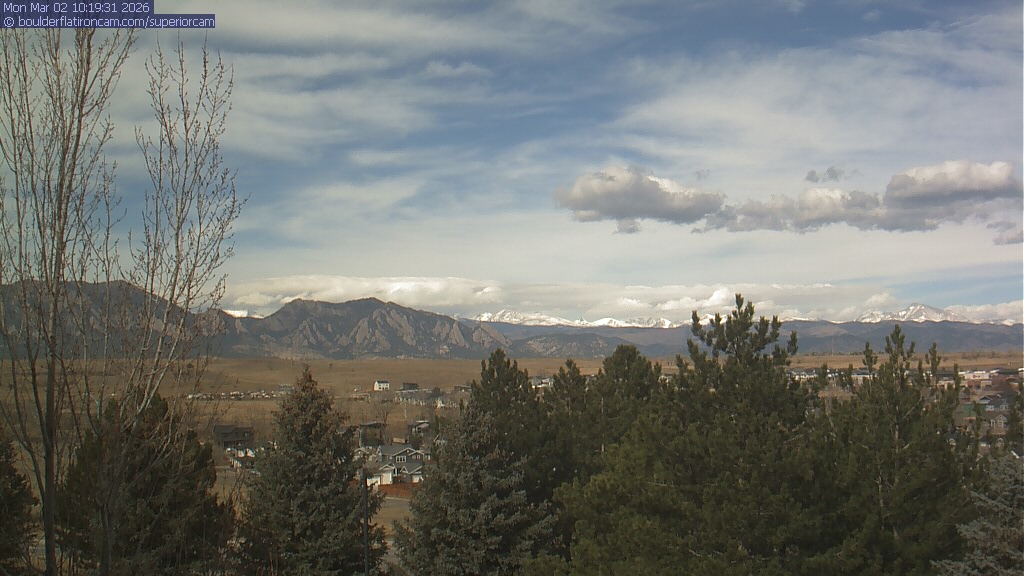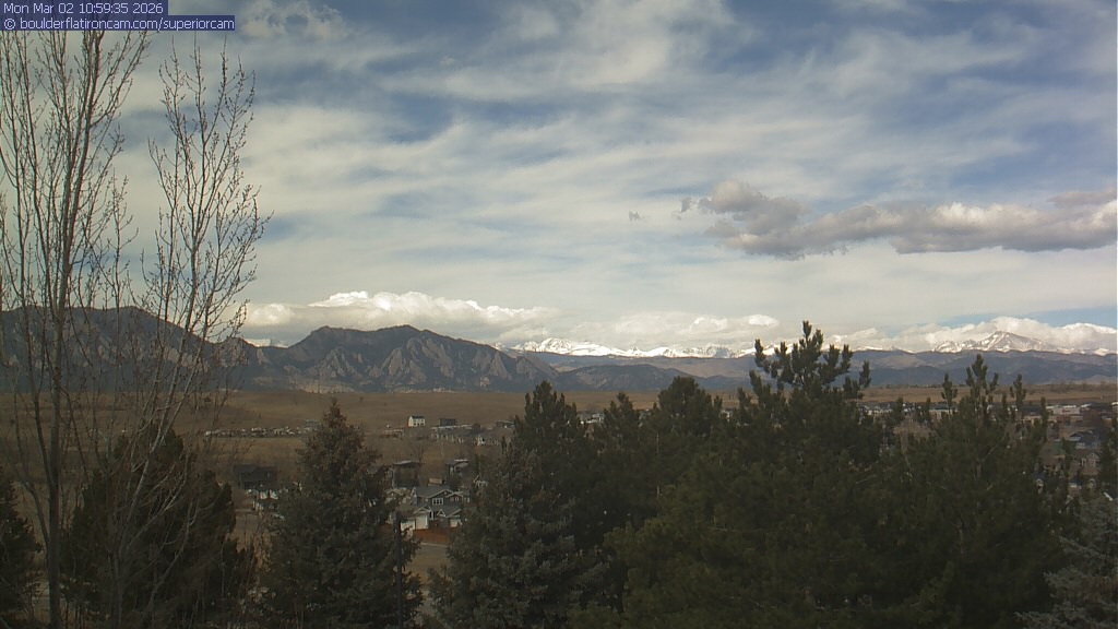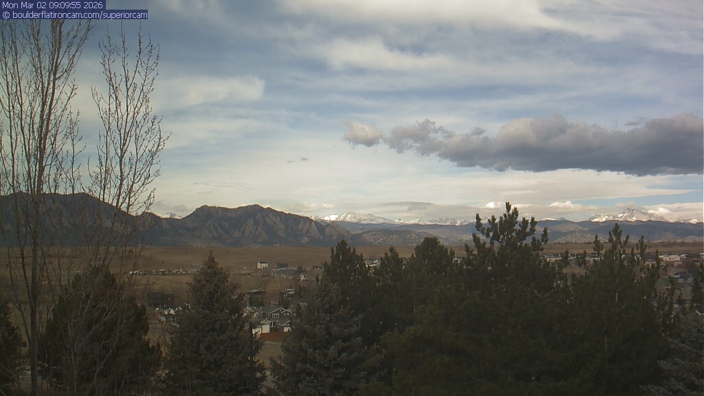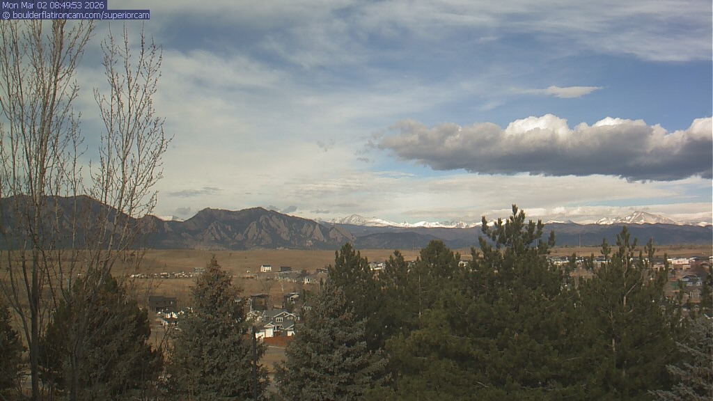 The Superior cam has a view to the northwest over Boulder, the Flatirons, Indian Peaks and Long’s Peak.   The Coal Creek trail is visible in the foreground with old town Superior.
