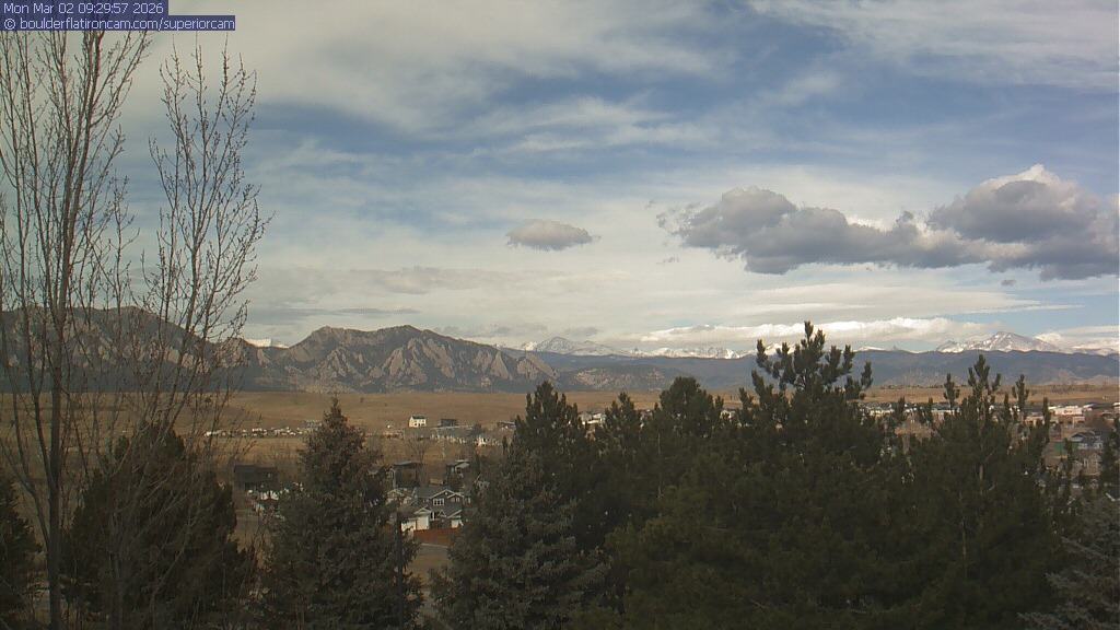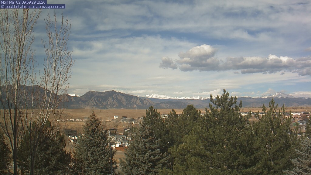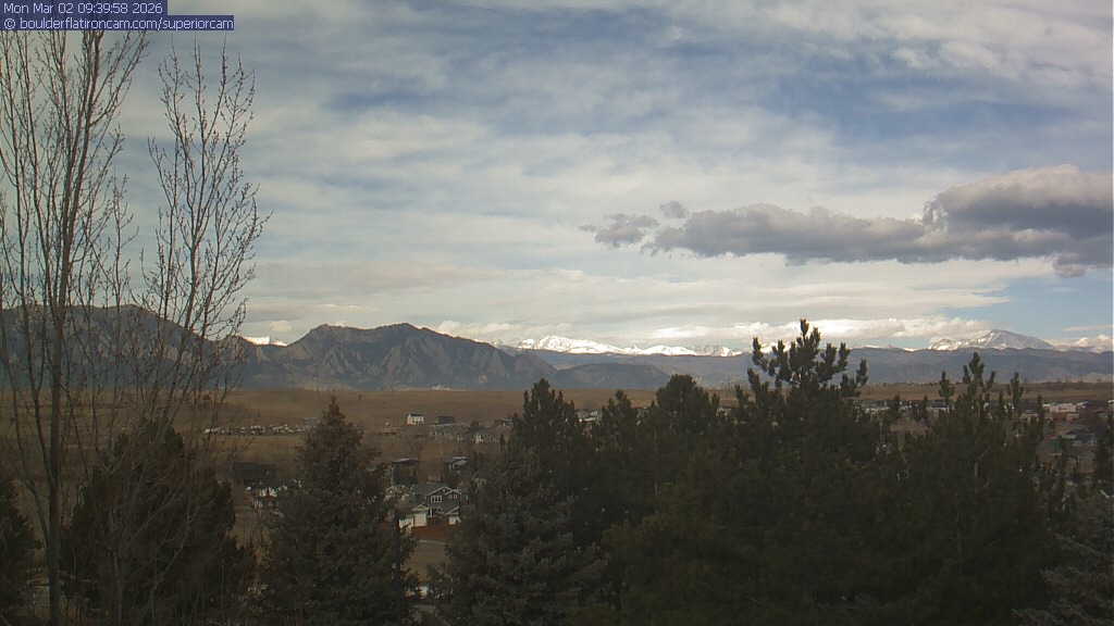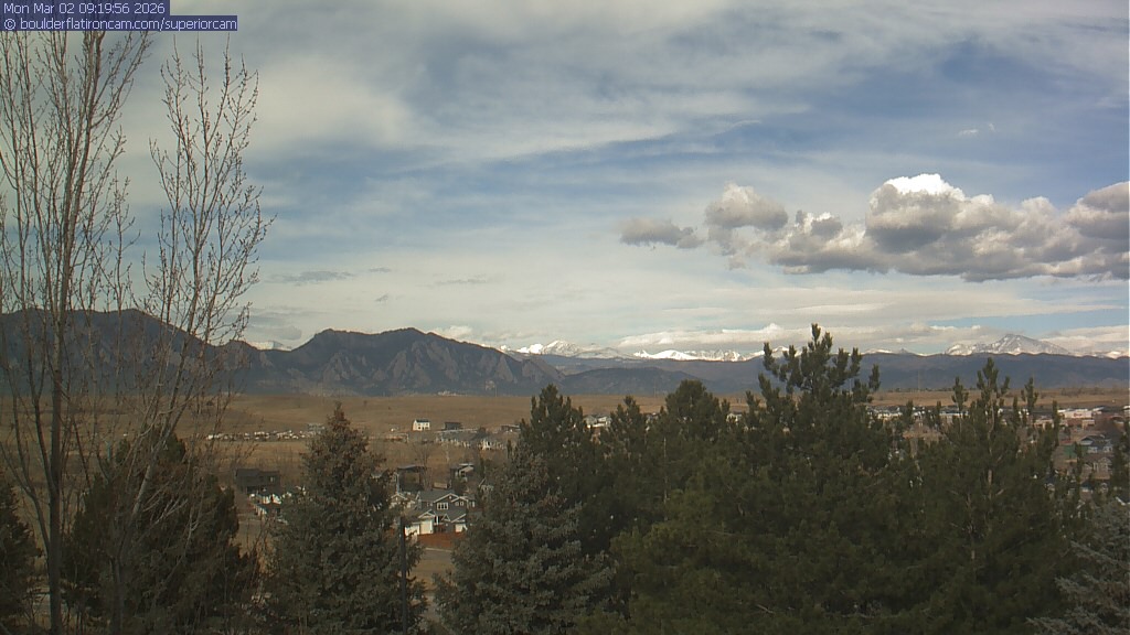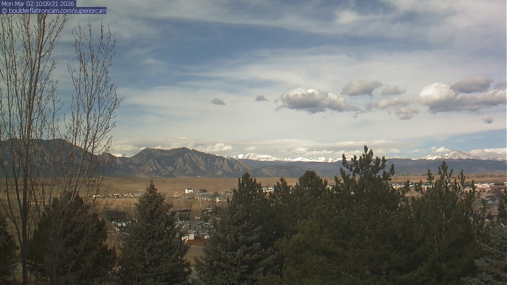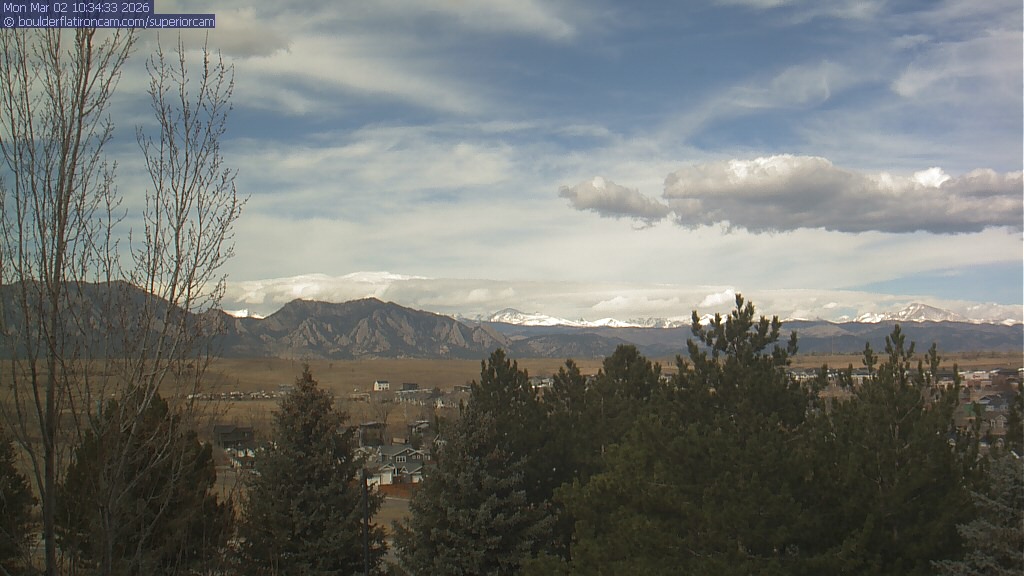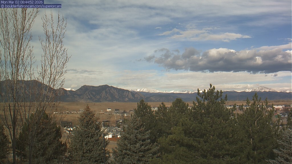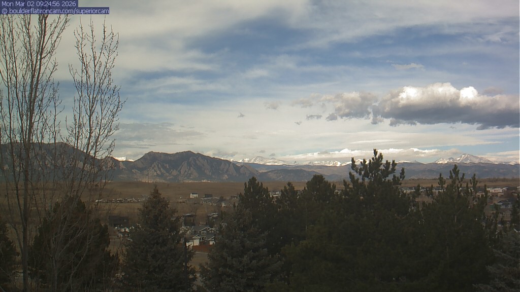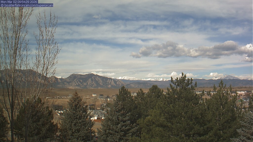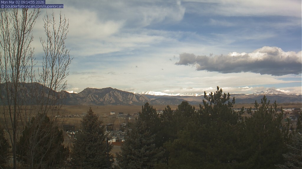 The Superior cam has a view to the northwest over Boulder, the Flatirons, Indian Peaks and Long’s Peak.   The Coal Creek trail is visible in the foreground with old town Superior.