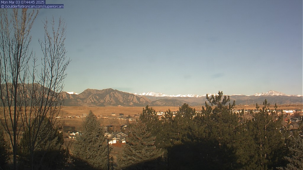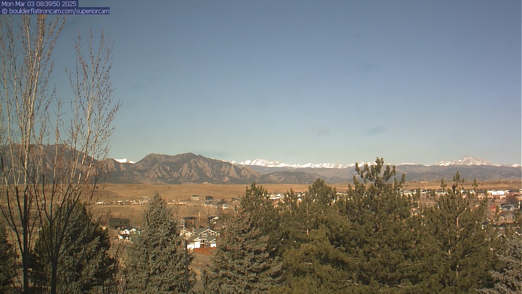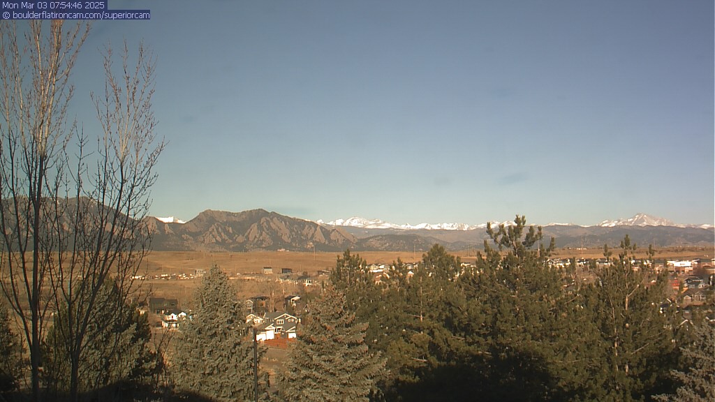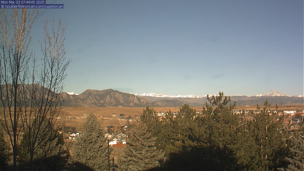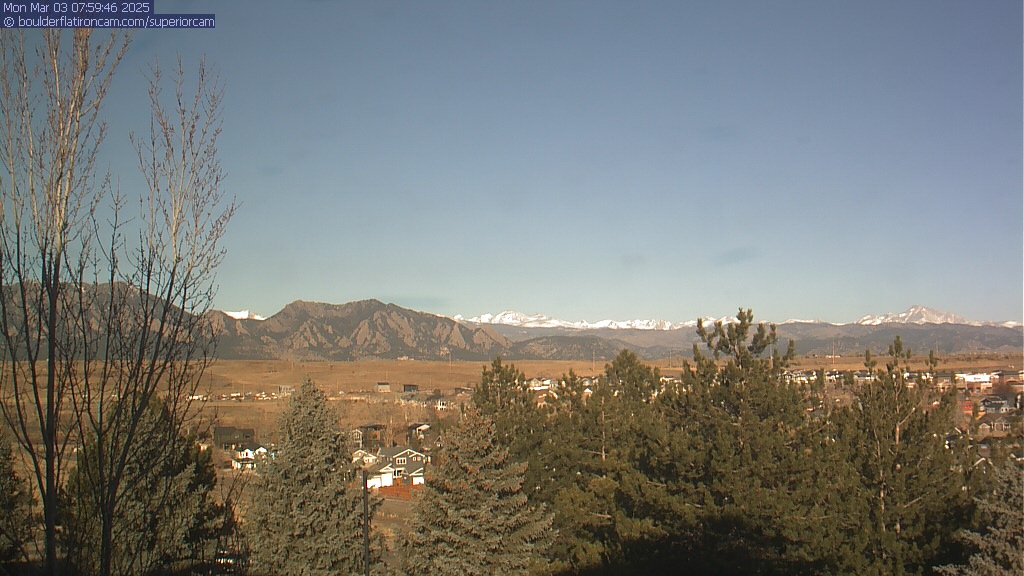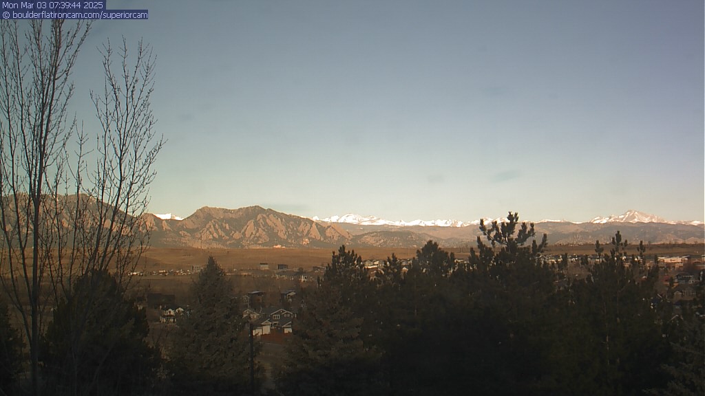 The Superior cam has a great view to the northwest over Boulder, the Flatirons, Indian Peaks and Long’s Peak.   The Coal Creek trail is visible in the foreground with old town Superior.  Thanks to Aweida Venture Partners management for the great view.