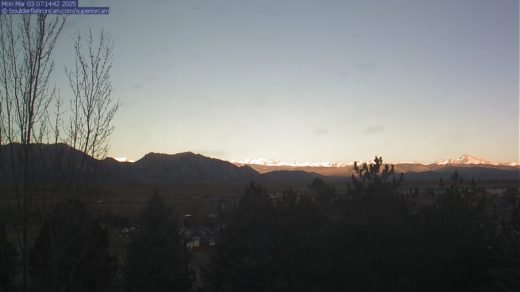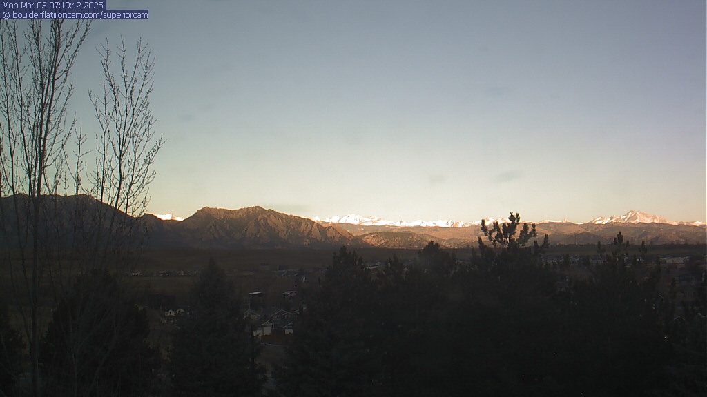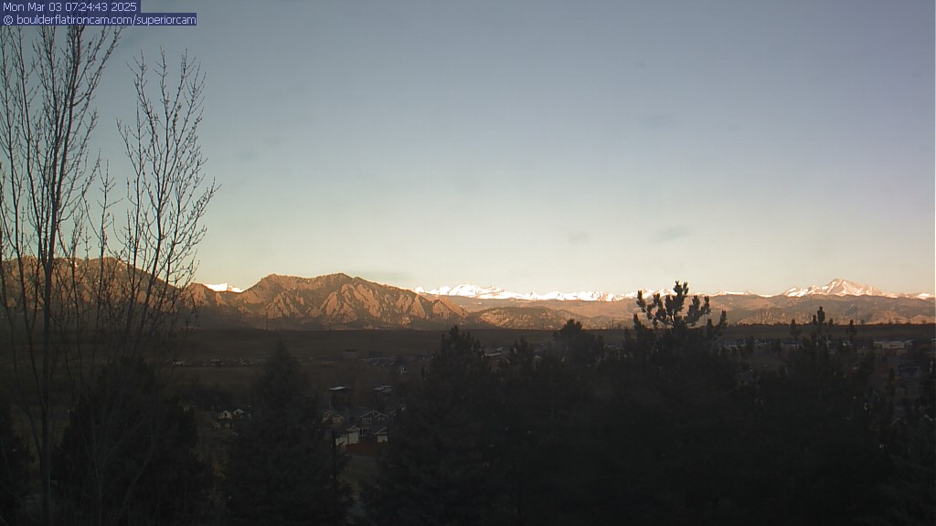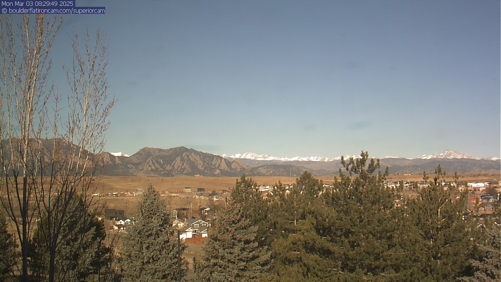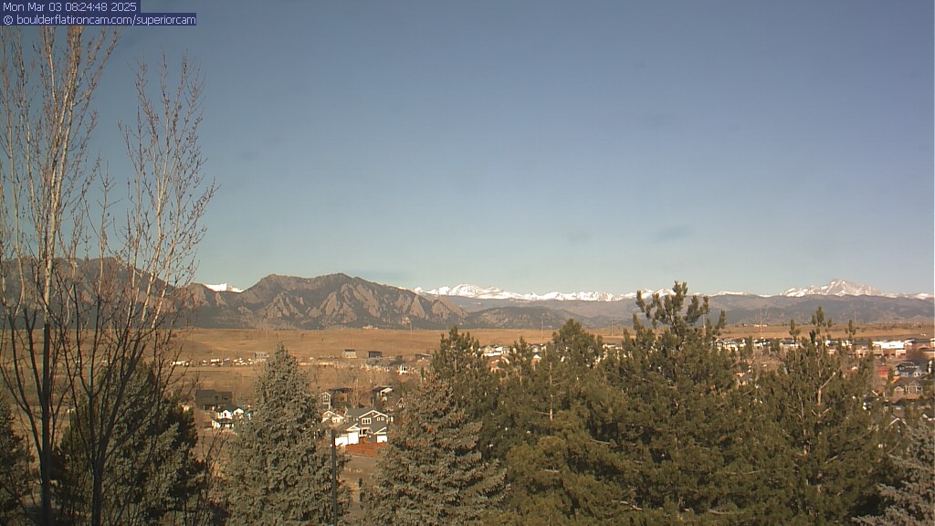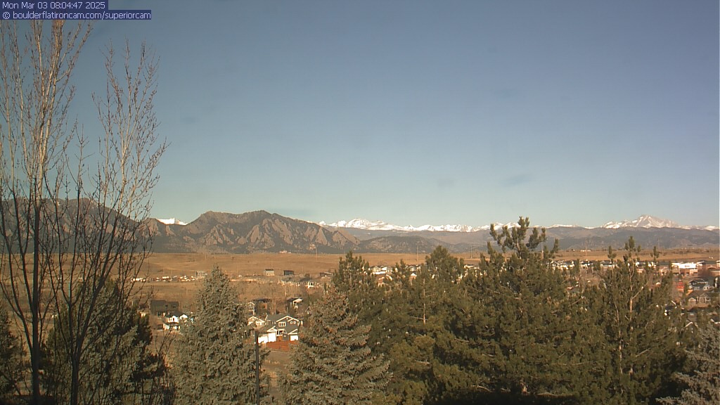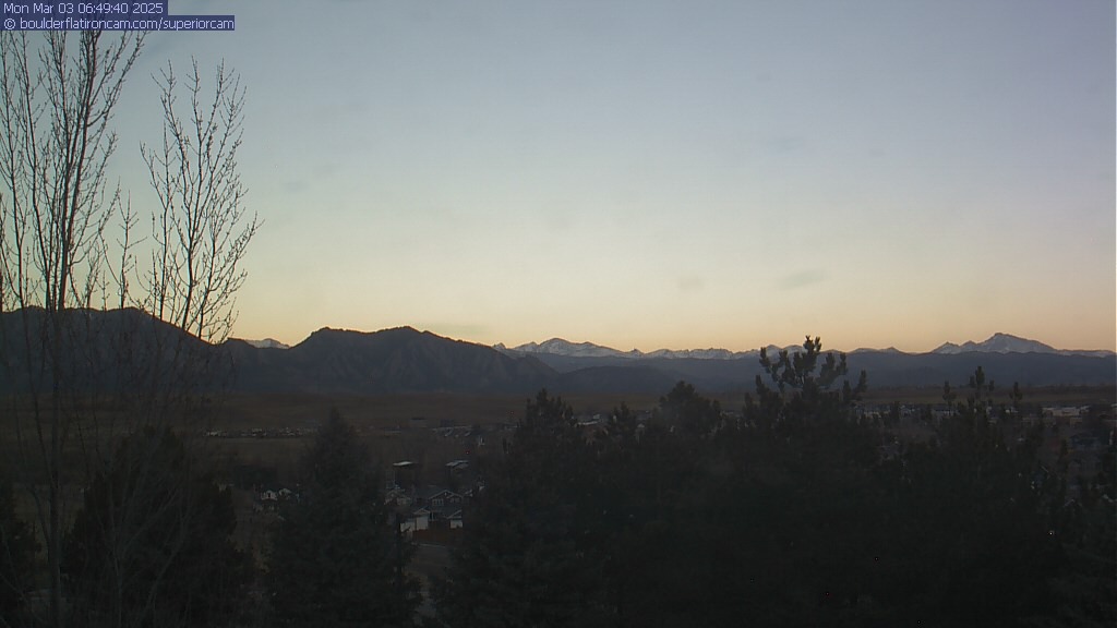 The Superior cam has a great view to the northwest over Boulder, the Flatirons, Indian Peaks and Long’s Peak.   The Coal Creek trail is visible in the foreground with old town Superior.  Thanks to Aweida Venture Partners management for the great view.