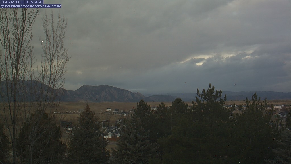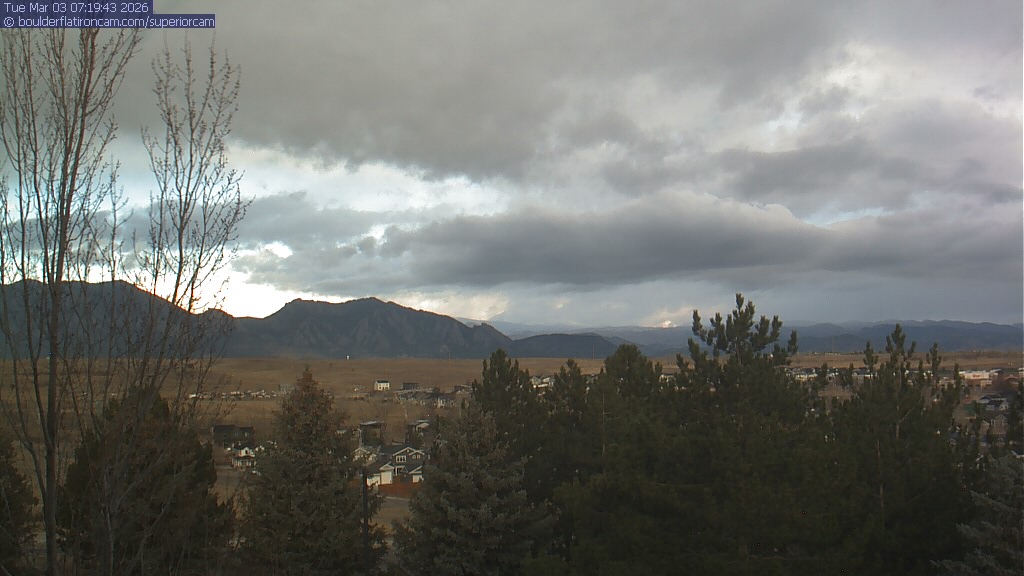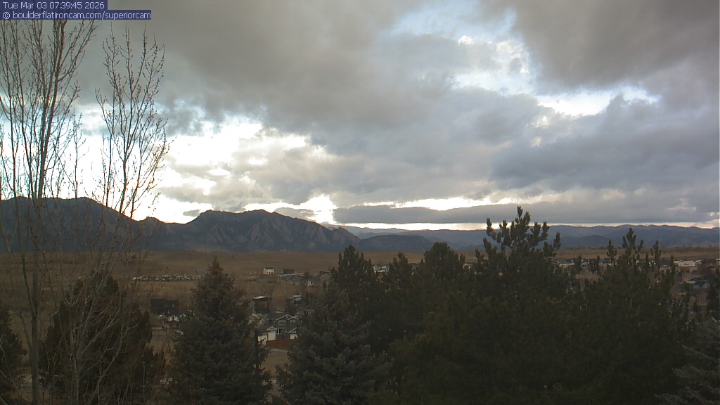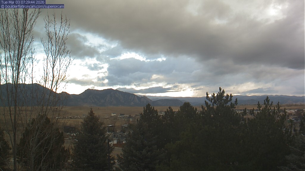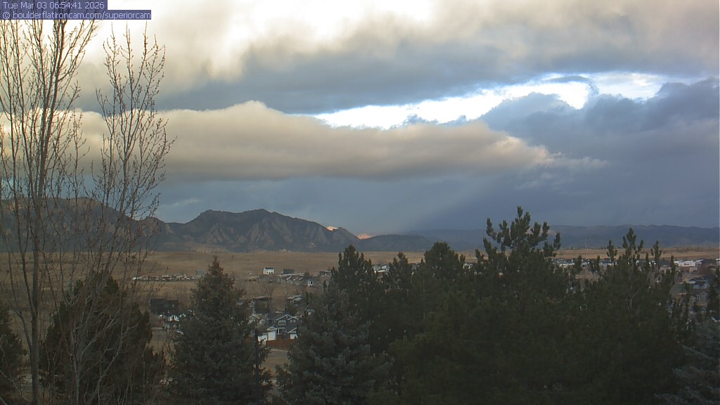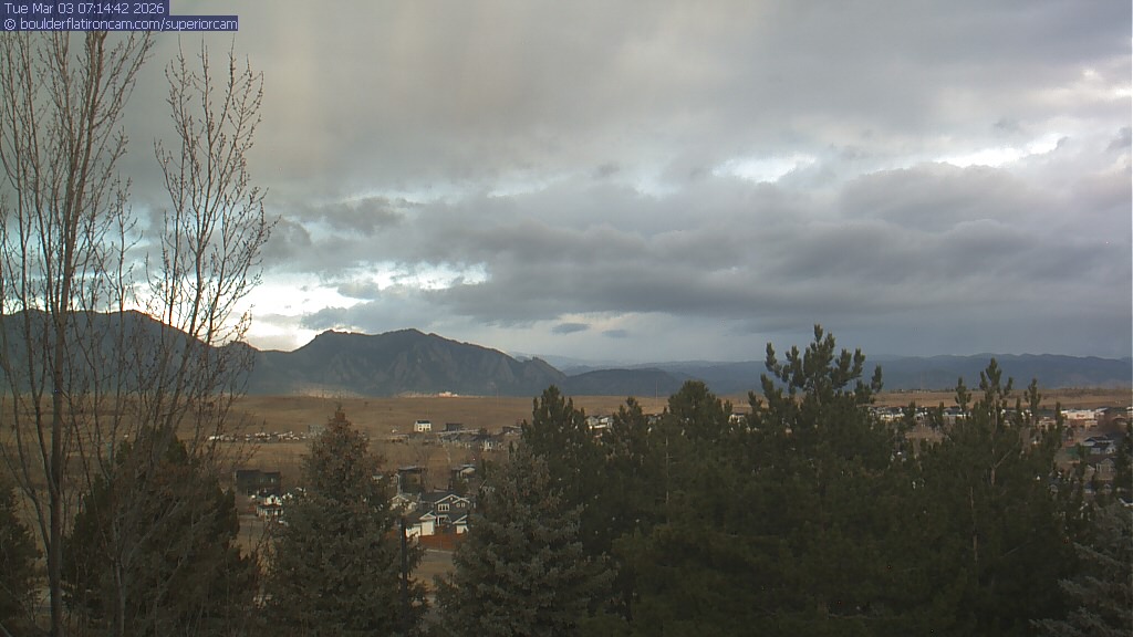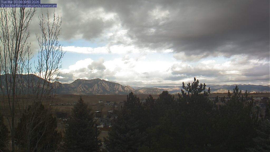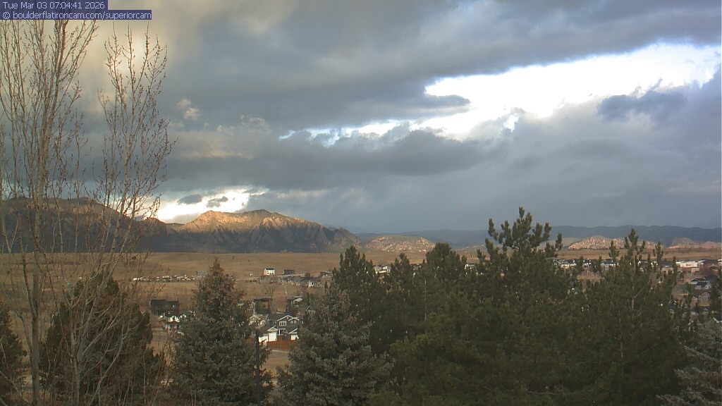 The Superior cam has a view to the northwest over Boulder, the Flatirons, Indian Peaks and Long’s Peak.   The Coal Creek trail is visible in the foreground with old town Superior.