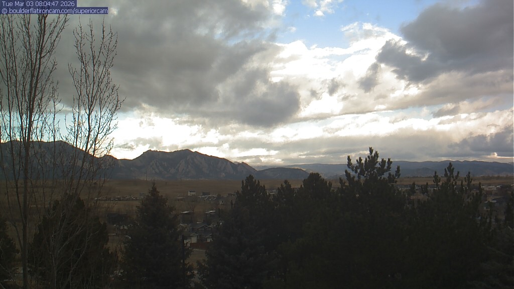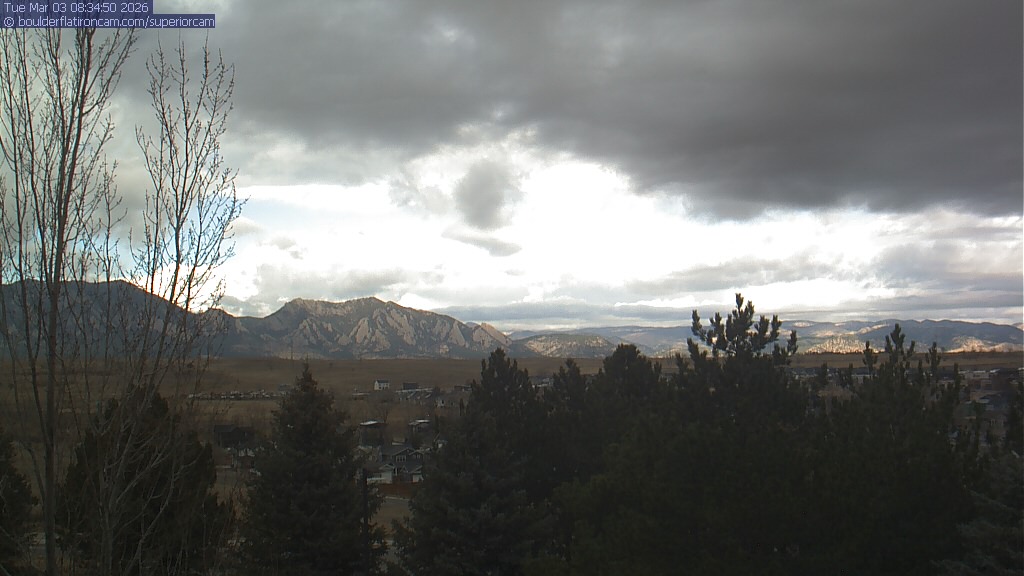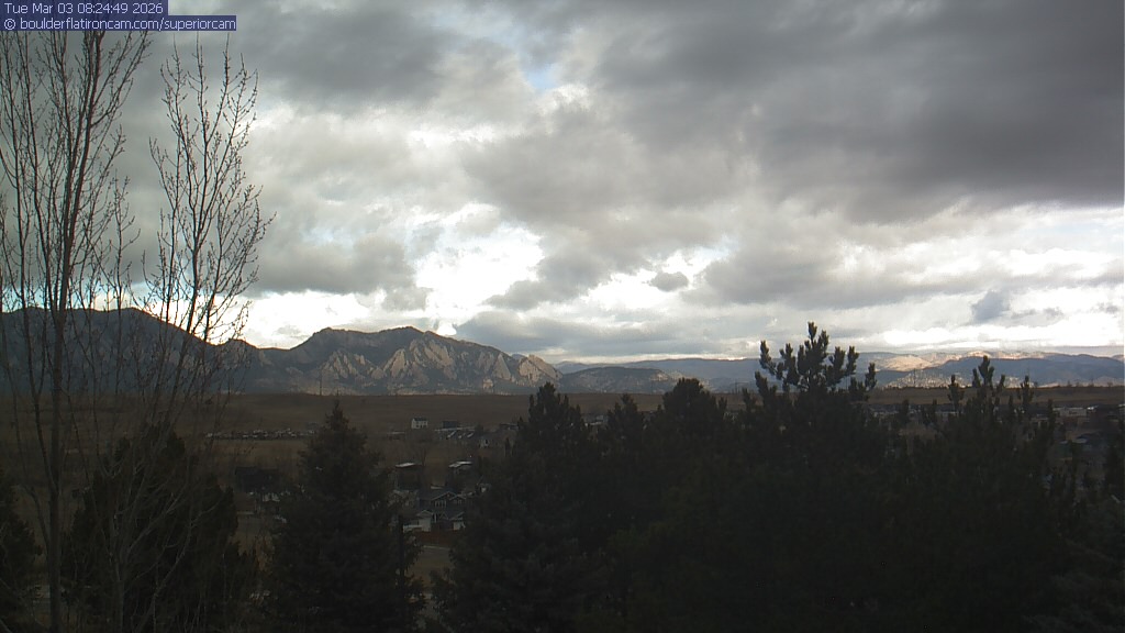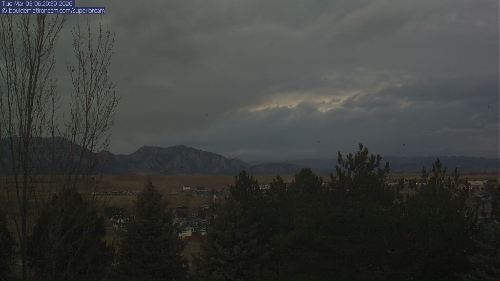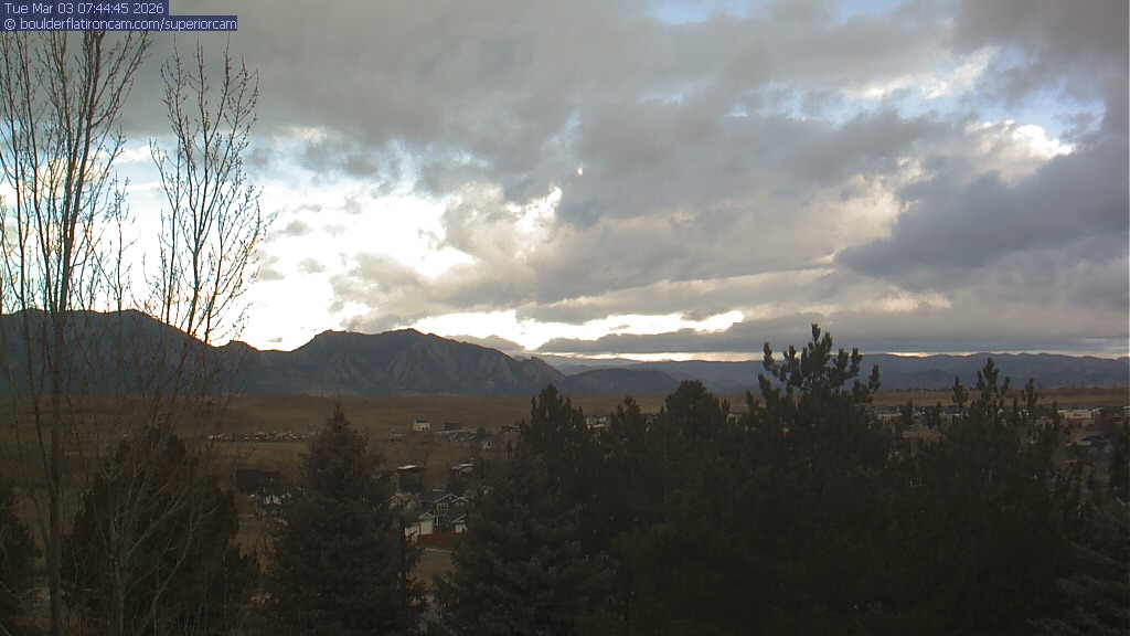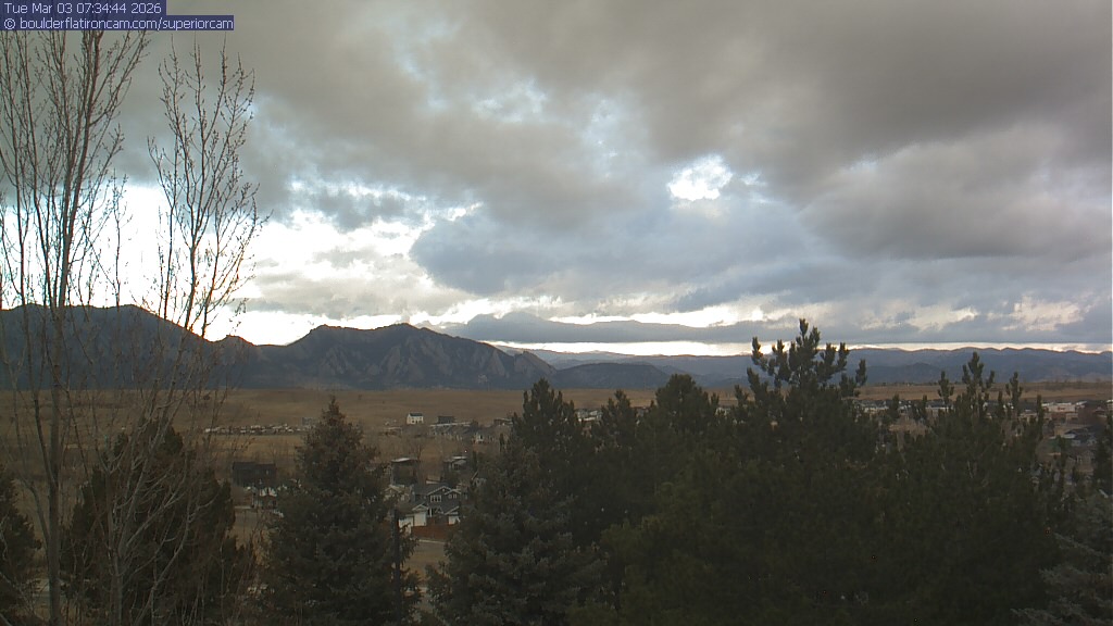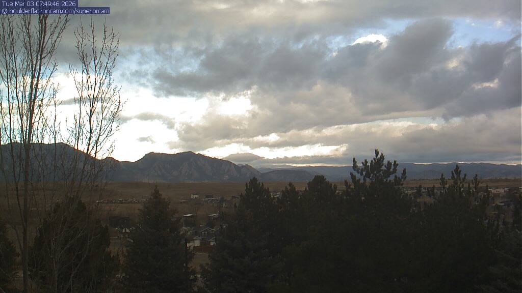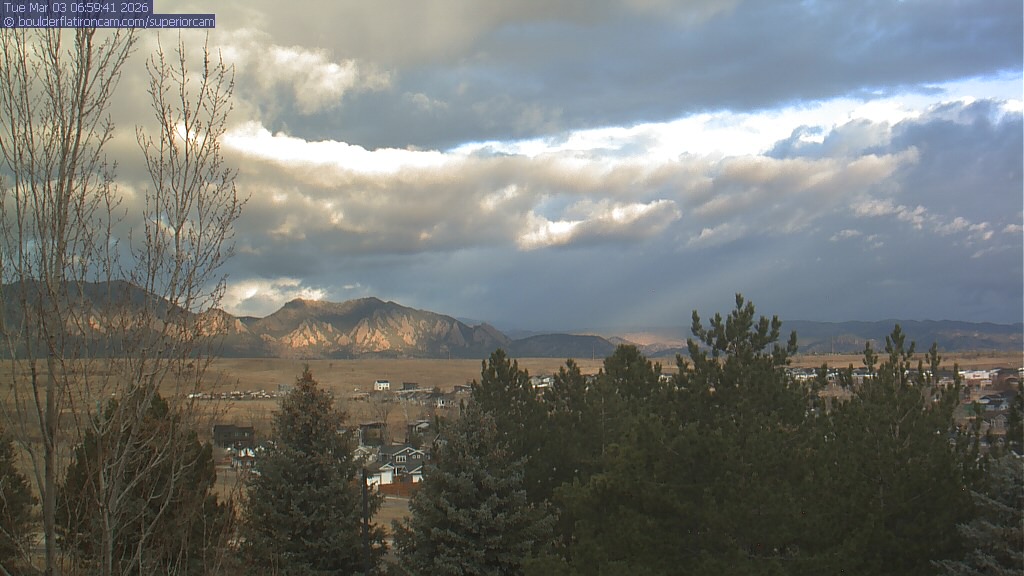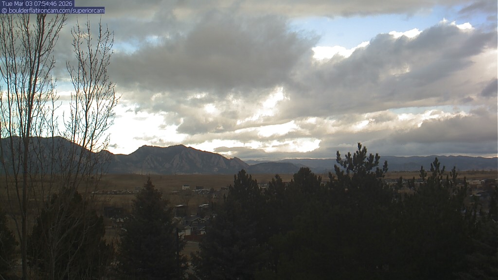 The Superior cam has a view to the northwest over Boulder, the Flatirons, Indian Peaks and Long’s Peak.   The Coal Creek trail is visible in the foreground with old town Superior.