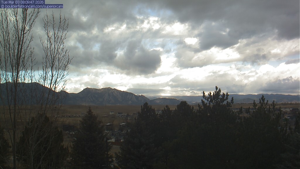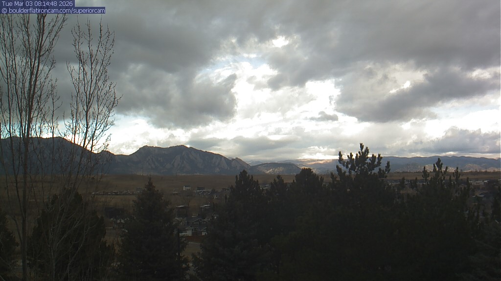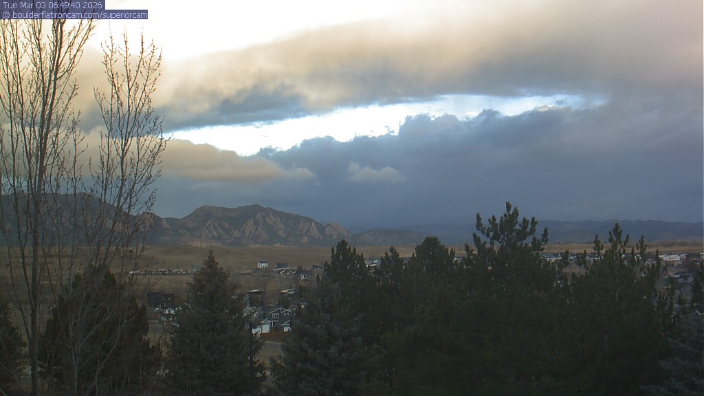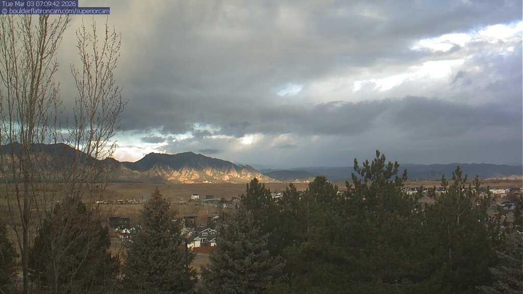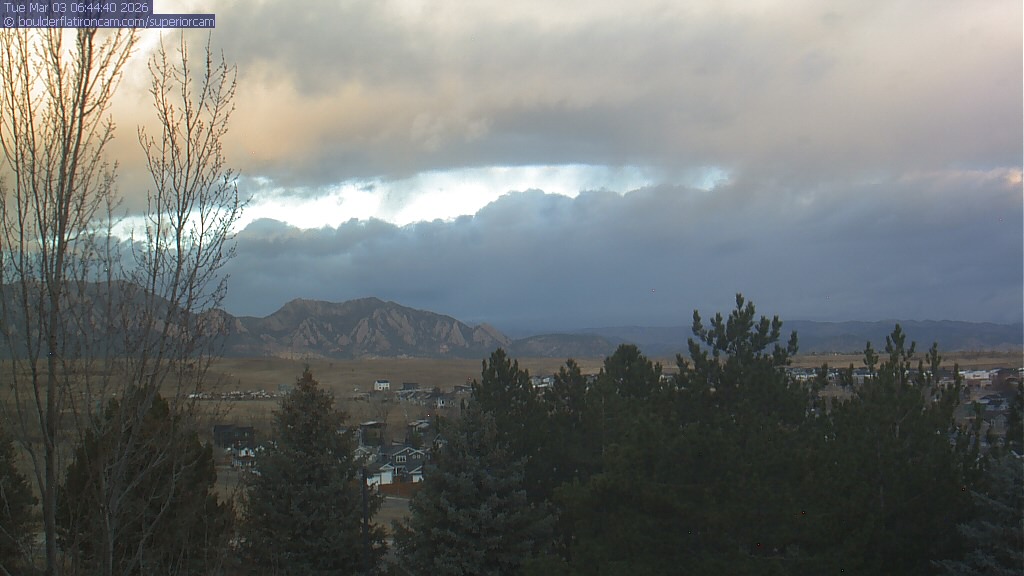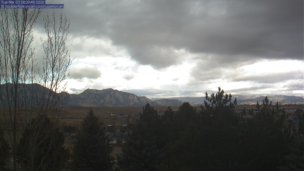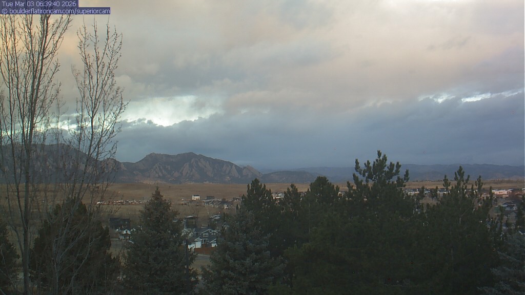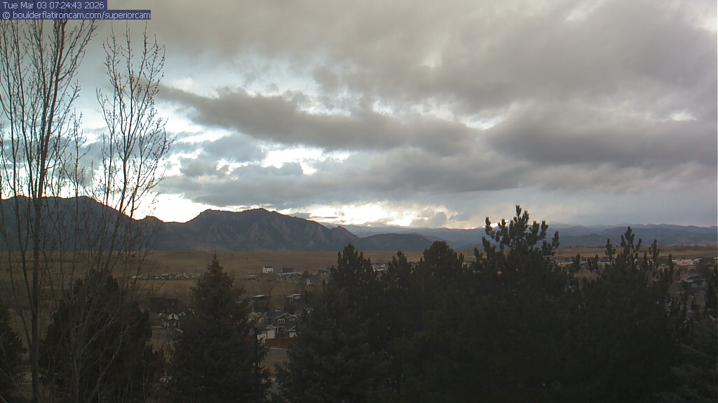 The Superior cam has a view to the northwest over Boulder, the Flatirons, Indian Peaks and Long’s Peak.   The Coal Creek trail is visible in the foreground with old town Superior.