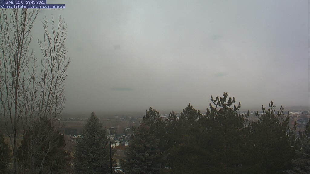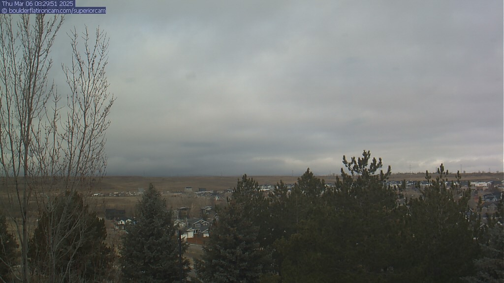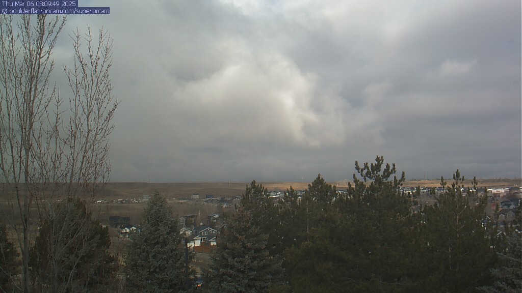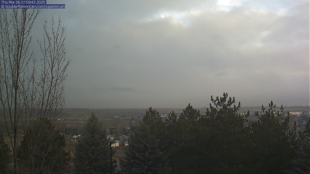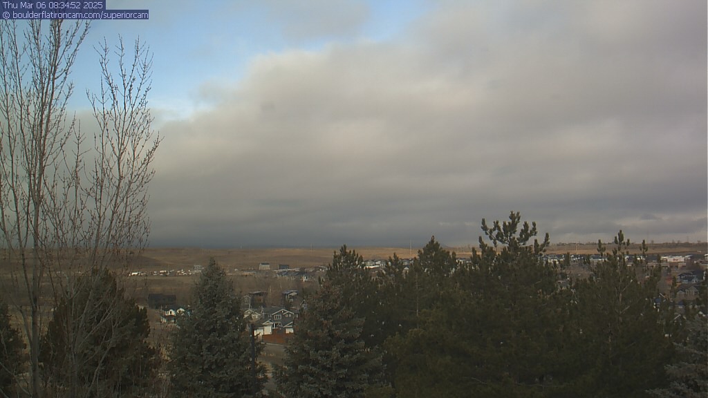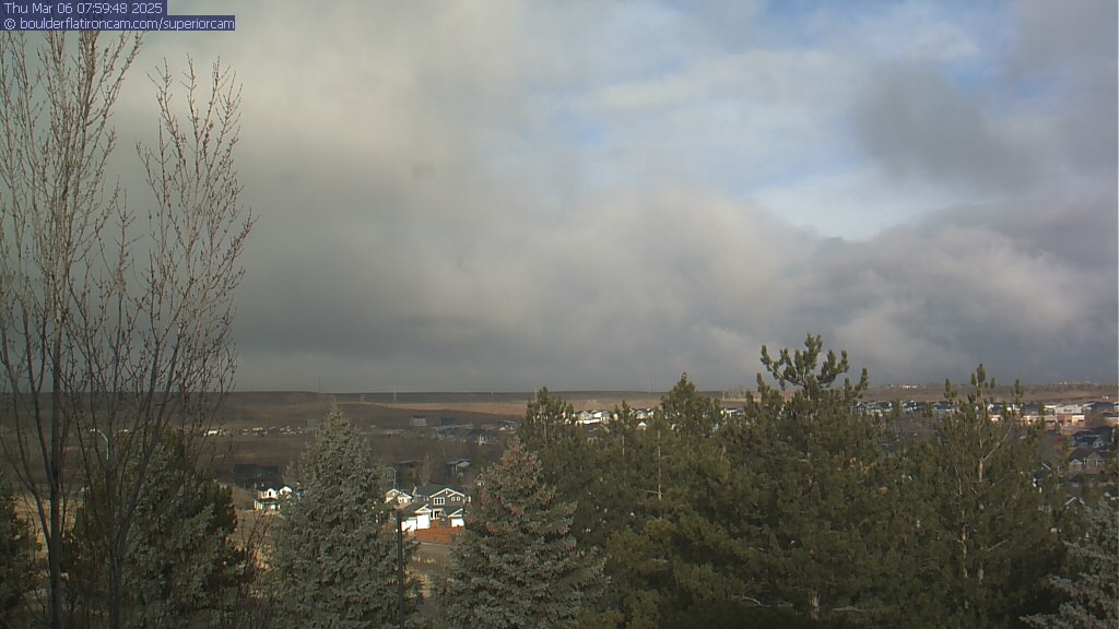 The Superior cam has a great view to the northwest over Boulder, the Flatirons, Indian Peaks and Long’s Peak.   The Coal Creek trail is visible in the foreground with old town Superior.  Thanks to Aweida Venture Partners management for the great view.