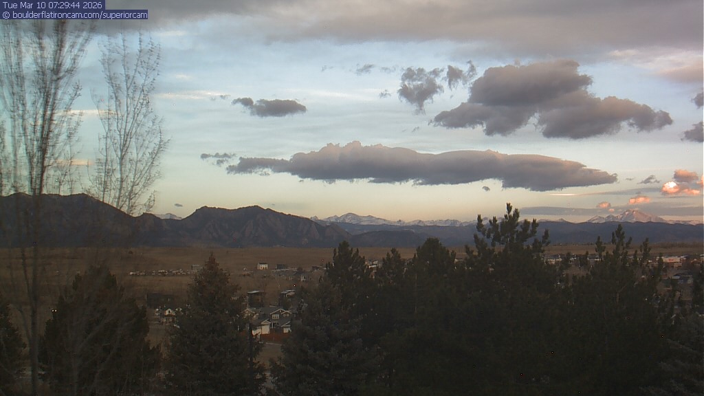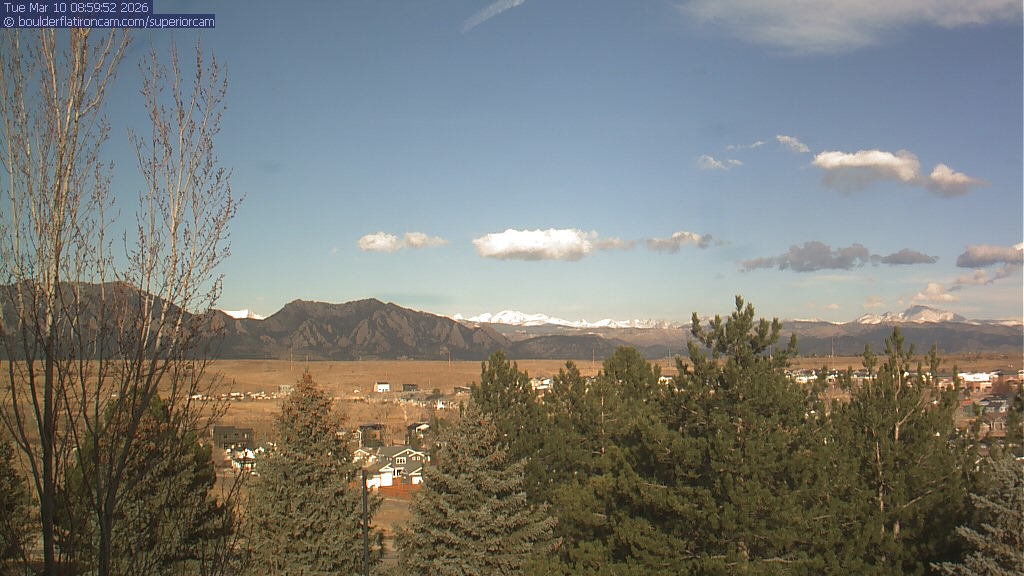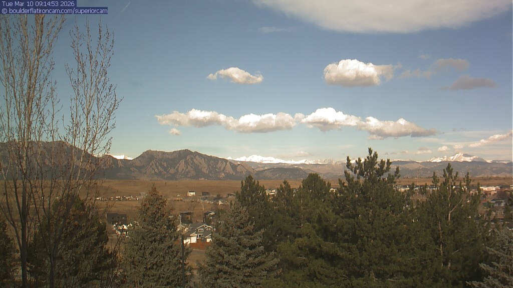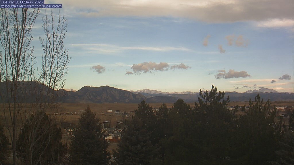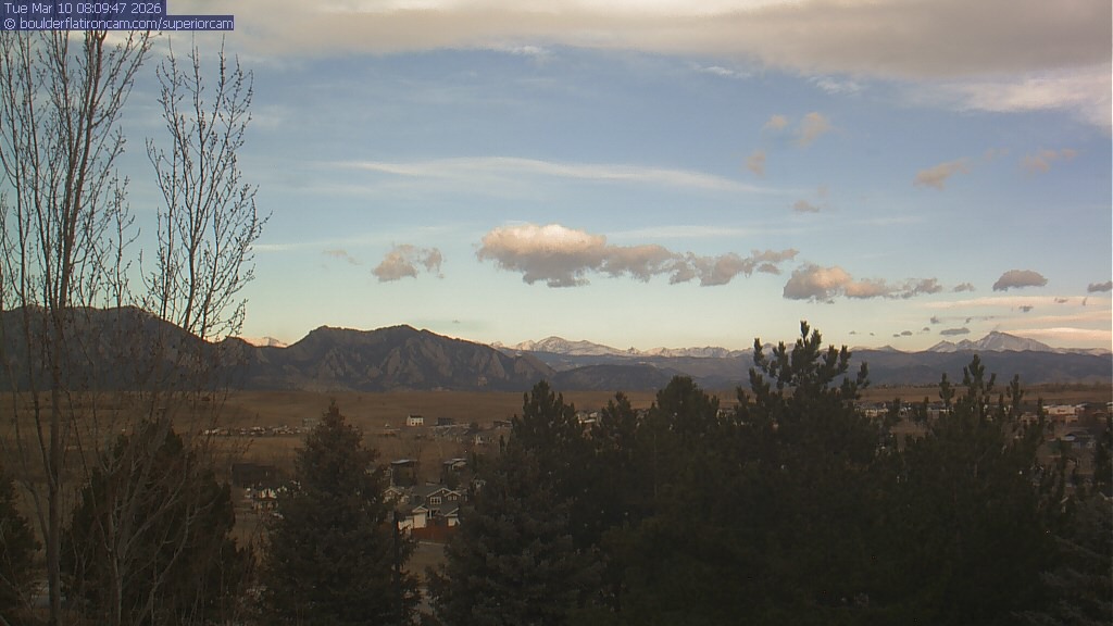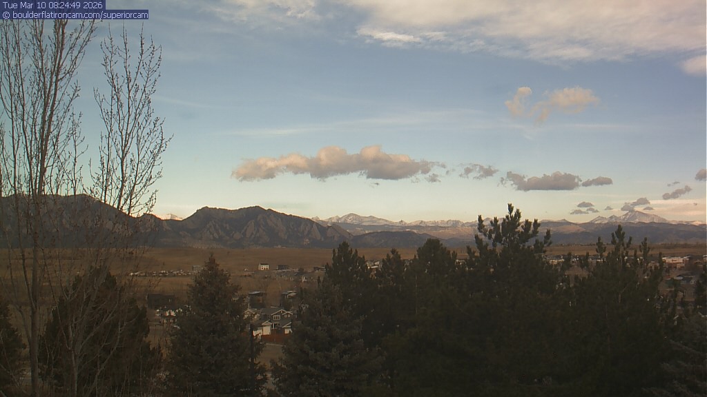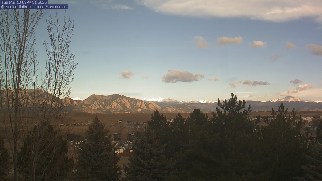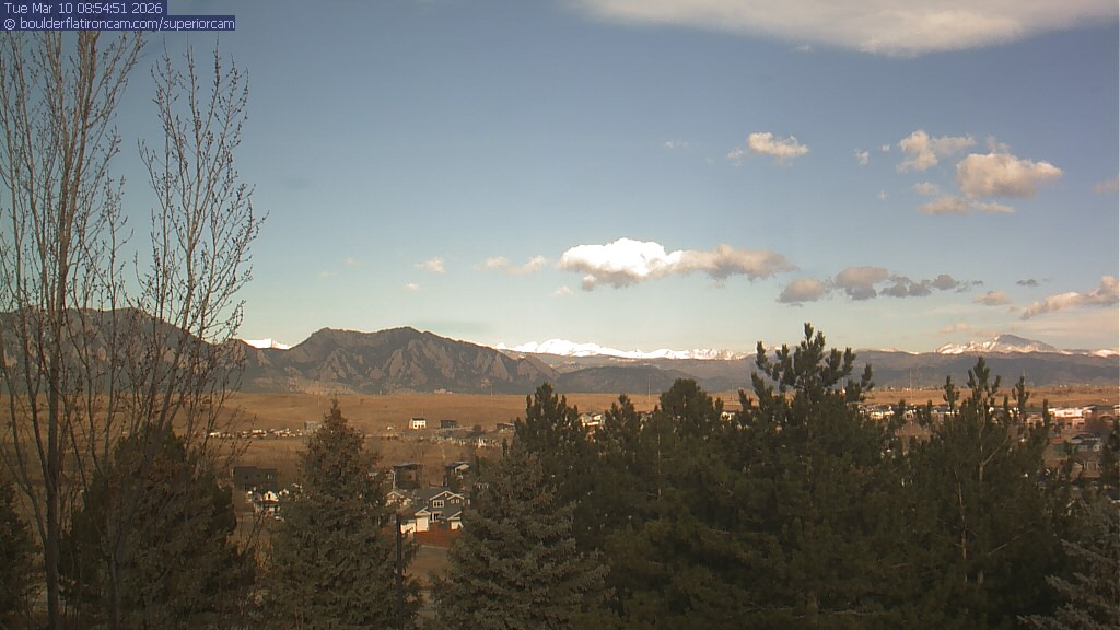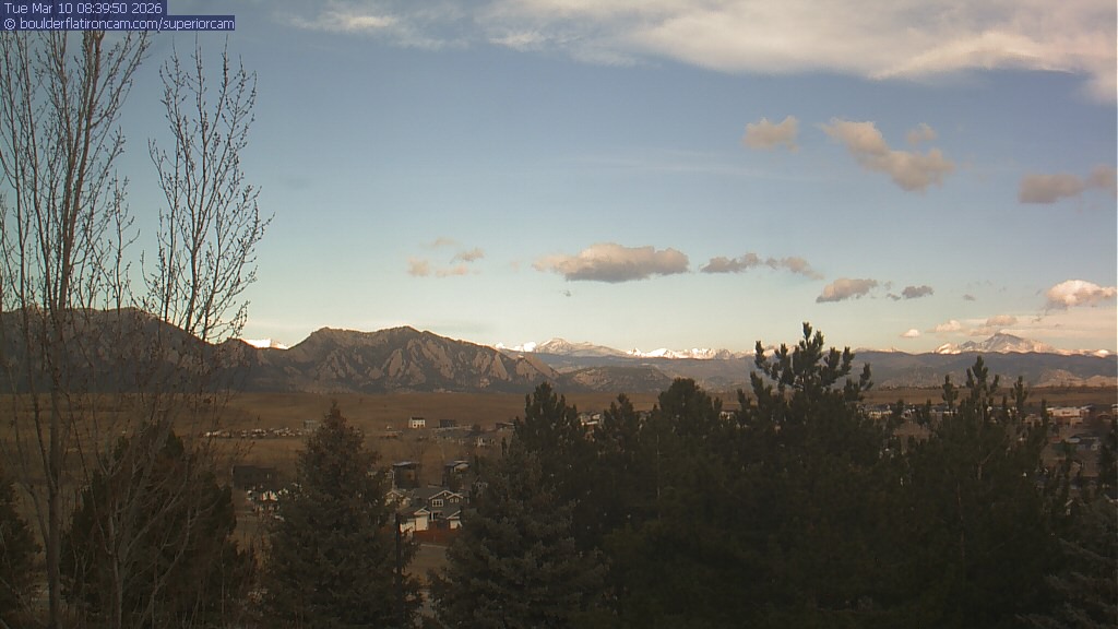 The Superior cam has a view to the northwest over Boulder, the Flatirons, Indian Peaks and Long’s Peak.   The Coal Creek trail is visible in the foreground with old town Superior.