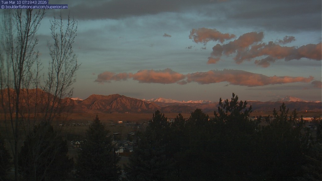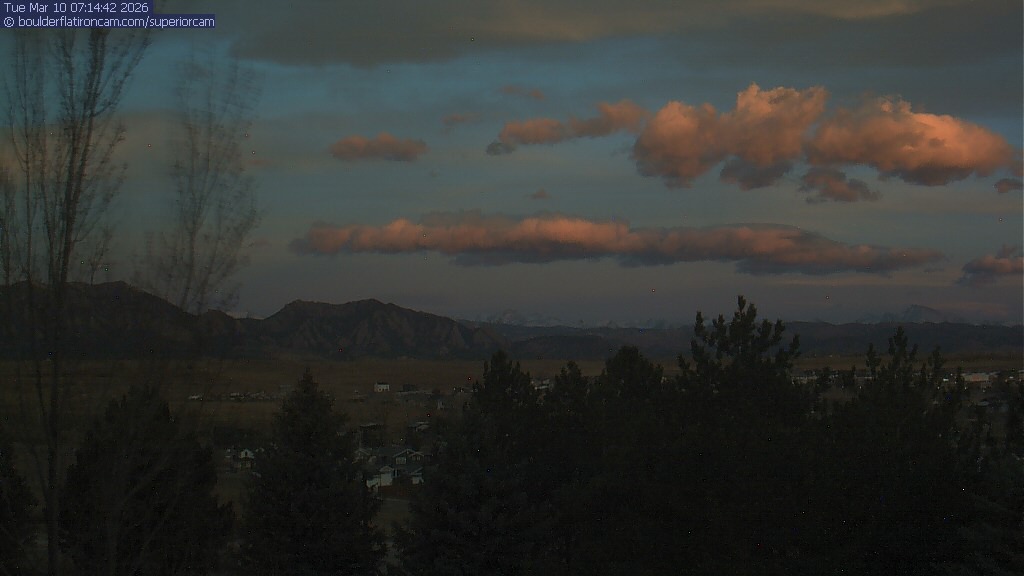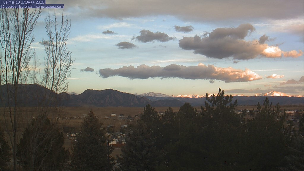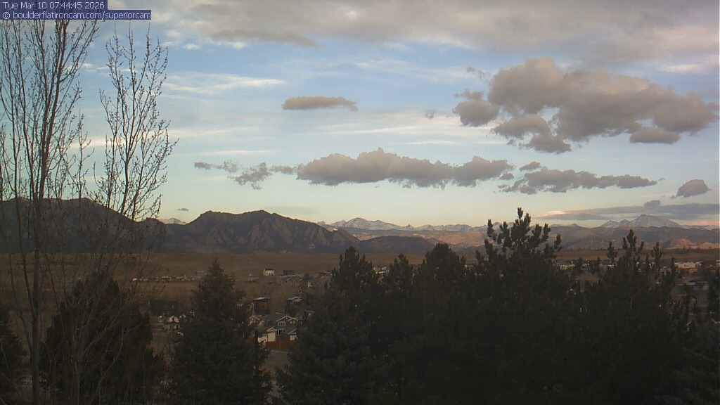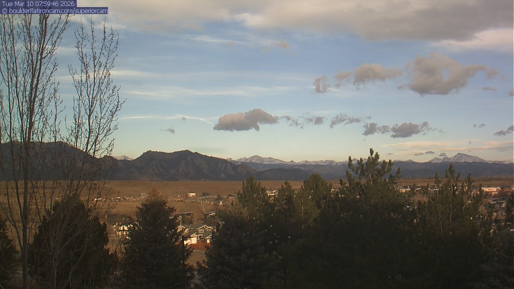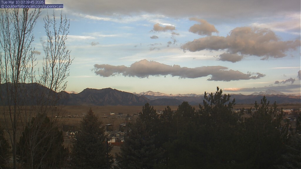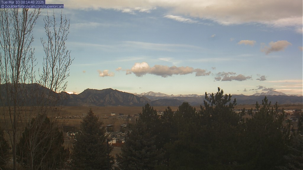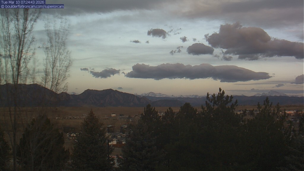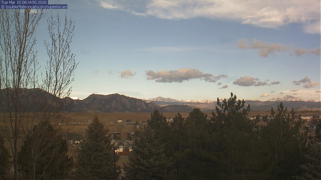 The Superior cam has a view to the northwest over Boulder, the Flatirons, Indian Peaks and Long’s Peak.   The Coal Creek trail is visible in the foreground with old town Superior.