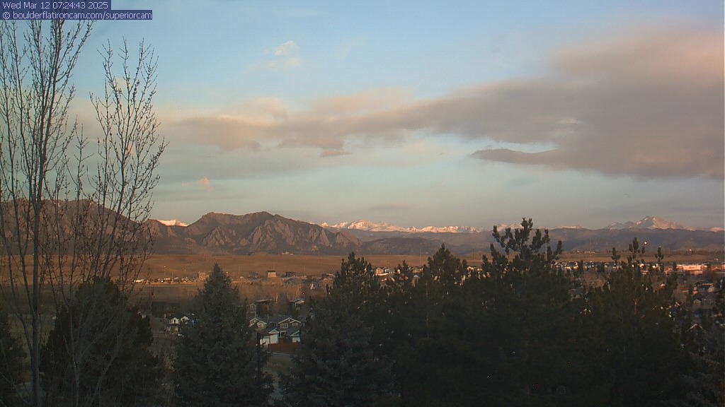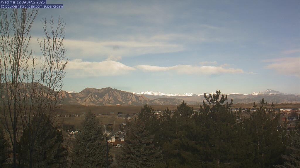 The Superior cam has a great view to the northwest over Boulder, the Flatirons, Indian Peaks and Long’s Peak.   The Coal Creek trail is visible in the foreground with old town Superior.  Thanks to Aweida Venture Partners management for the great view.