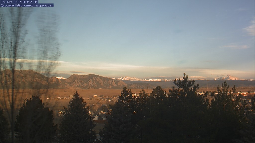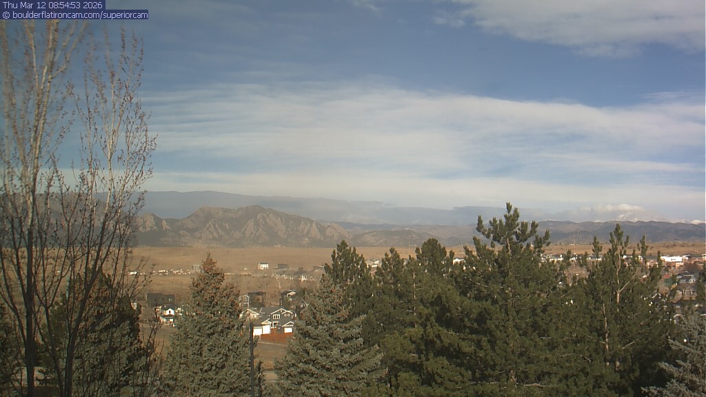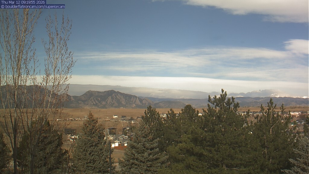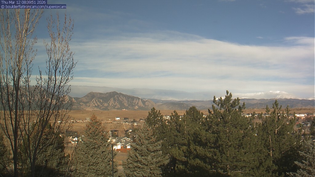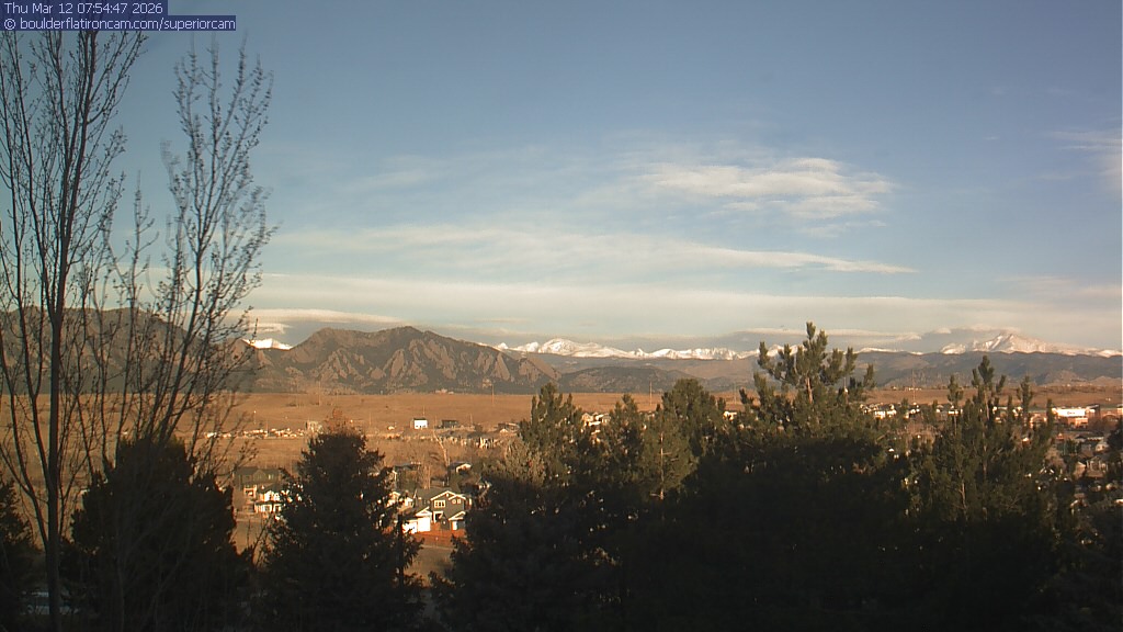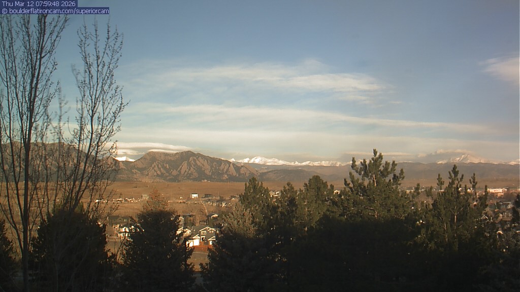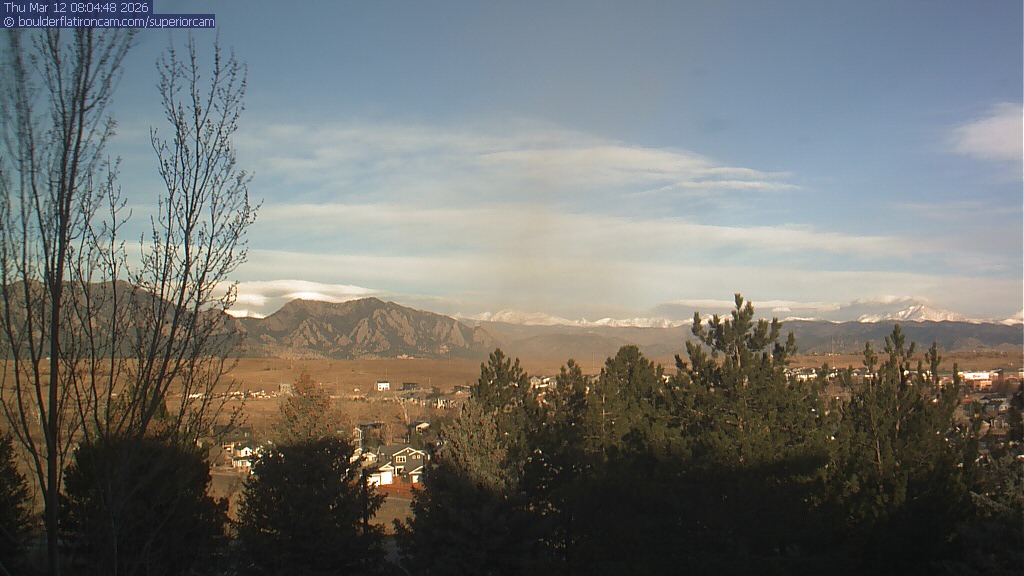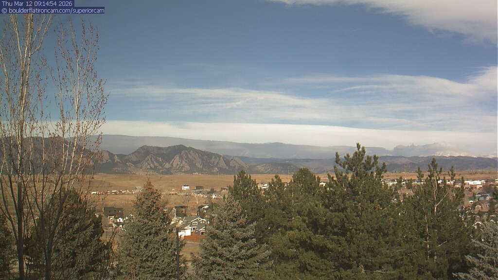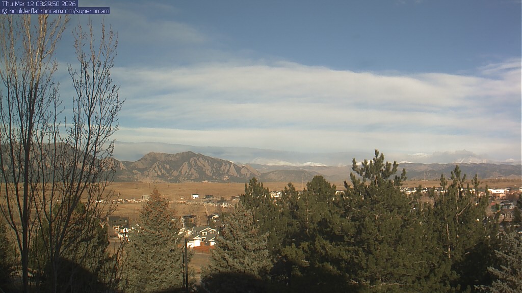 The Superior cam has a view to the northwest over Boulder, the Flatirons, Indian Peaks and Long’s Peak.   The Coal Creek trail is visible in the foreground with old town Superior.