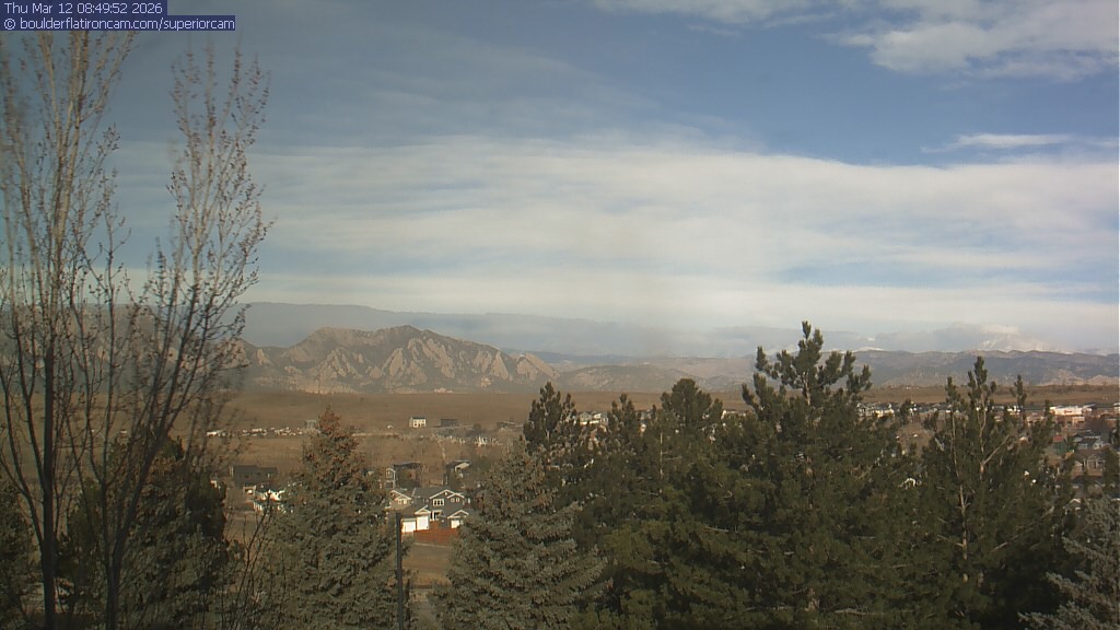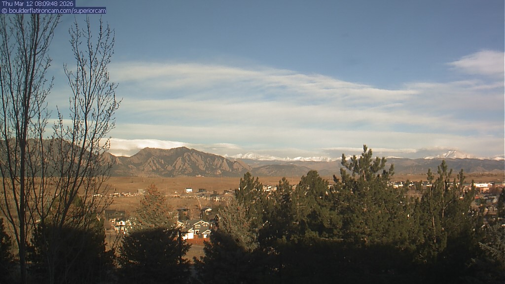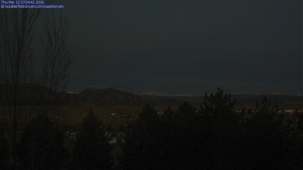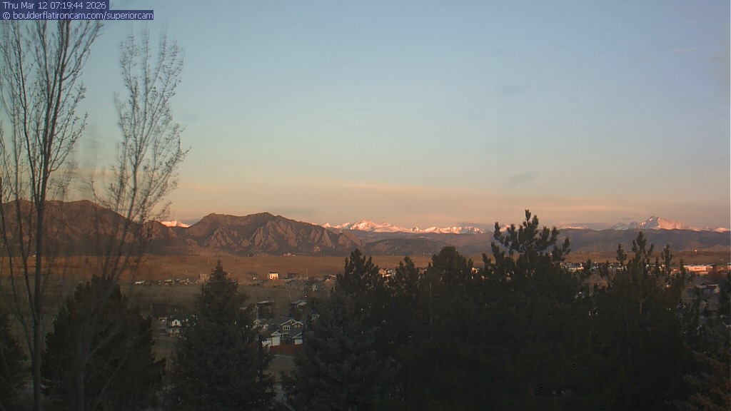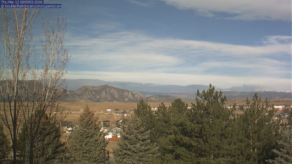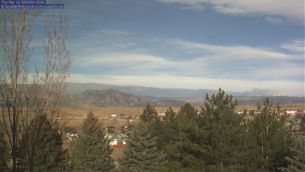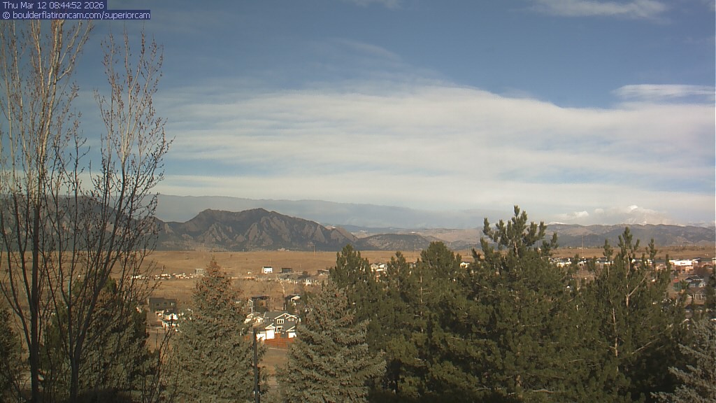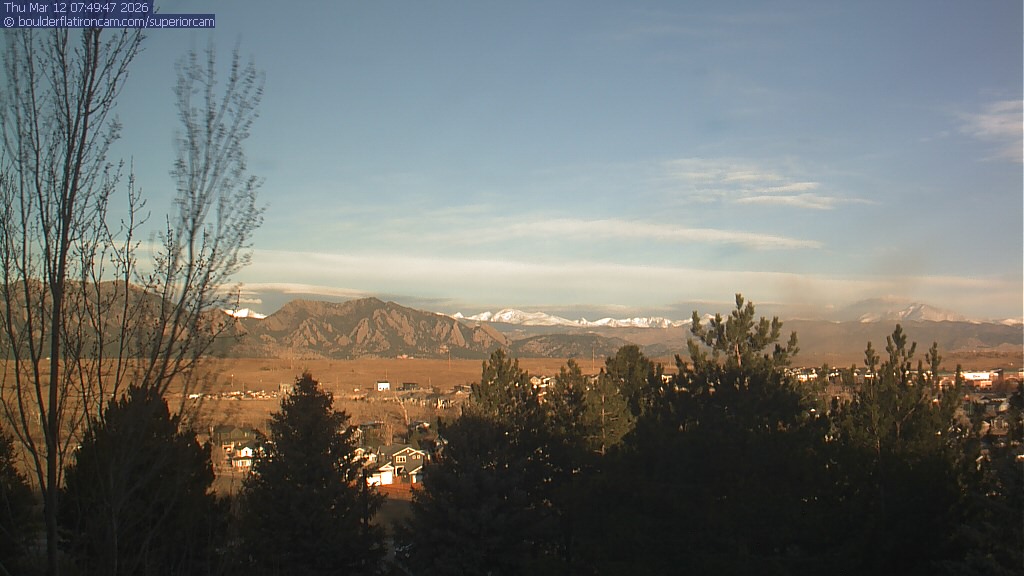 The Superior cam has a view to the northwest over Boulder, the Flatirons, Indian Peaks and Long’s Peak.   The Coal Creek trail is visible in the foreground with old town Superior.
