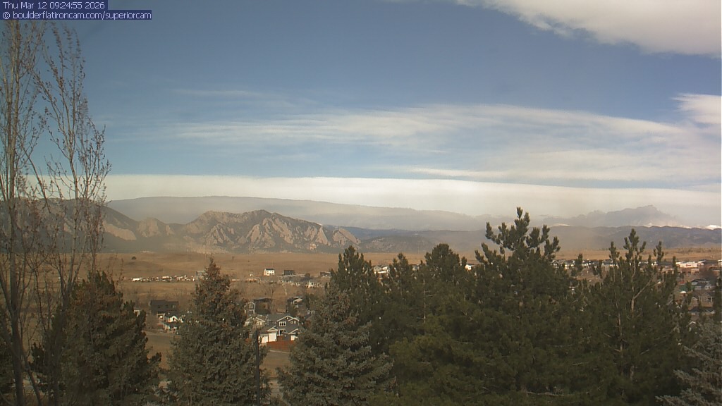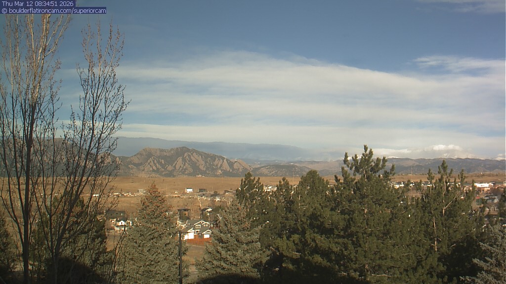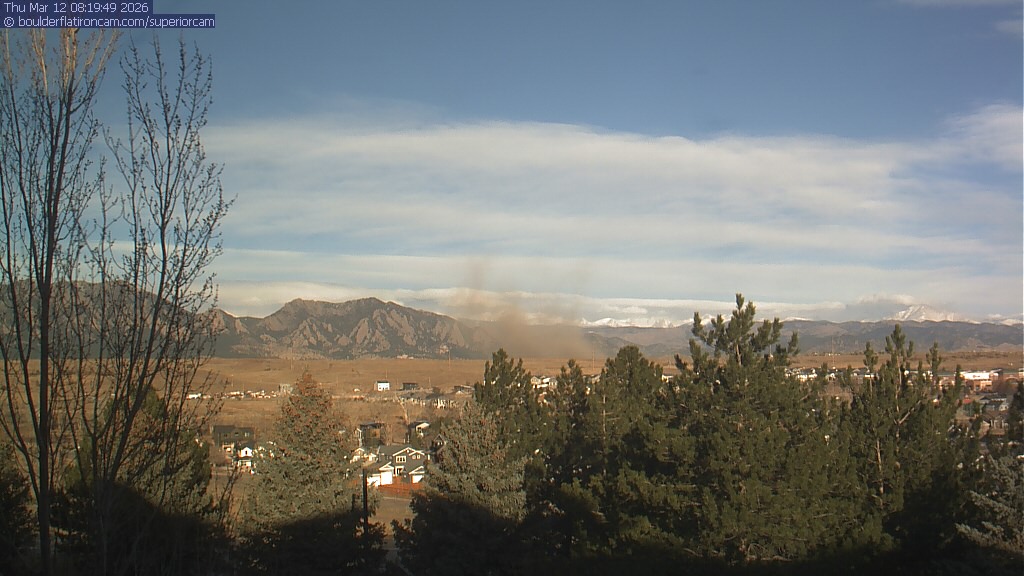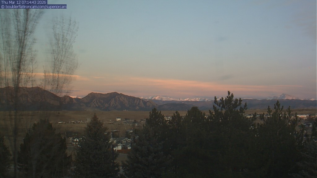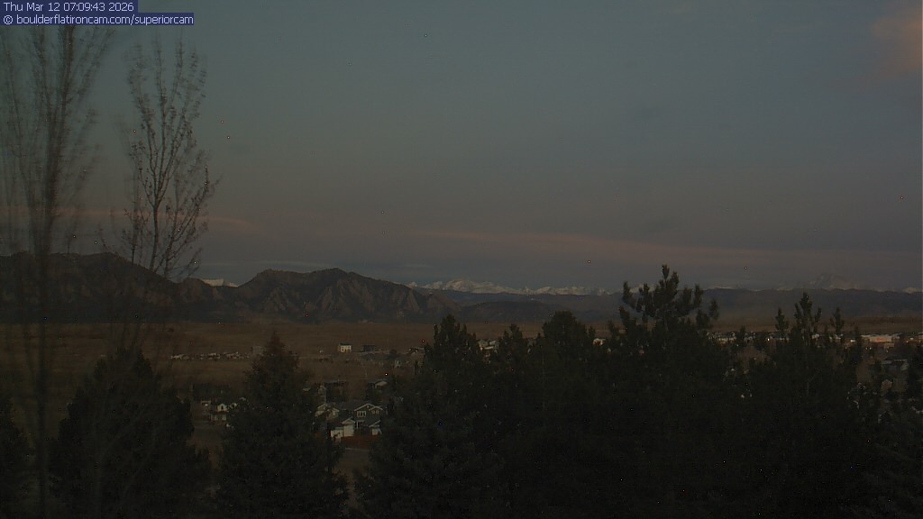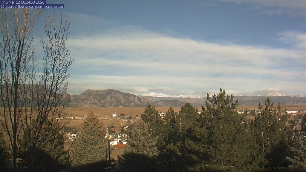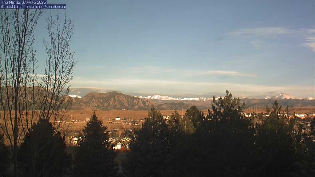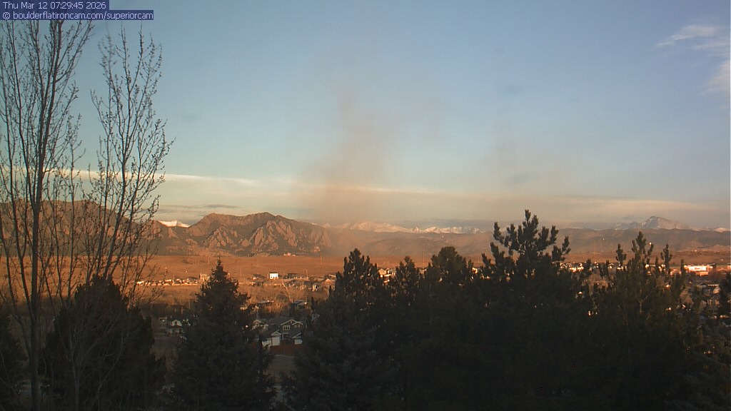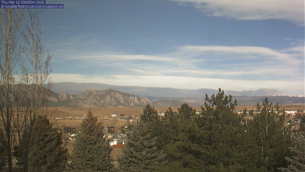 The Superior cam has a view to the northwest over Boulder, the Flatirons, Indian Peaks and Long’s Peak.   The Coal Creek trail is visible in the foreground with old town Superior.