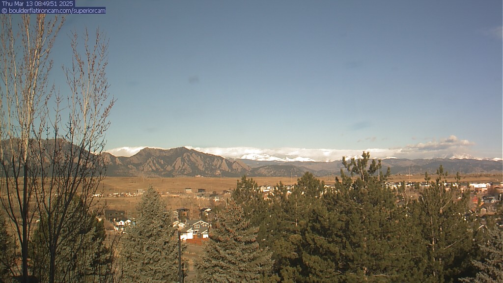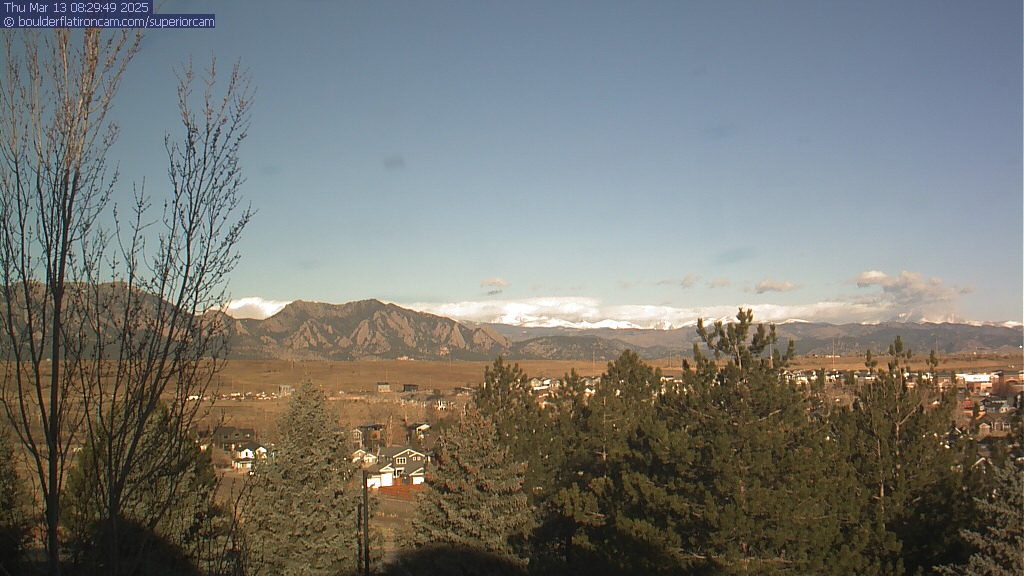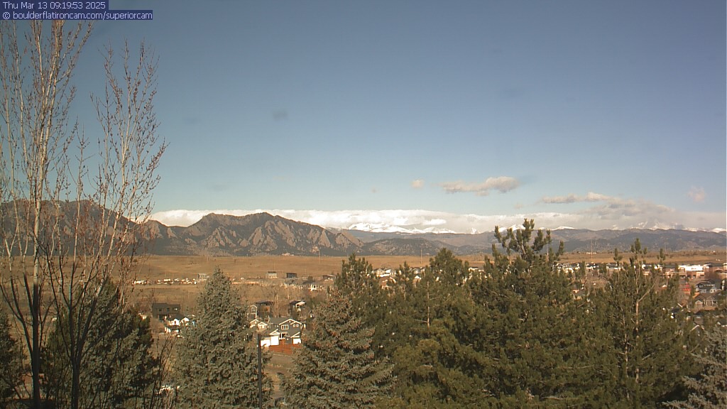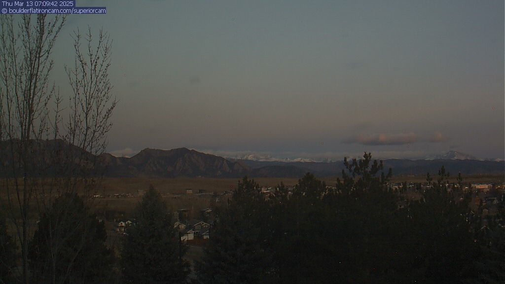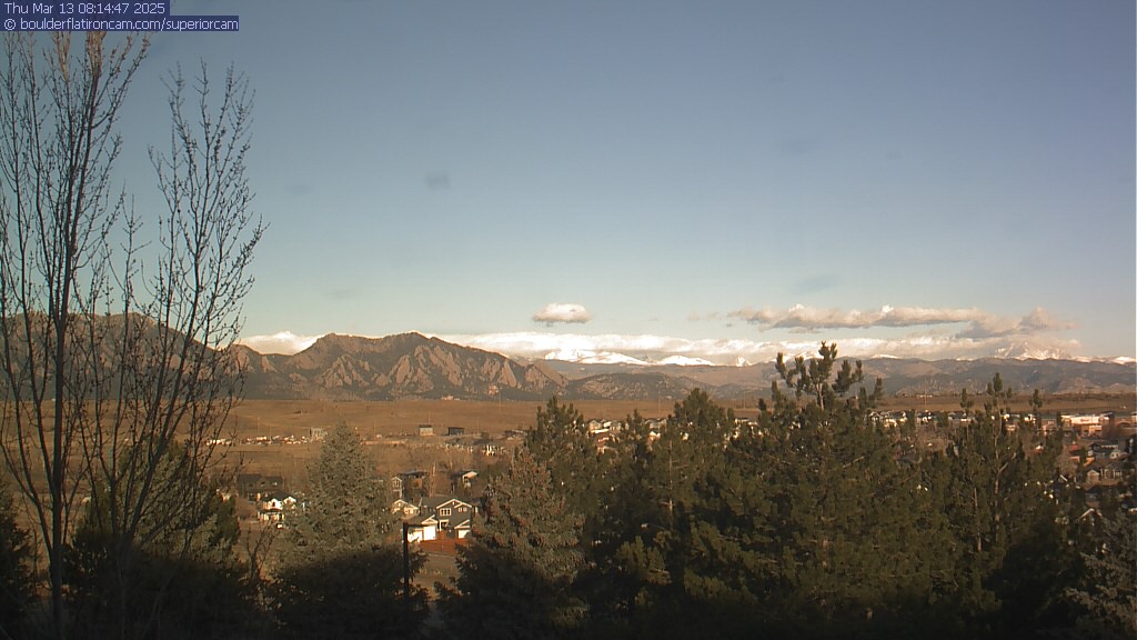 The Superior cam has a great view to the northwest over Boulder, the Flatirons, Indian Peaks and Long’s Peak.   The Coal Creek trail is visible in the foreground with old town Superior.  Thanks to Aweida Venture Partners management for the great view.