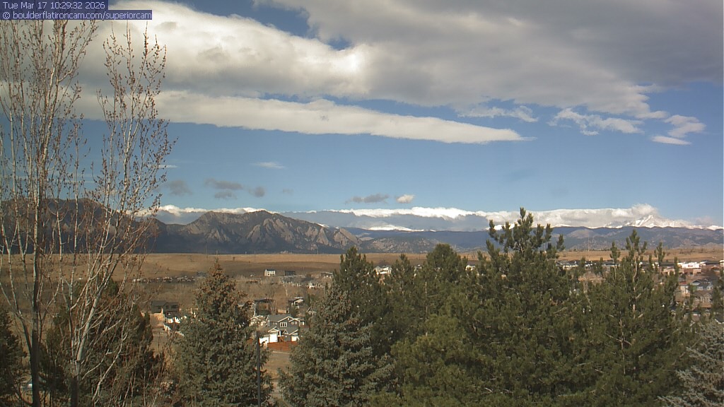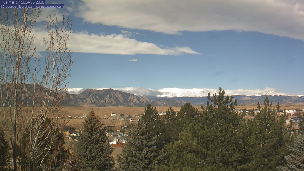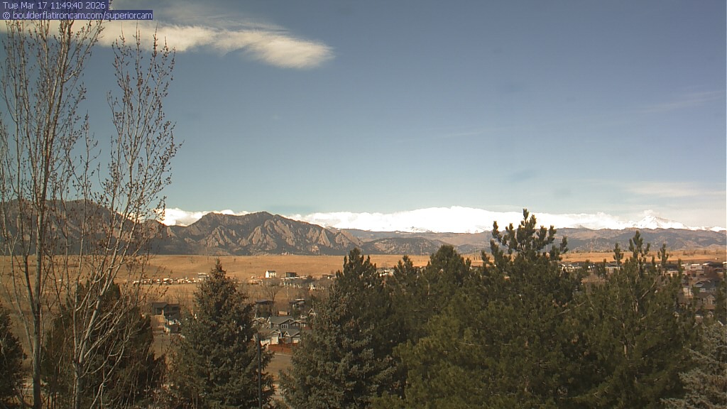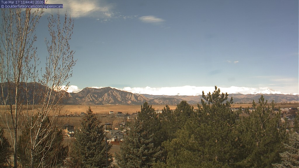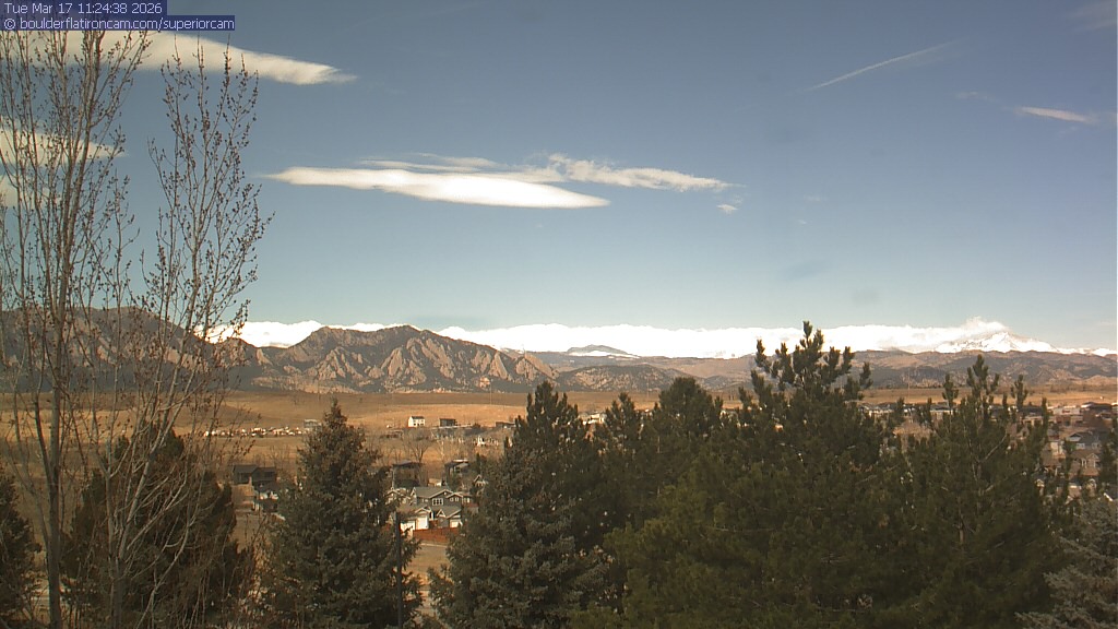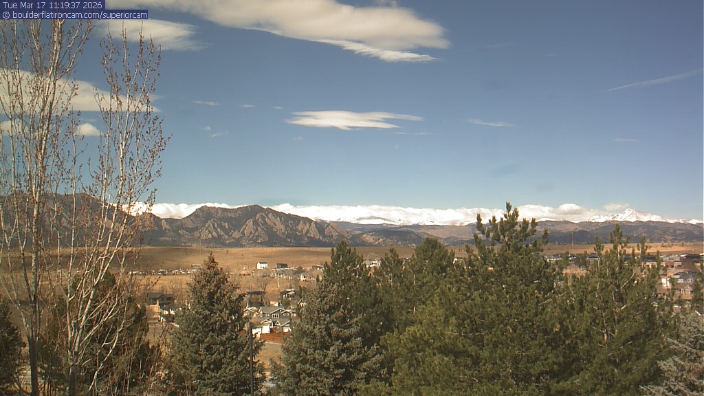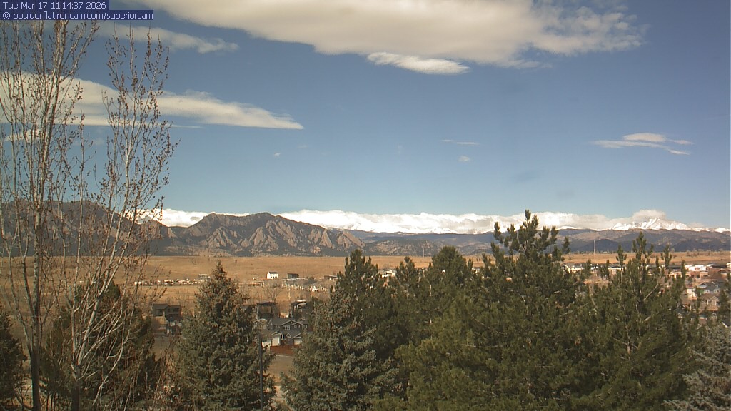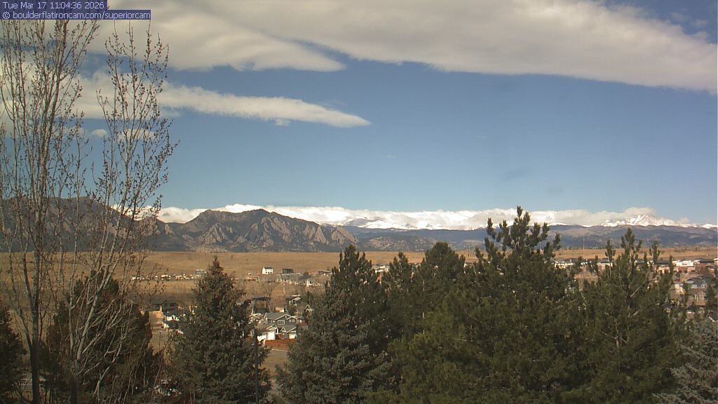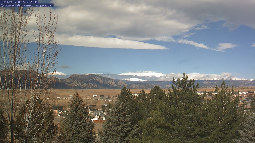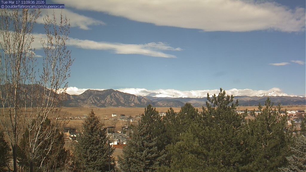 The Superior cam has a view to the northwest over Boulder, the Flatirons, Indian Peaks and Long’s Peak.   The Coal Creek trail is visible in the foreground with old town Superior.