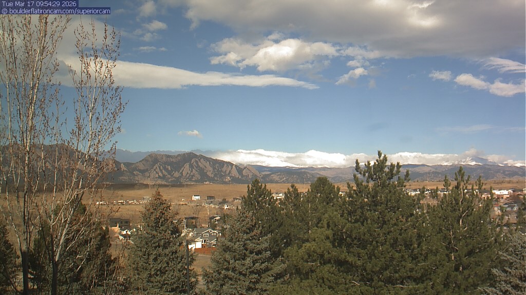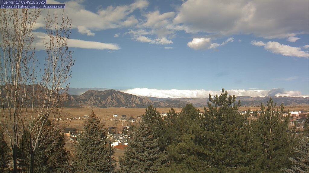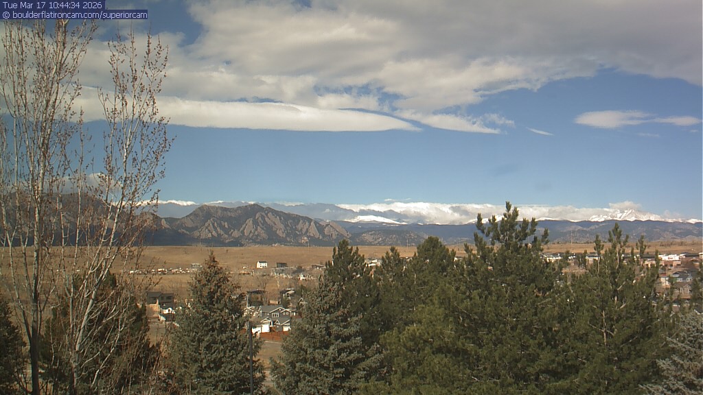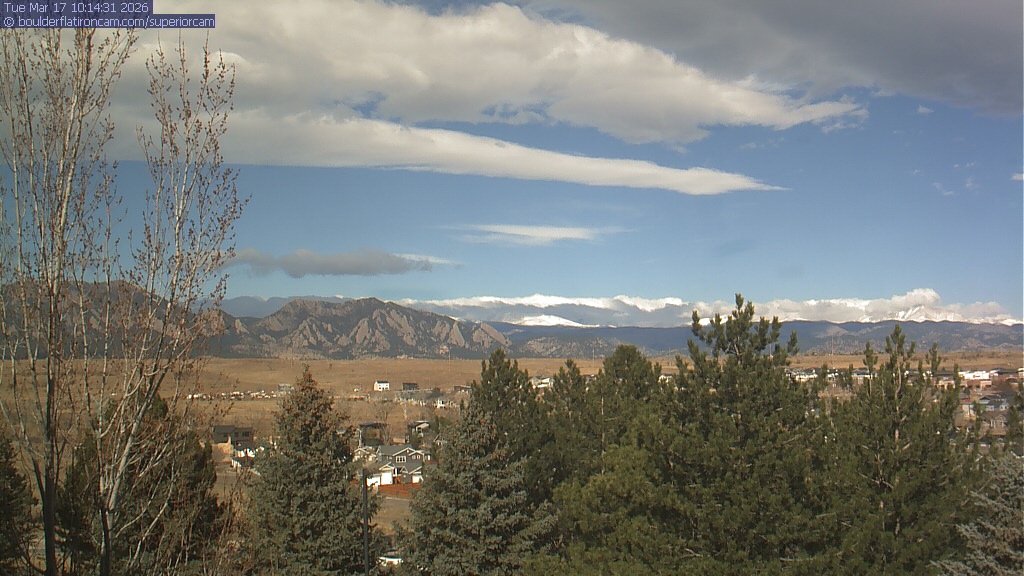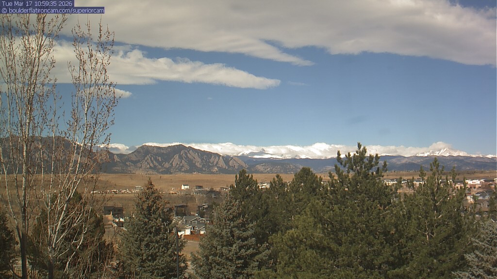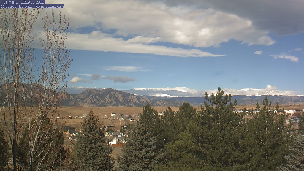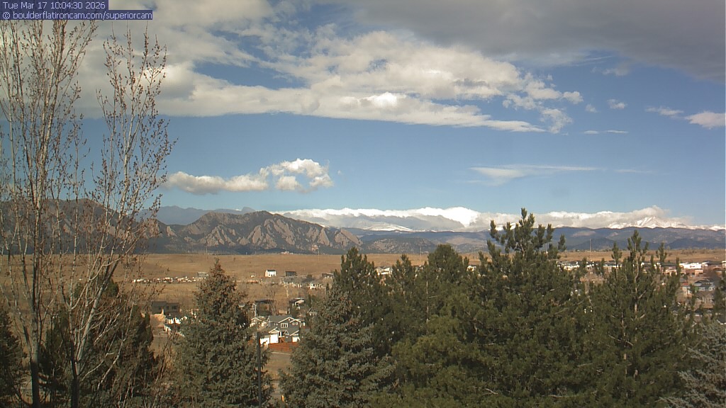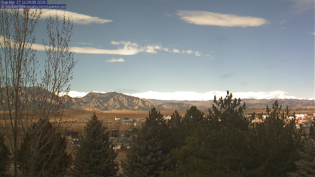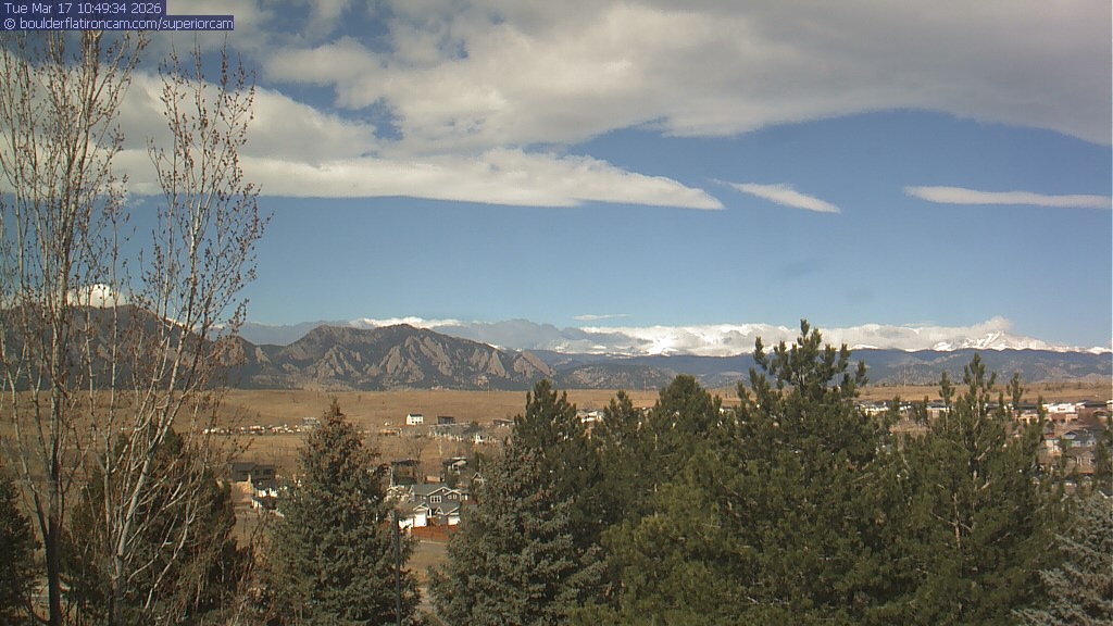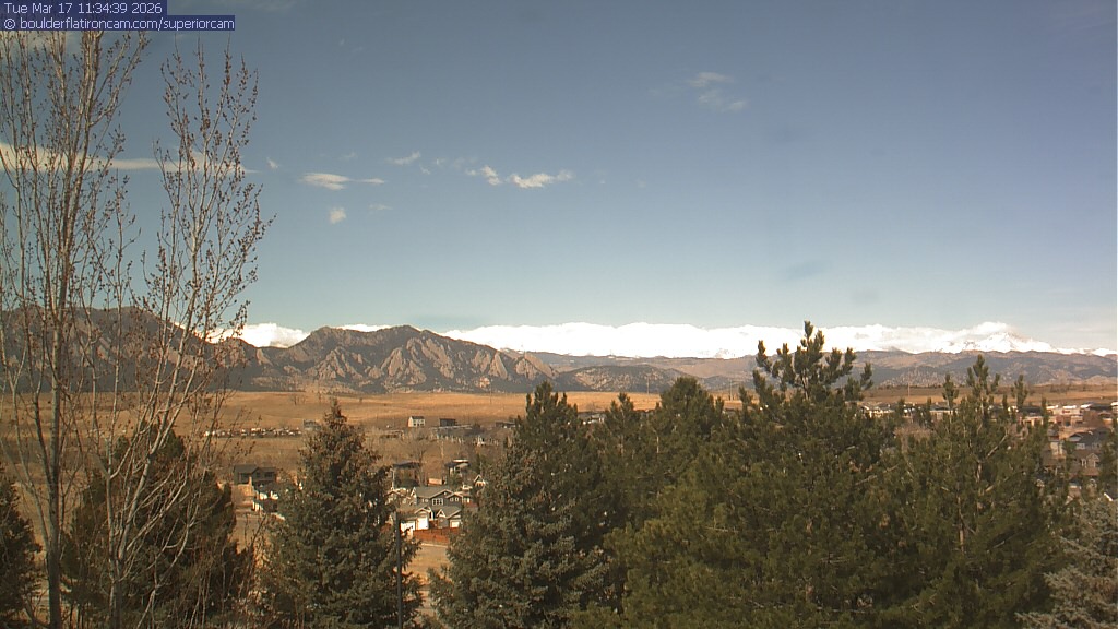 The Superior cam has a view to the northwest over Boulder, the Flatirons, Indian Peaks and Long’s Peak.   The Coal Creek trail is visible in the foreground with old town Superior.