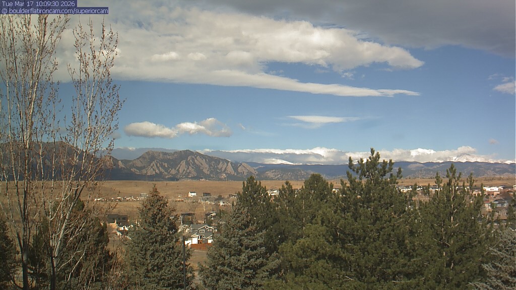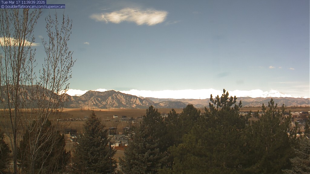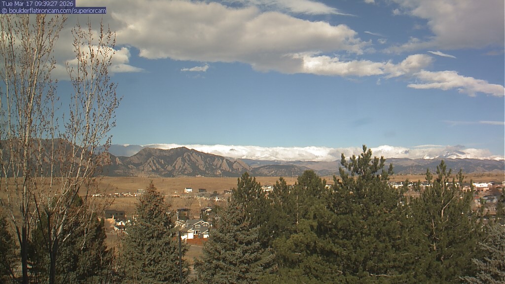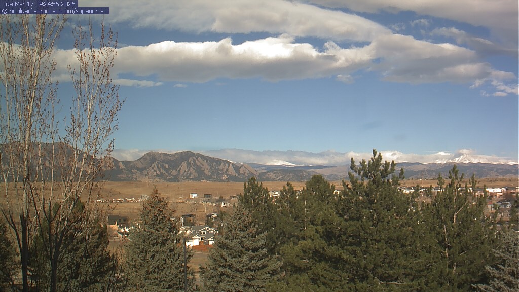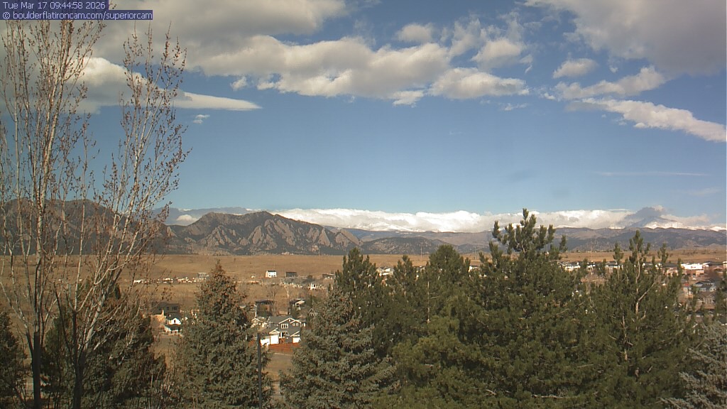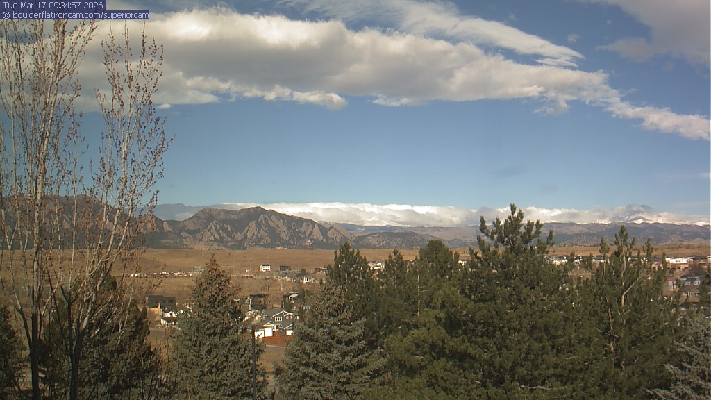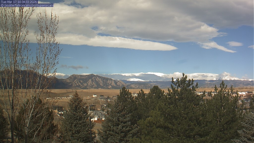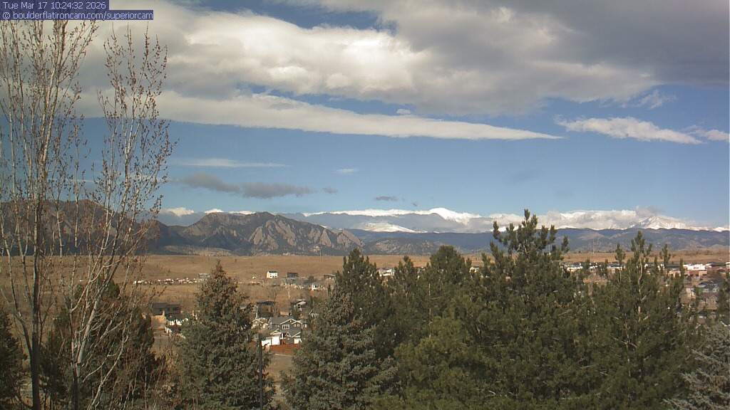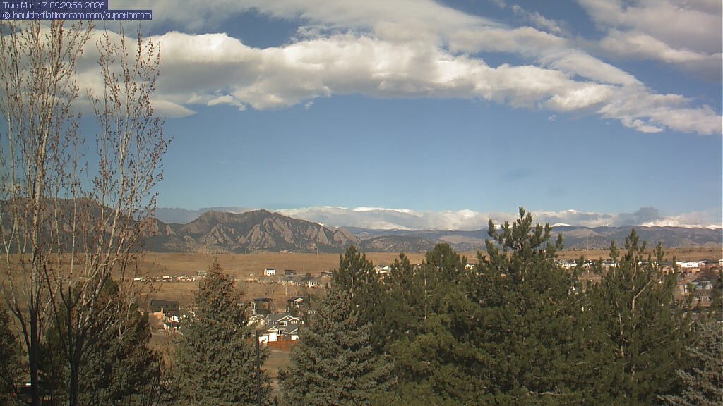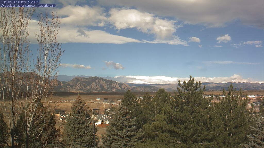 The Superior cam has a view to the northwest over Boulder, the Flatirons, Indian Peaks and Long’s Peak.   The Coal Creek trail is visible in the foreground with old town Superior.