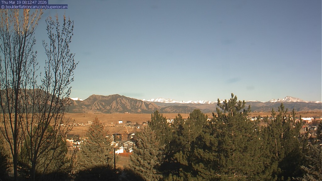 The Superior cam has a view to the northwest over Boulder, the Flatirons, Indian Peaks and Long’s Peak.   The Coal Creek trail is visible in the foreground with old town Superior.