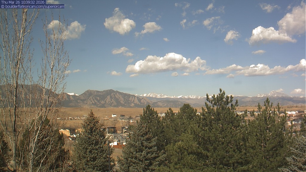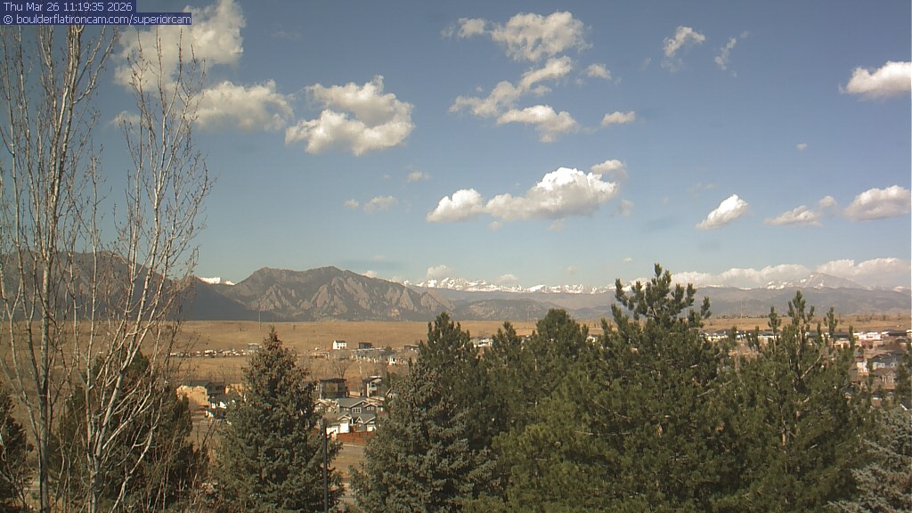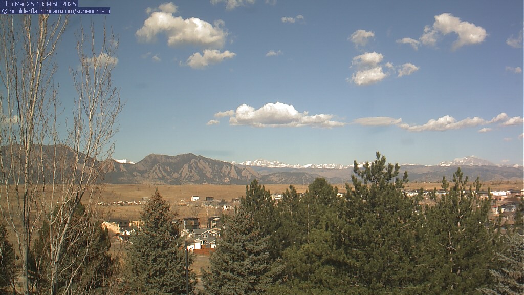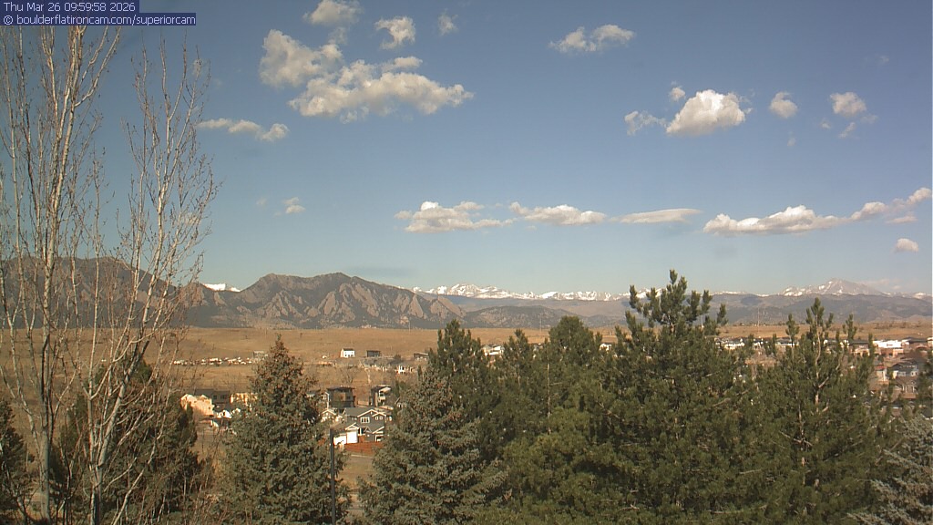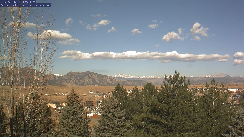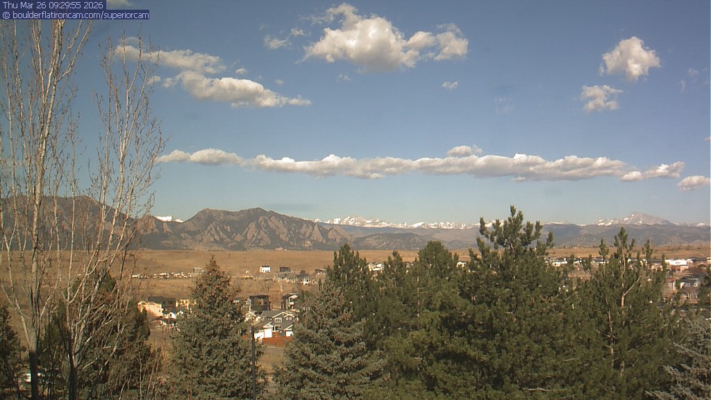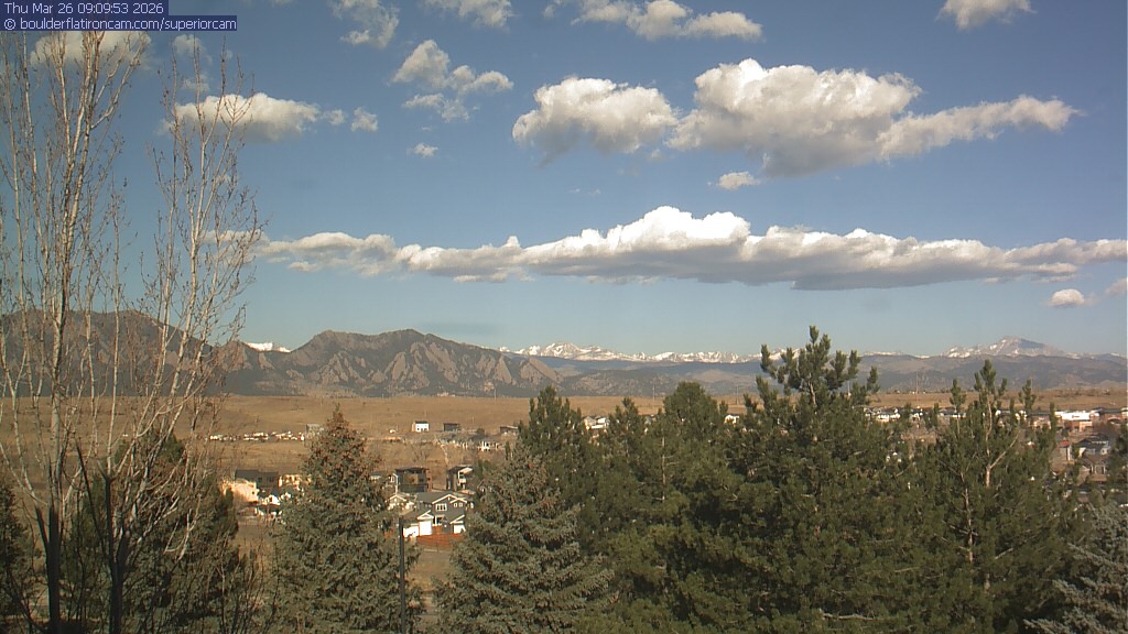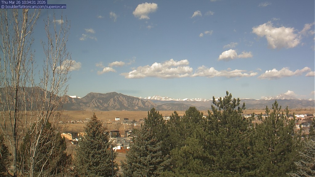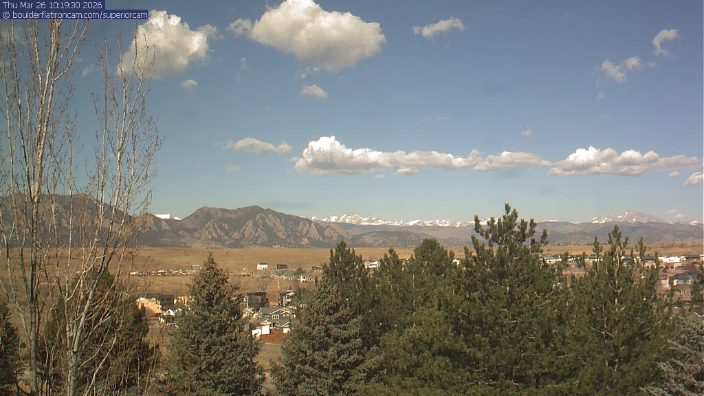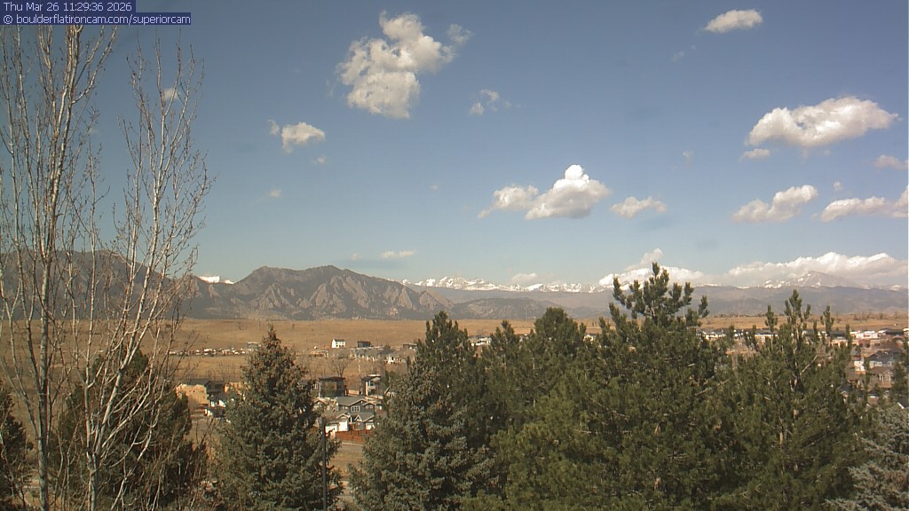The Superior cam has a view to the northwest over Boulder, the Flatirons, Indian Peaks and Long’s Peak.   The Coal Creek trail is visible in the foreground with old town Superior.