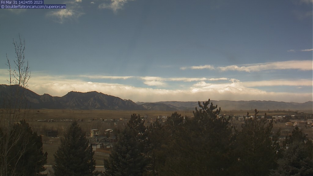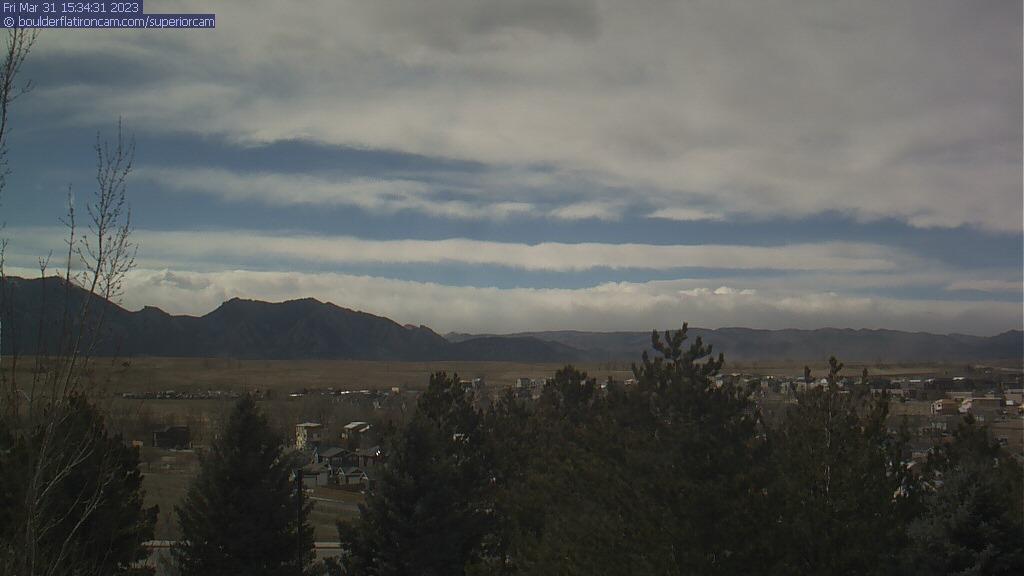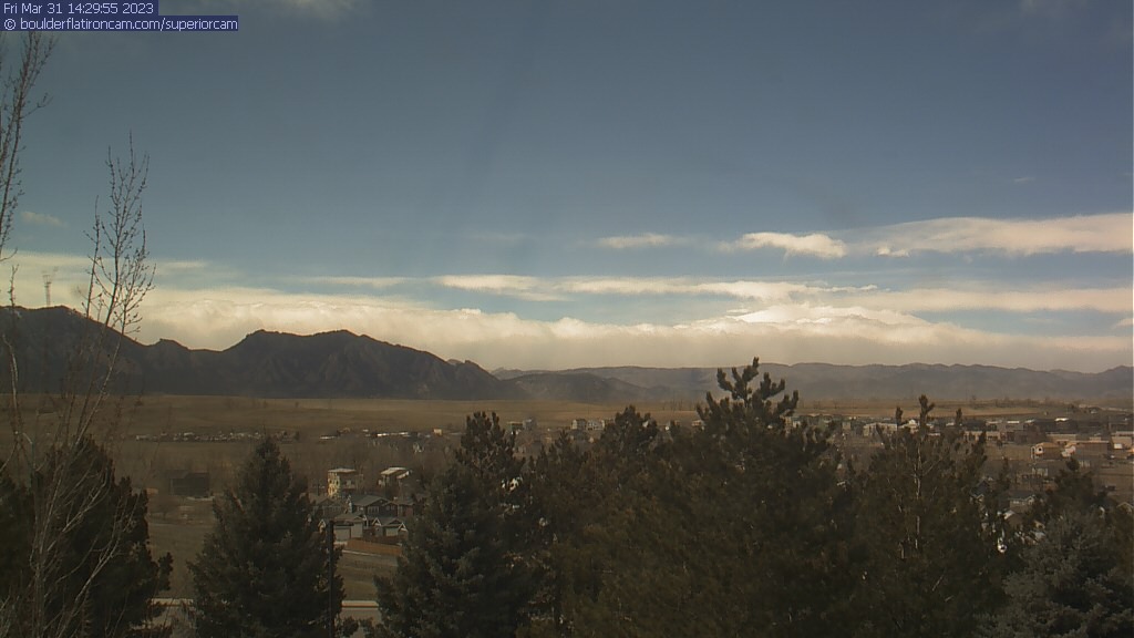 The Superior cam has a great view to the northwest over Boulder, the Flatirons, Indian Peaks and Long’s Peak.   The Coal Creek trail is visible in the foreground with old town Superior.  Thanks to Aweida Venture Partners management for the great view.