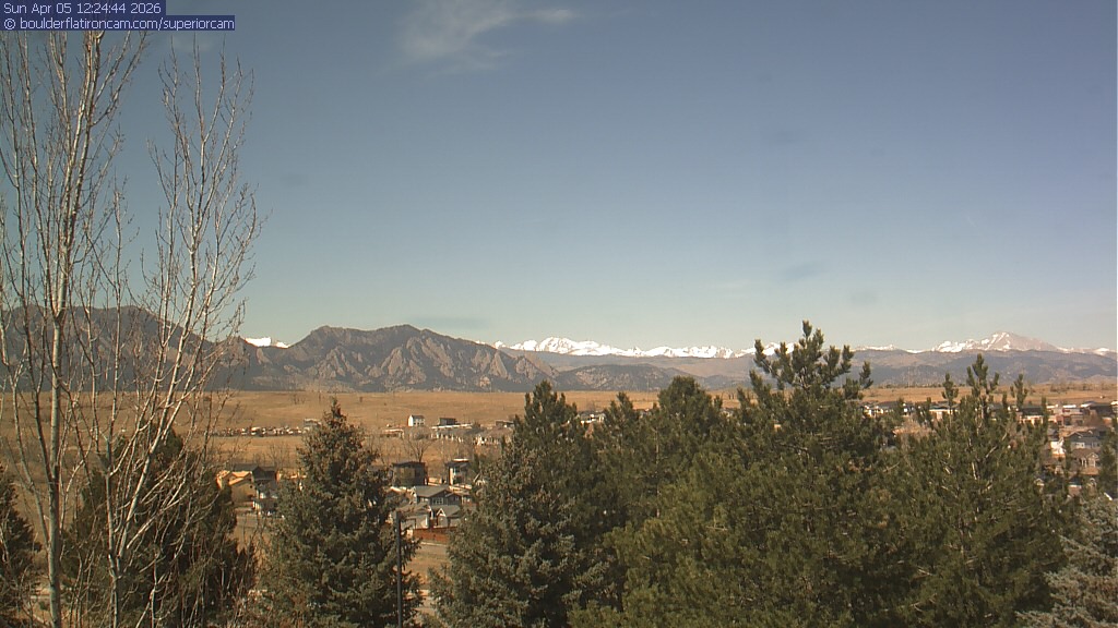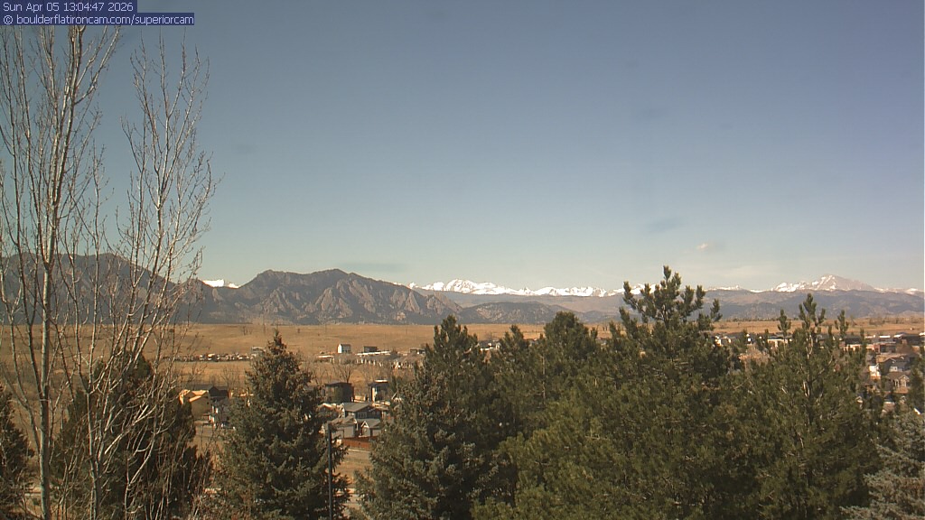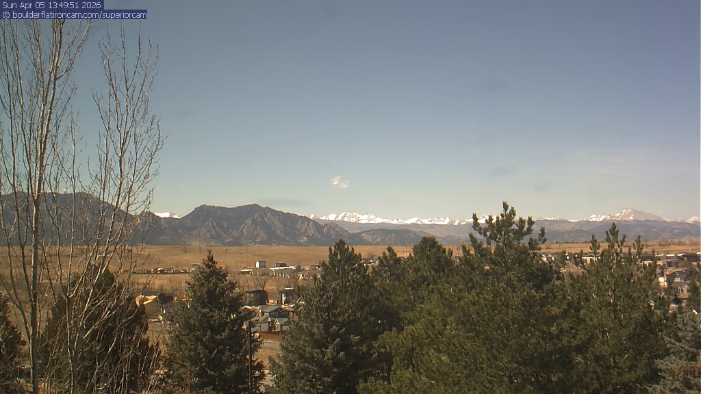The Superior cam has a view to the northwest over Boulder, the Flatirons, Indian Peaks and Long’s Peak.   The Coal Creek trail is visible in the foreground with old town Superior.