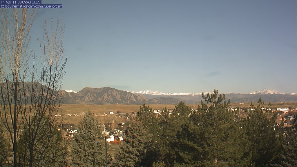The Superior cam has a great view to the northwest over Boulder, the Flatirons, Indian Peaks and Long’s Peak.   The Coal Creek trail is visible in the foreground with old town Superior.  Thanks to Aweida Venture Partners management for the great view.