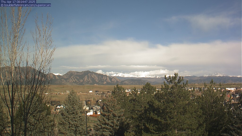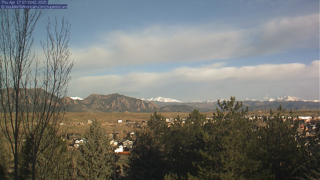 The Superior cam has a great view to the northwest over Boulder, the Flatirons, Indian Peaks and Long’s Peak.   The Coal Creek trail is visible in the foreground with old town Superior.  Thanks to Aweida Venture Partners management for the great view.