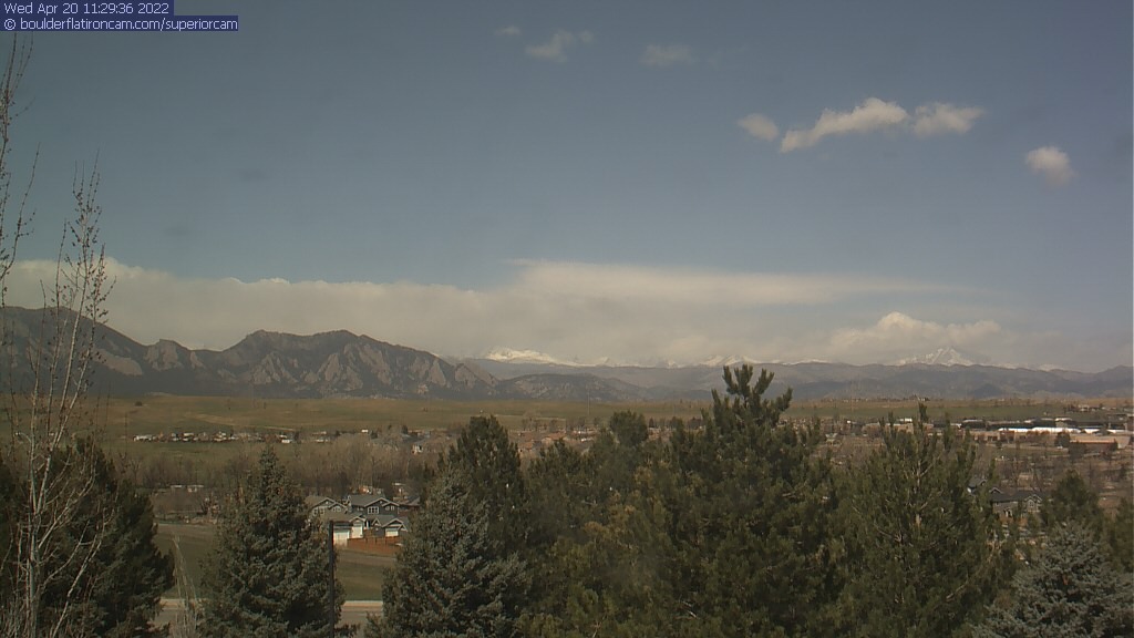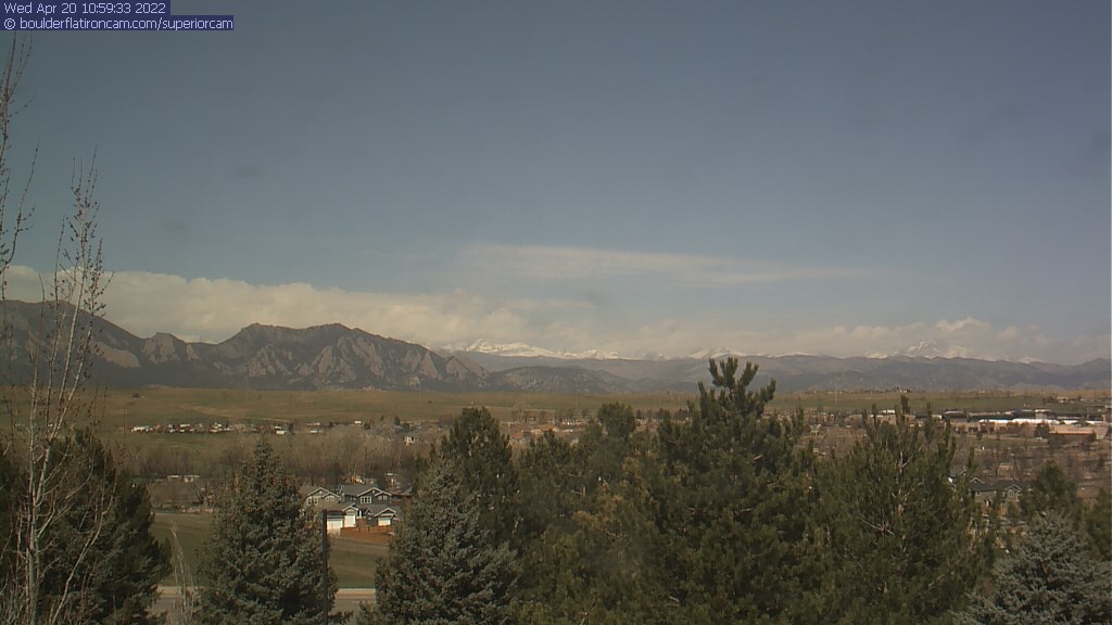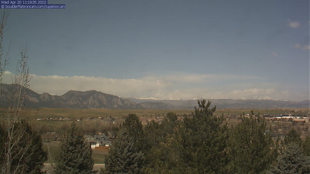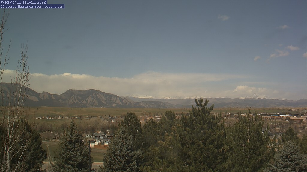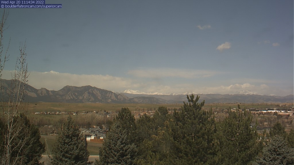 The Superior cam has a great view to the northwest over Boulder, the Flatirons, Indian Peaks and Long’s Peak.   The Coal Creek trail is visible in the foreground with old town Superior.  Thanks to Aweida Venture Partners management for the great view.