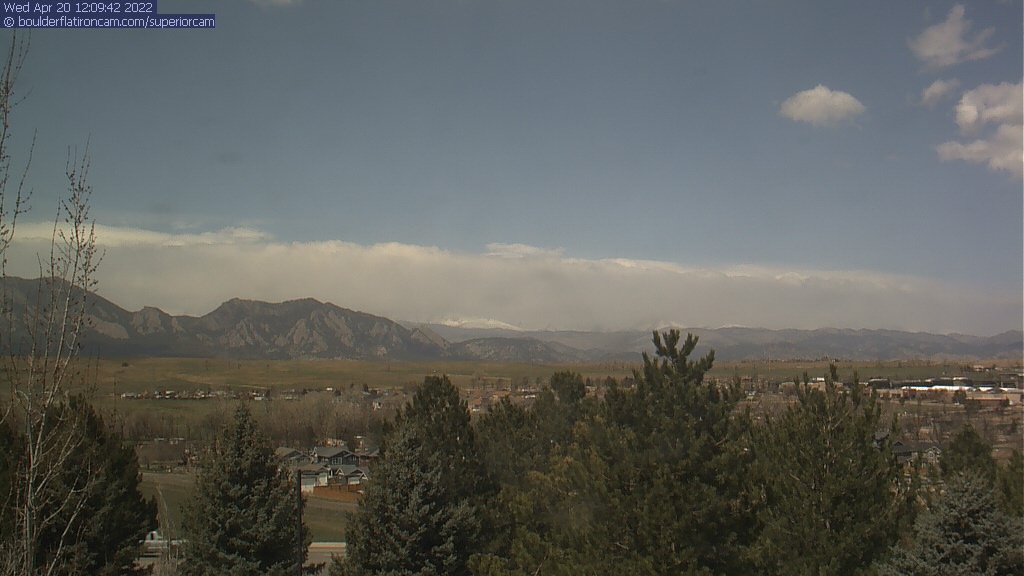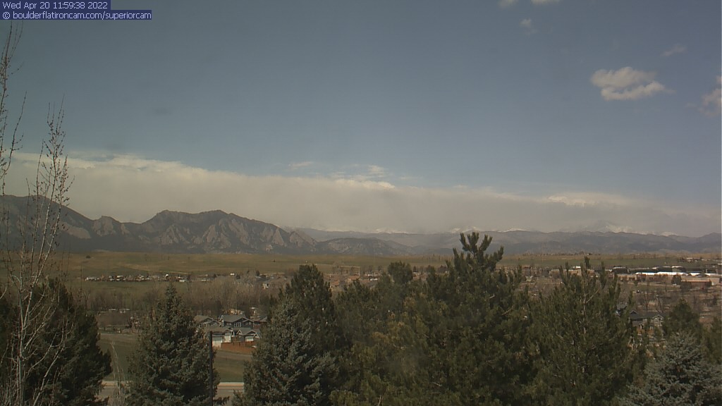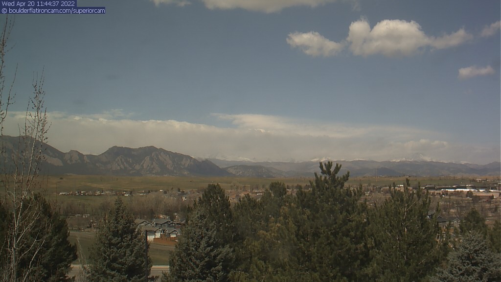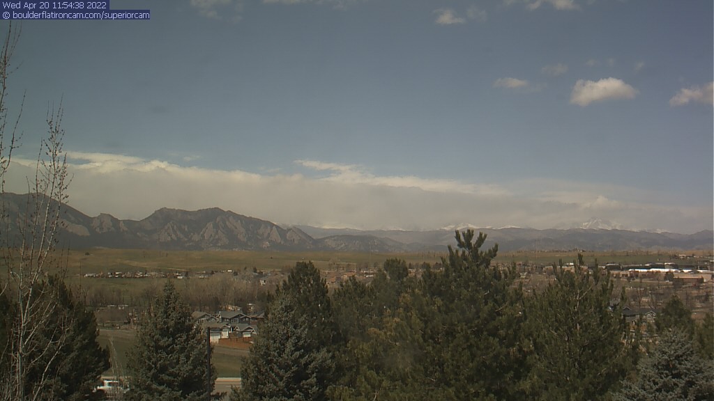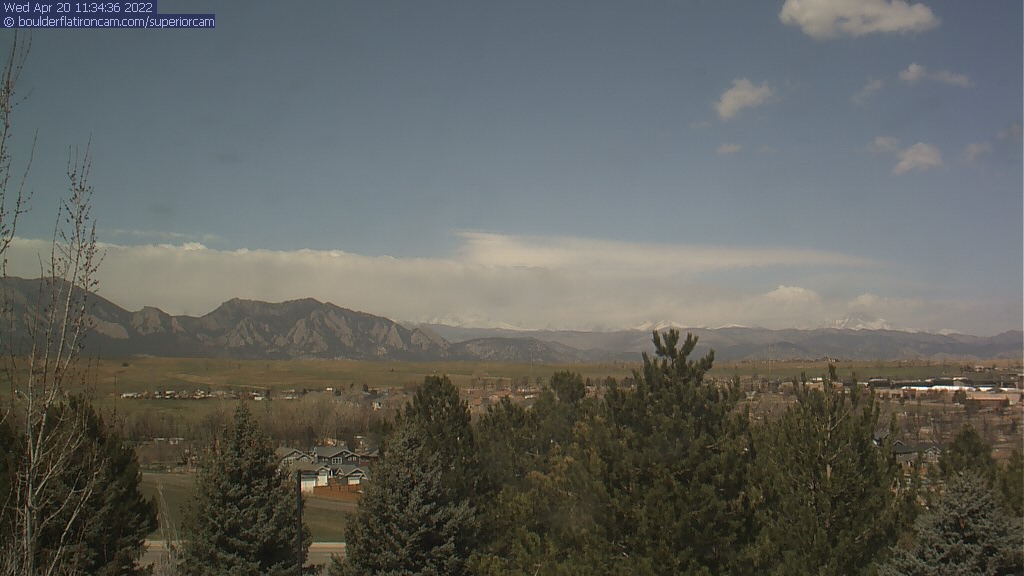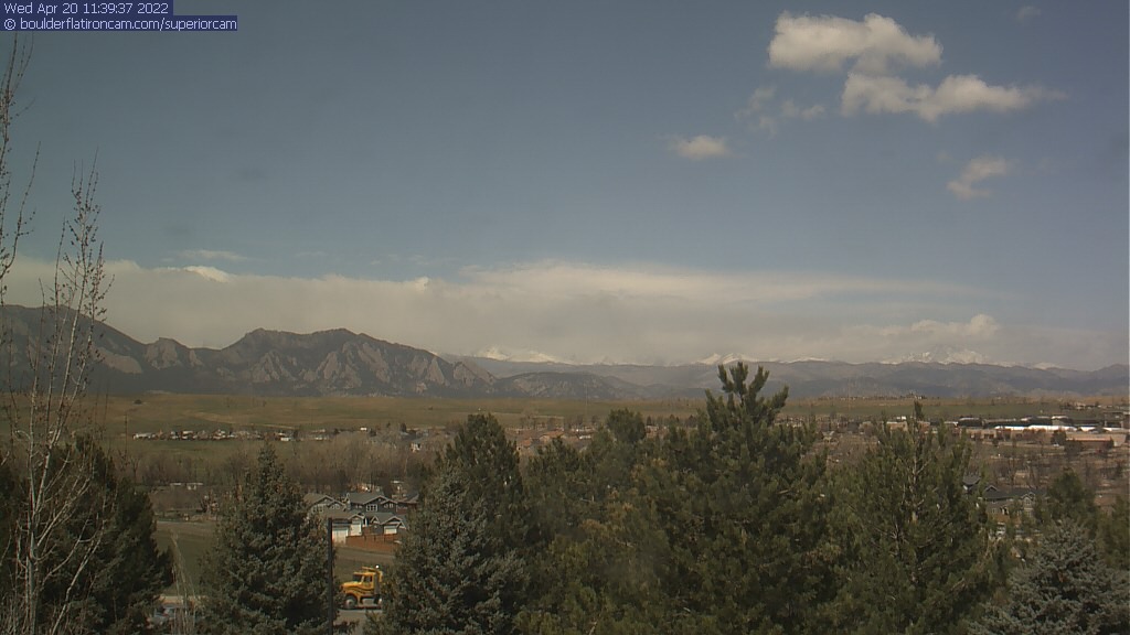 The Superior cam has a great view to the northwest over Boulder, the Flatirons, Indian Peaks and Long’s Peak.   The Coal Creek trail is visible in the foreground with old town Superior.  Thanks to Aweida Venture Partners management for the great view.