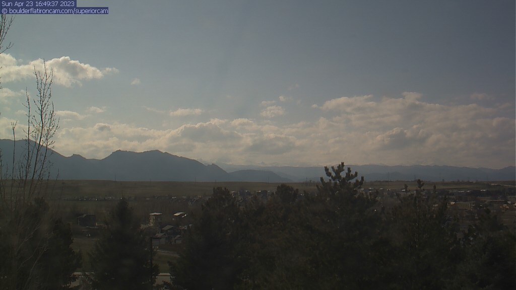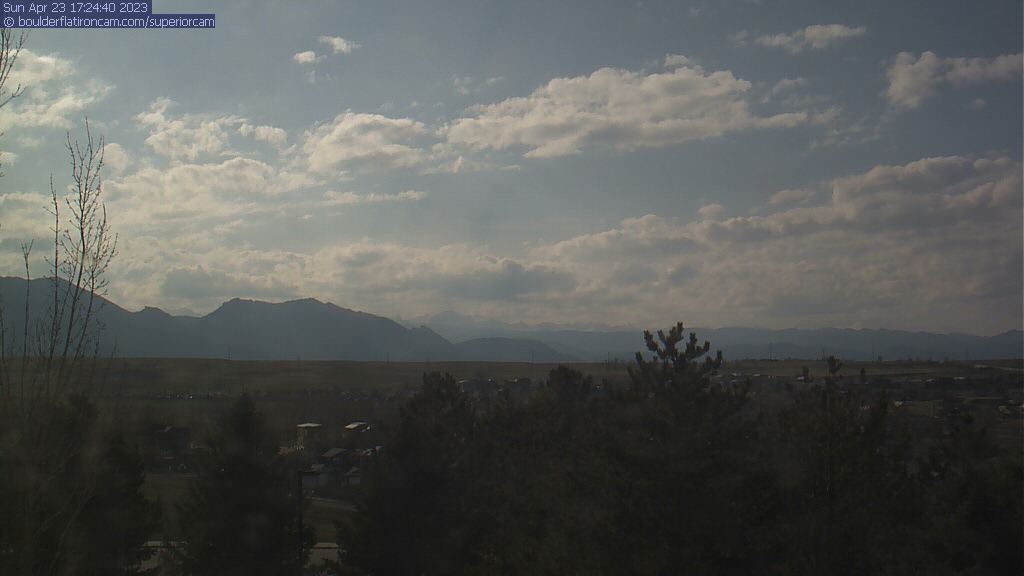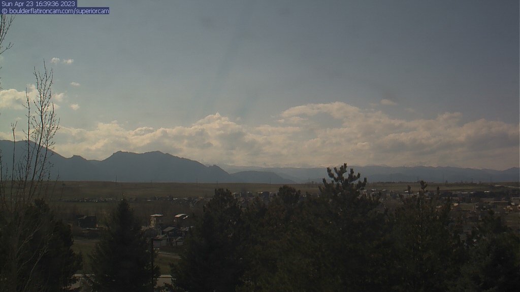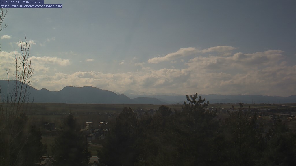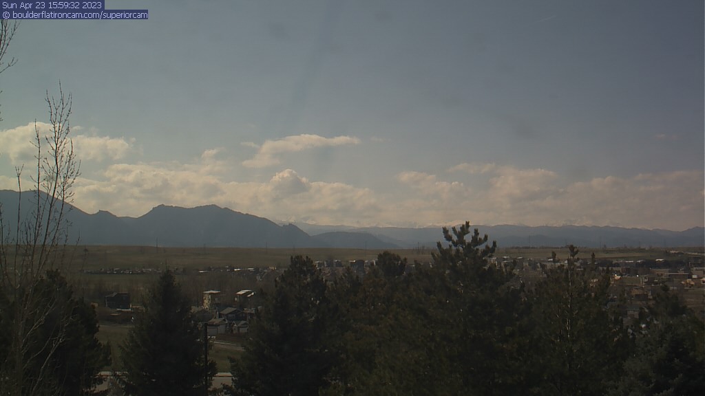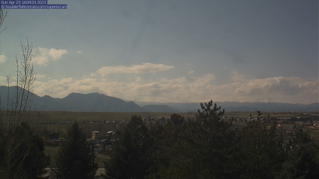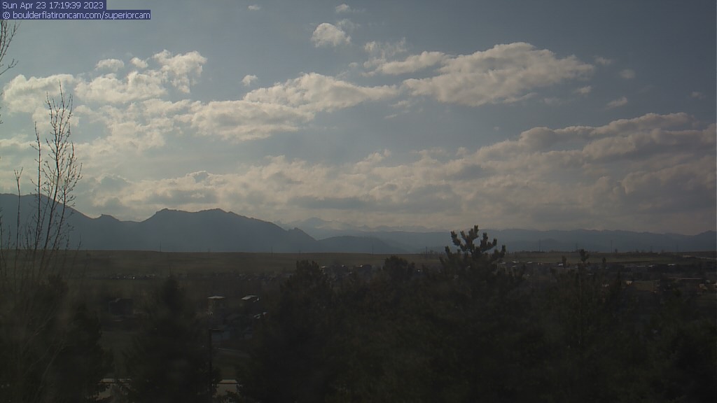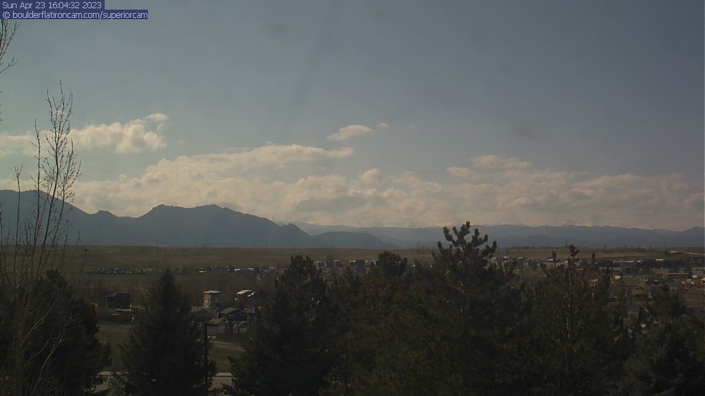 The Superior cam has a great view to the northwest over Boulder, the Flatirons, Indian Peaks and Long’s Peak.   The Coal Creek trail is visible in the foreground with old town Superior.  Thanks to Aweida Venture Partners management for the great view.