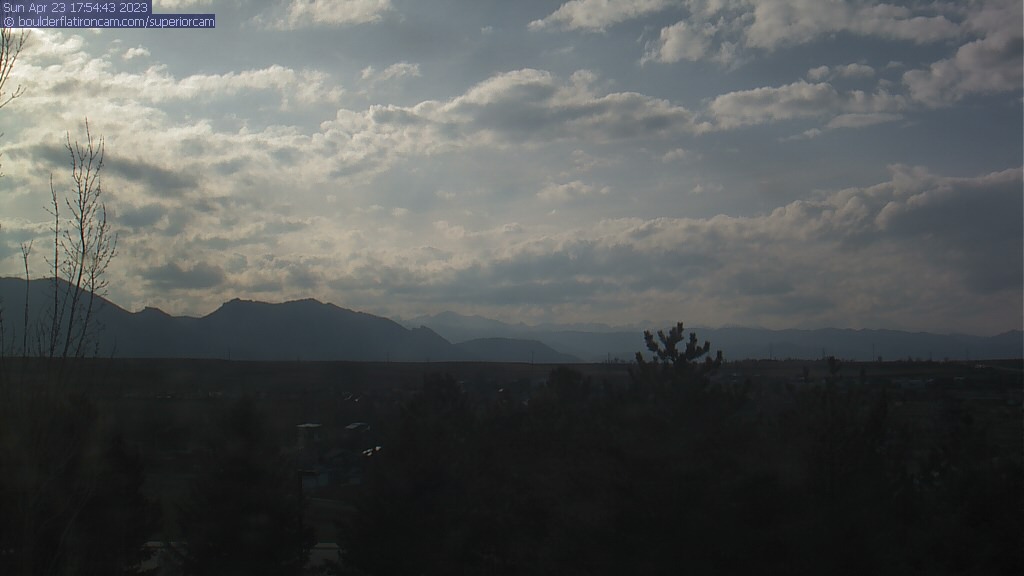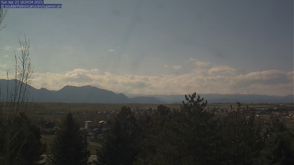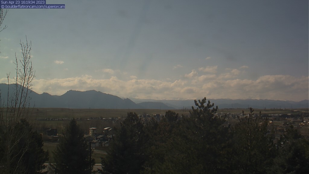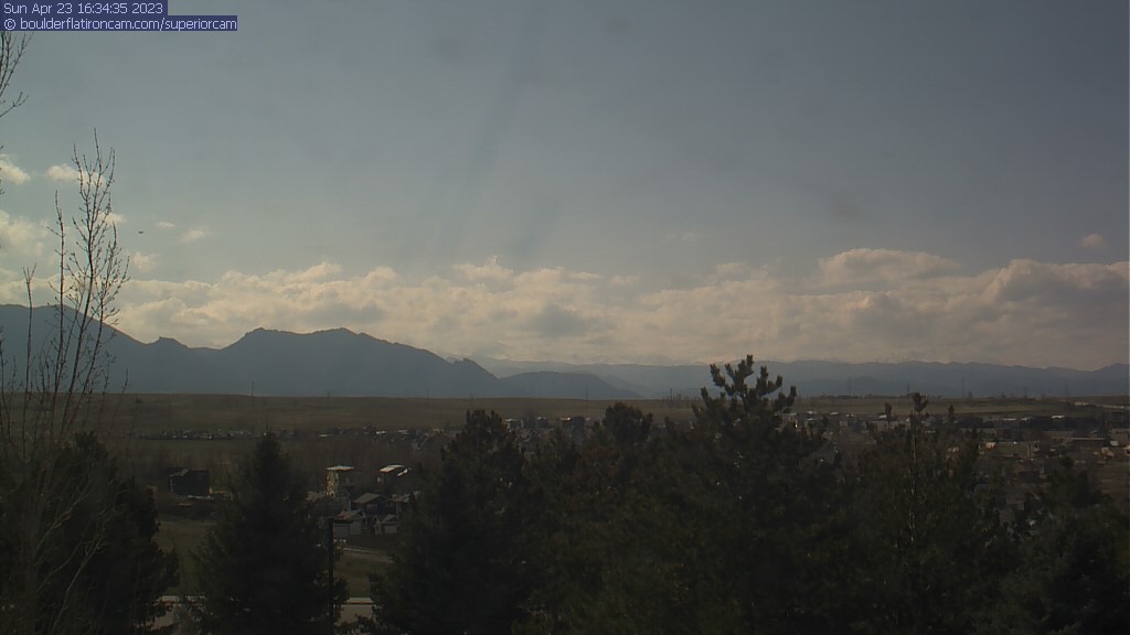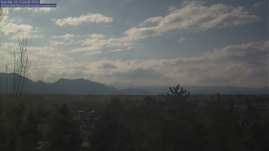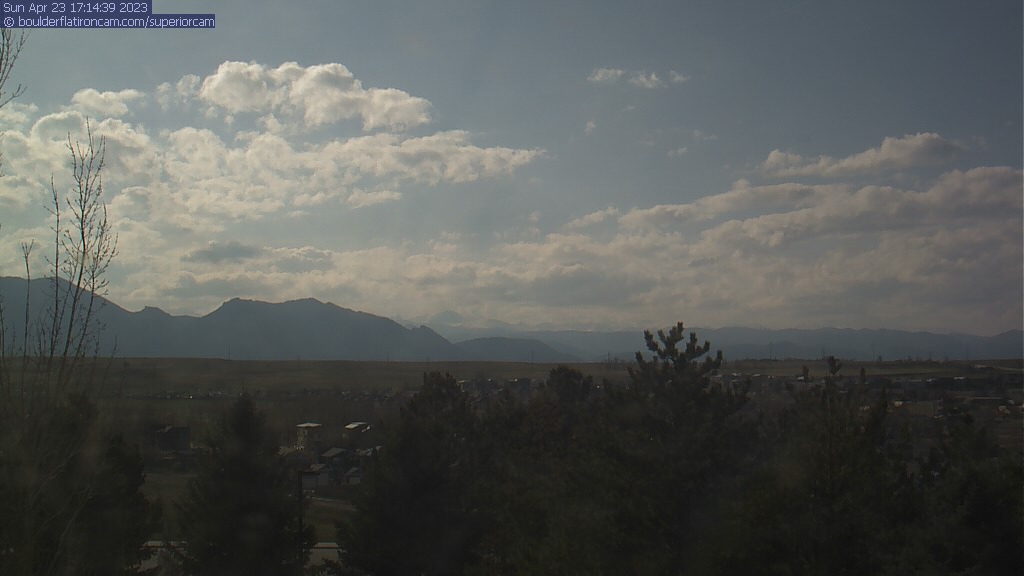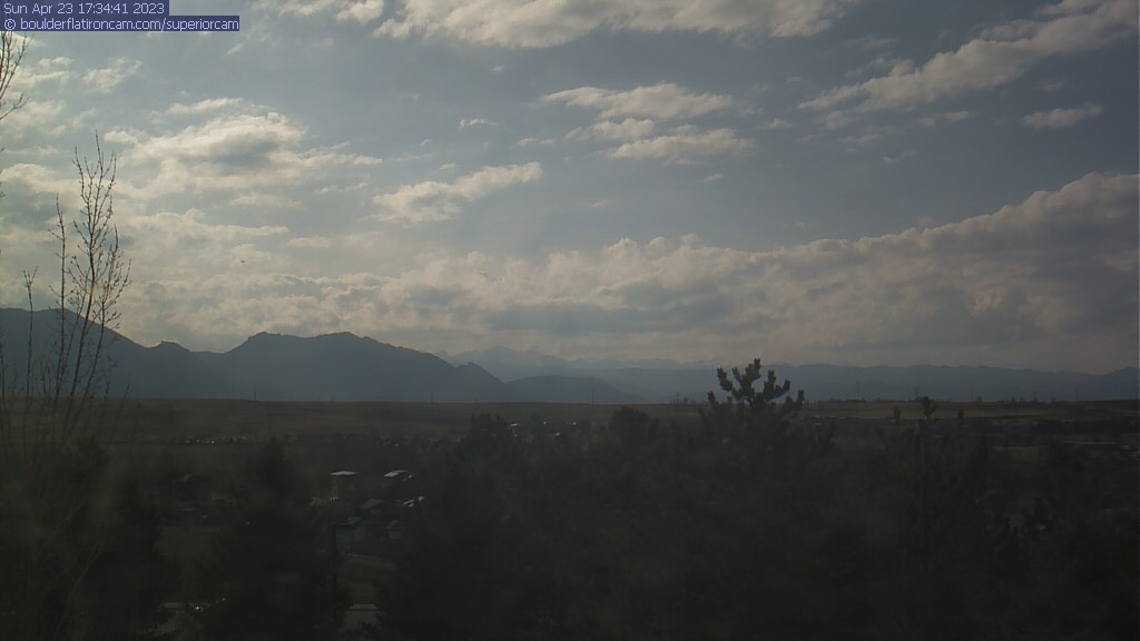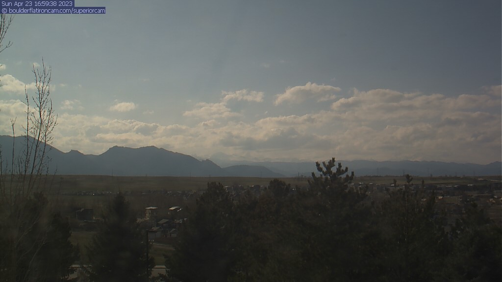 The Superior cam has a great view to the northwest over Boulder, the Flatirons, Indian Peaks and Long’s Peak.   The Coal Creek trail is visible in the foreground with old town Superior.  Thanks to Aweida Venture Partners management for the great view.
