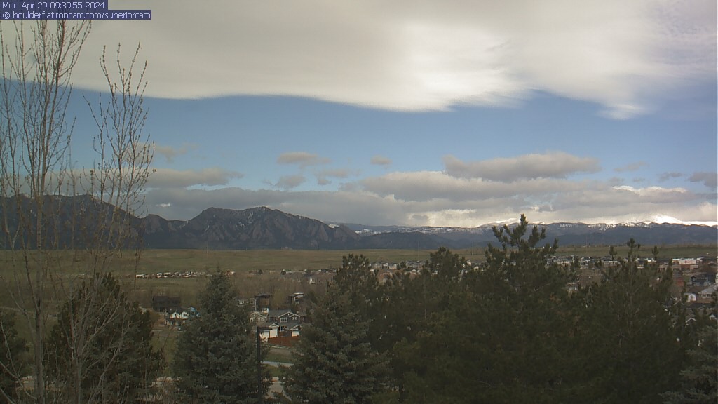 The Superior cam has a great view to the northwest over Boulder, the Flatirons, Indian Peaks and Long’s Peak.   The Coal Creek trail is visible in the foreground with old town Superior.  Thanks to Aweida Venture Partners management for the great view.