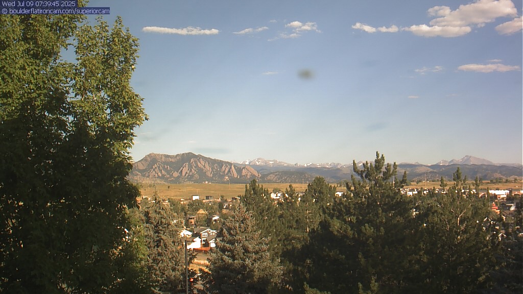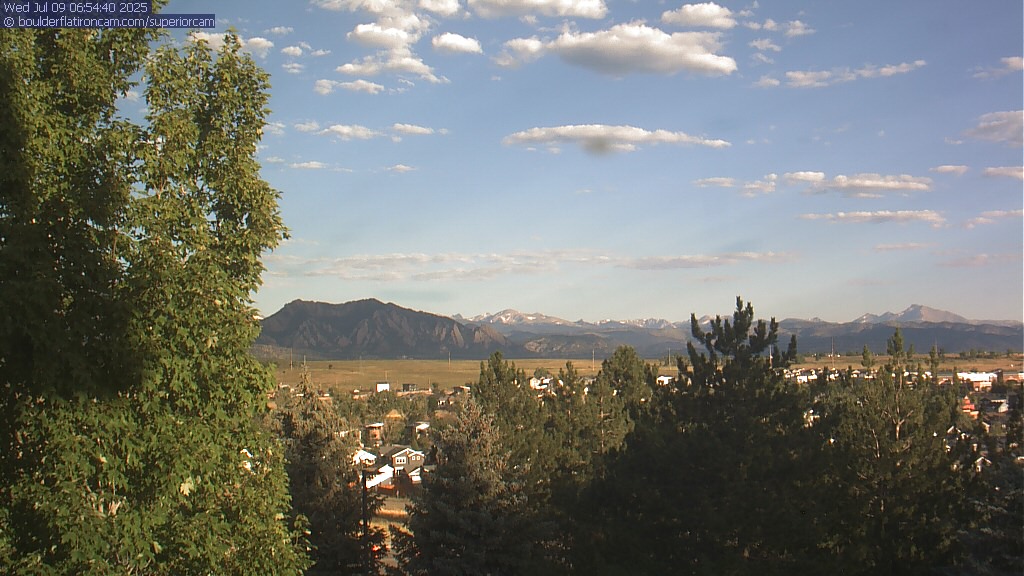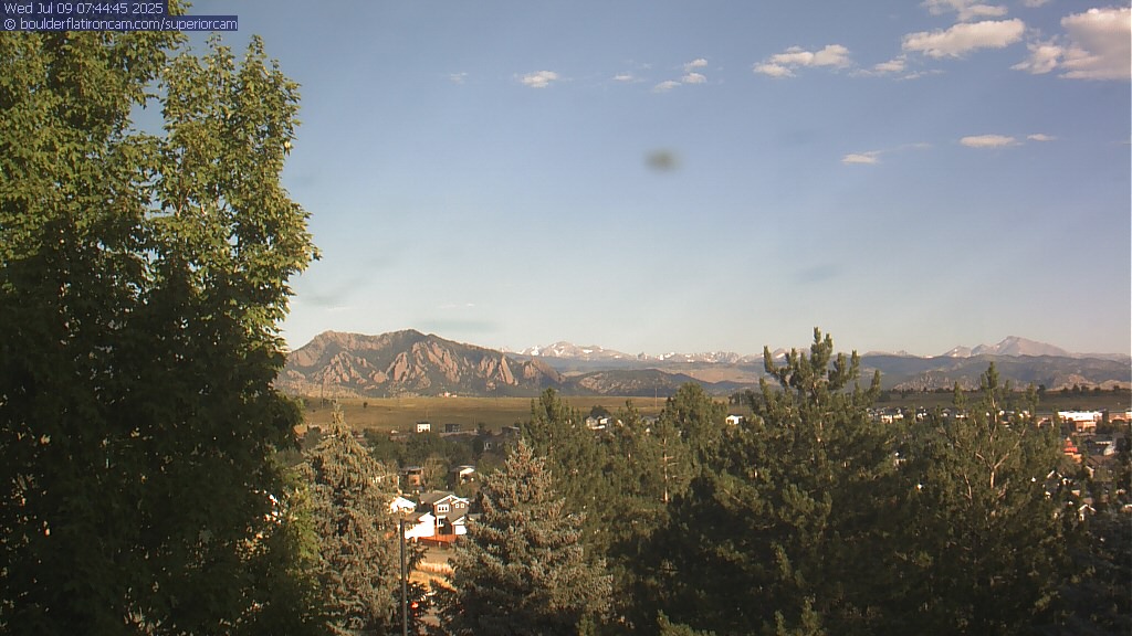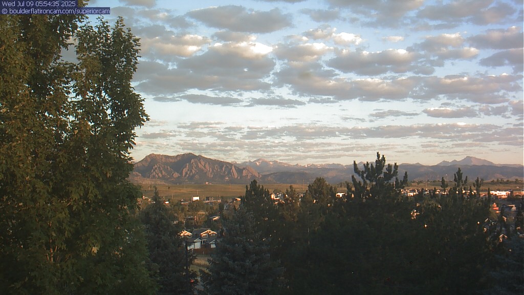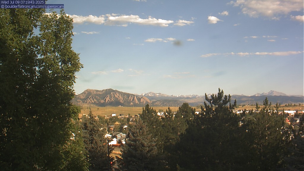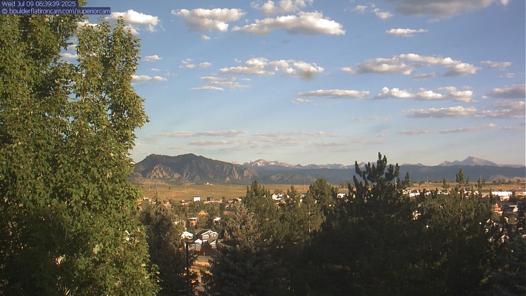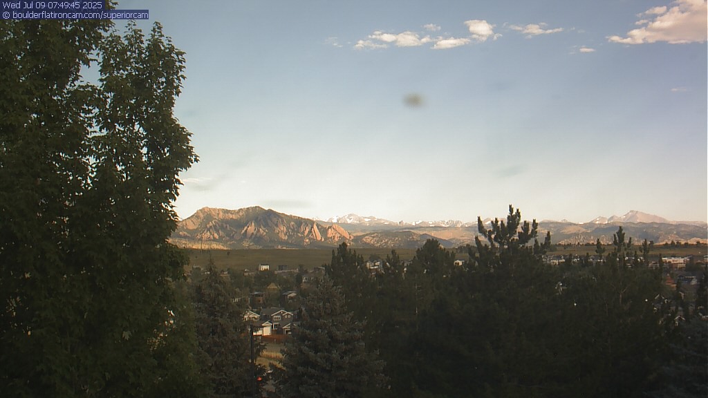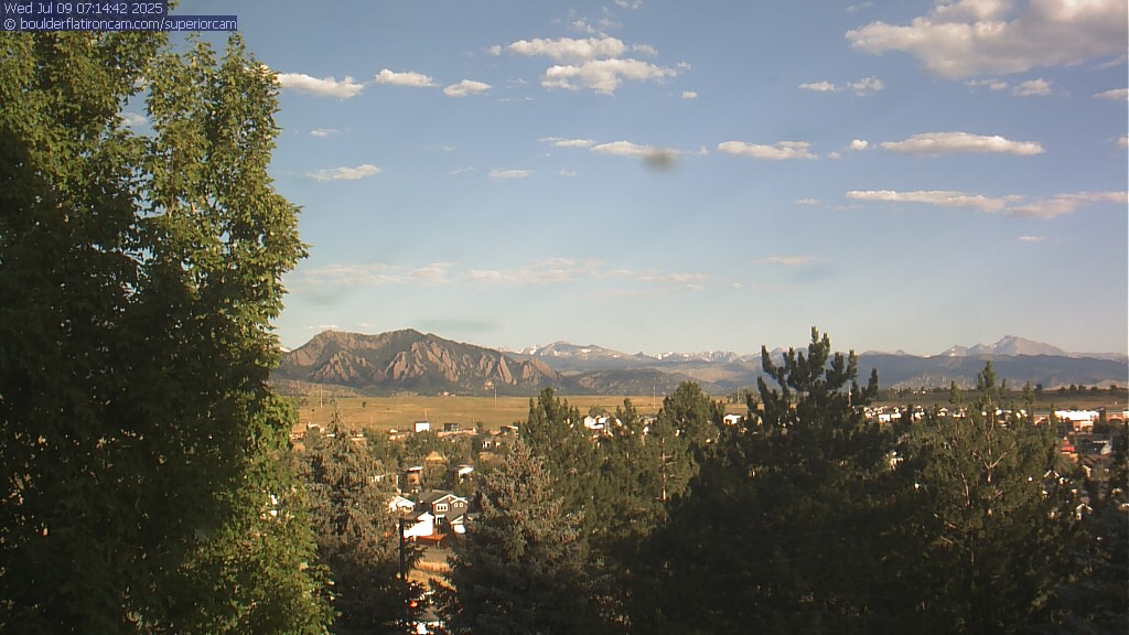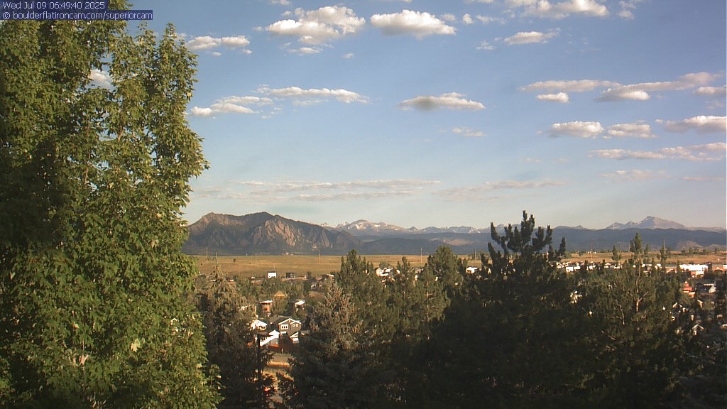 The Superior cam has a great view to the northwest over Boulder, the Flatirons, Indian Peaks and Long’s Peak.   The Coal Creek trail is visible in the foreground with old town Superior.  Thanks to Aweida Venture Partners management for the great view.