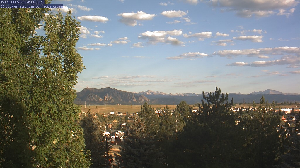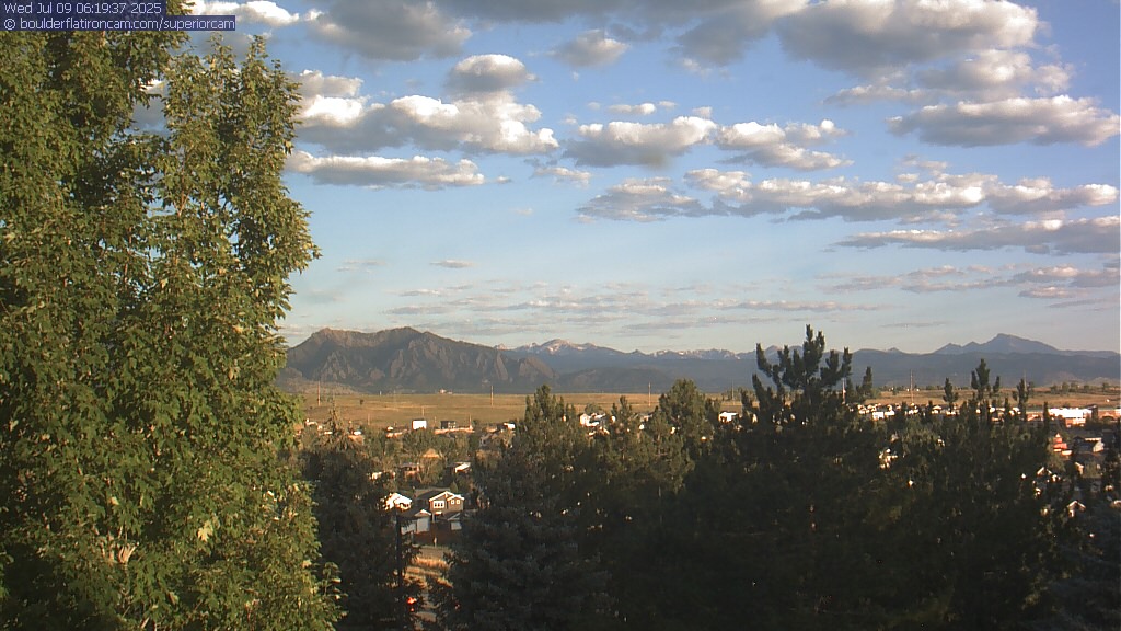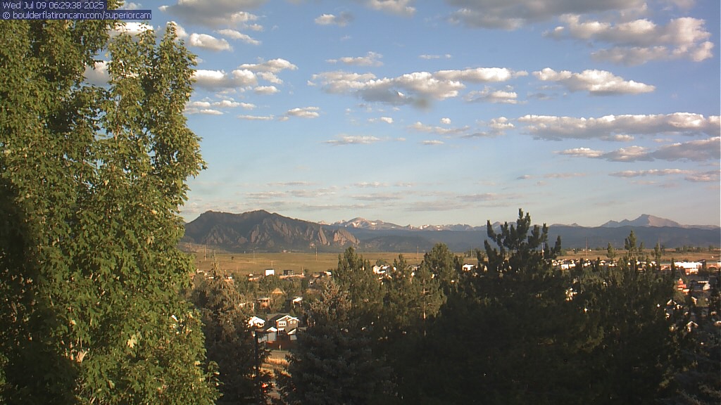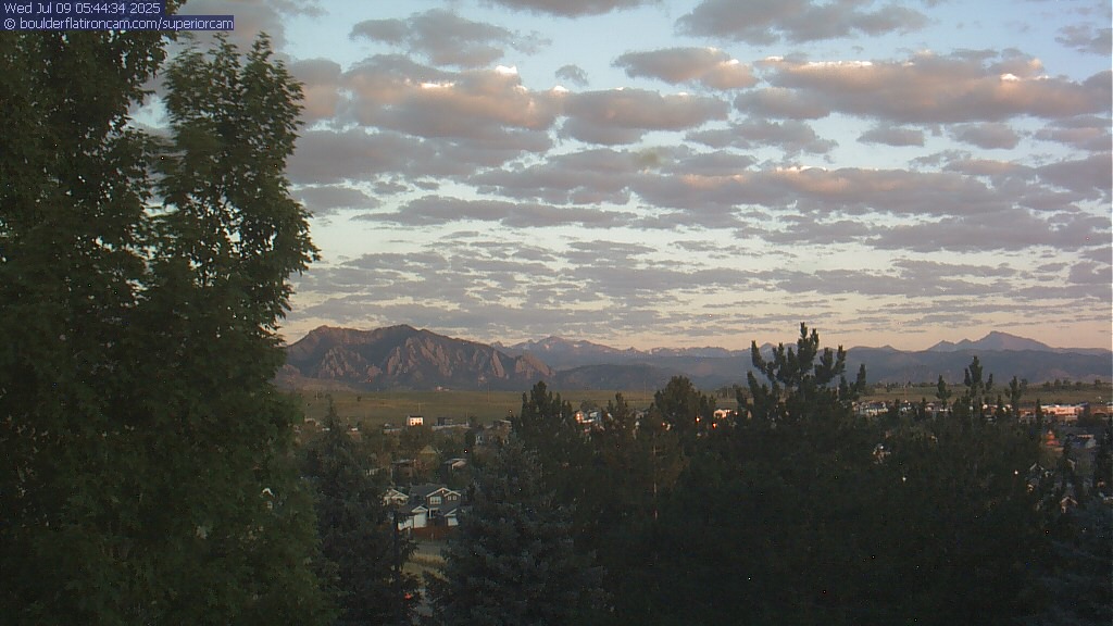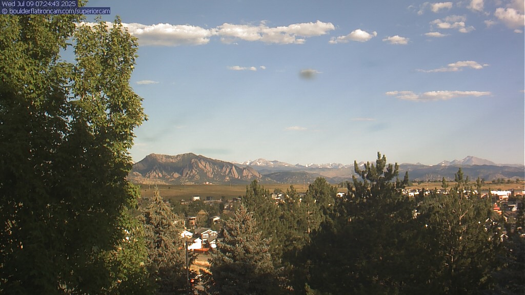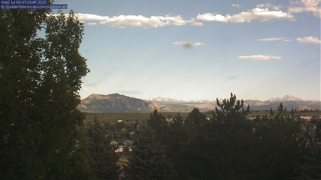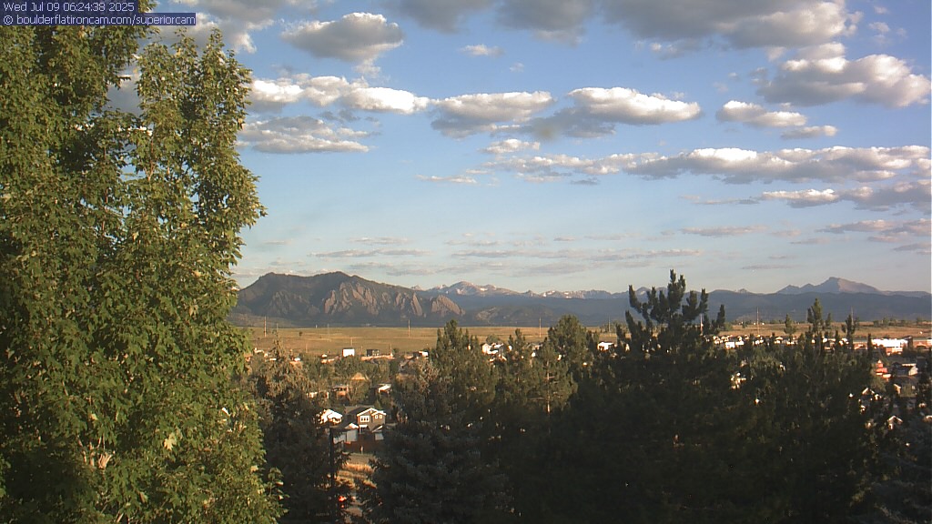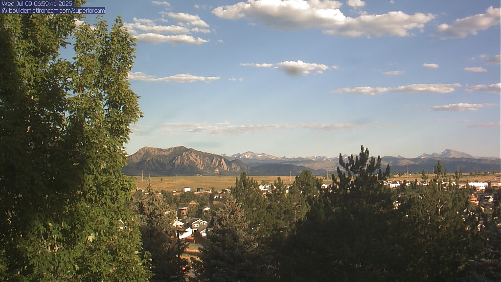 The Superior cam has a great view to the northwest over Boulder, the Flatirons, Indian Peaks and Long’s Peak.   The Coal Creek trail is visible in the foreground with old town Superior.  Thanks to Aweida Venture Partners management for the great view.