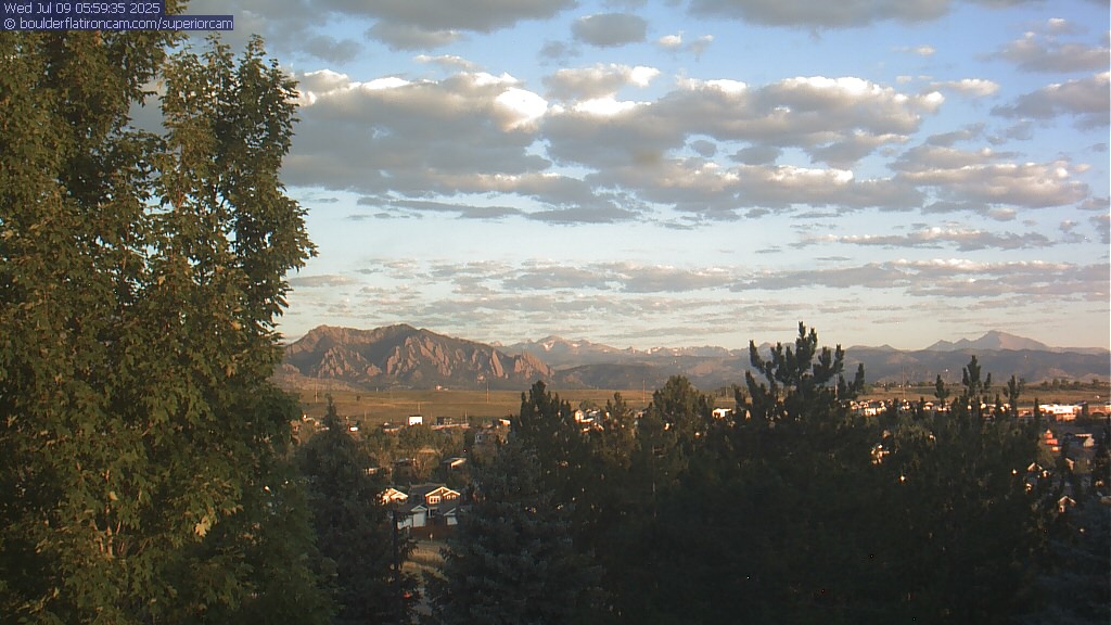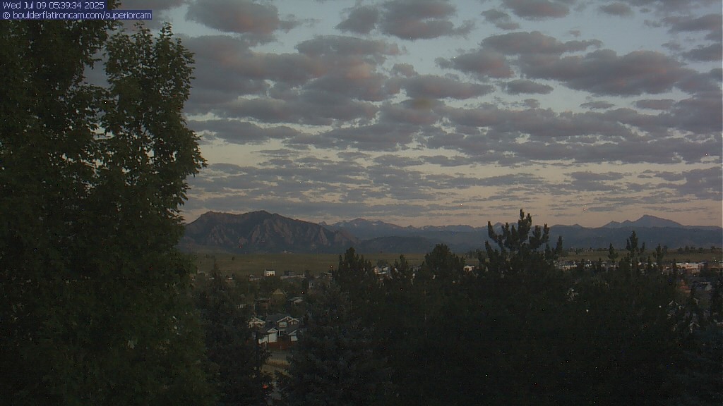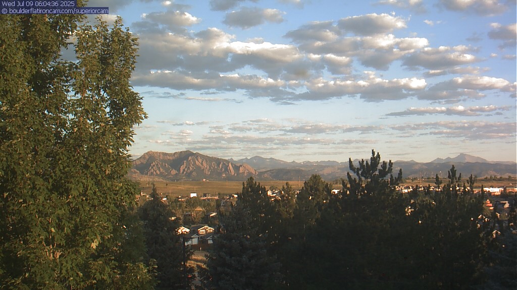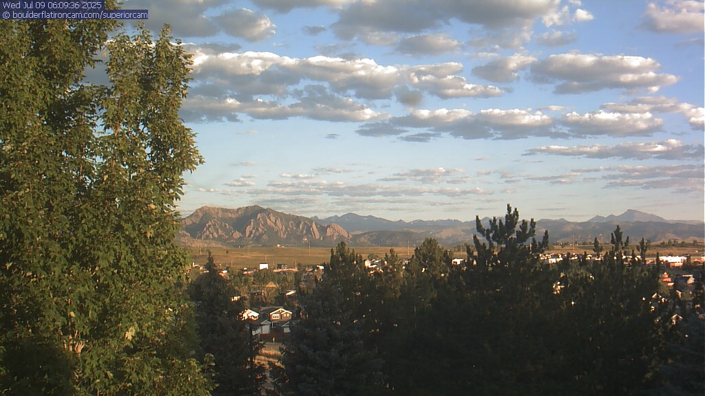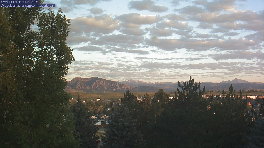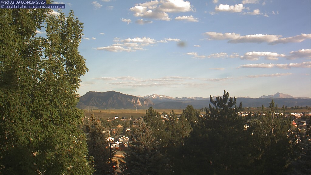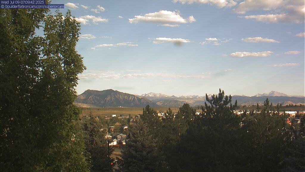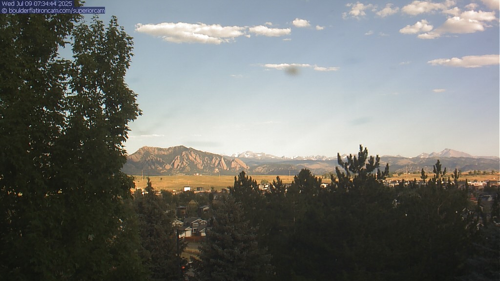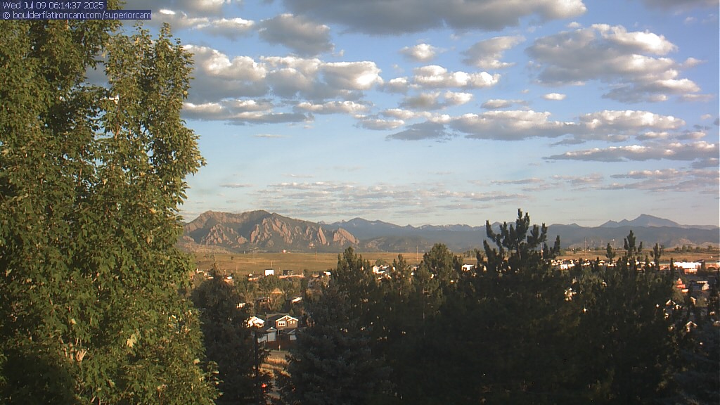 The Superior cam has a great view to the northwest over Boulder, the Flatirons, Indian Peaks and Long’s Peak.   The Coal Creek trail is visible in the foreground with old town Superior.  Thanks to Aweida Venture Partners management for the great view.