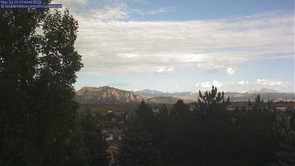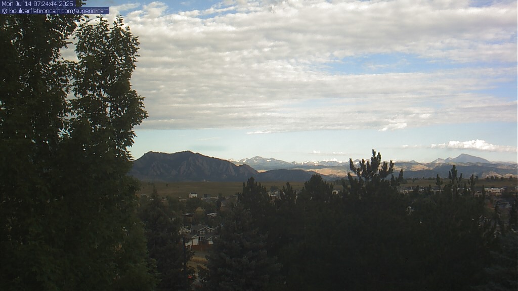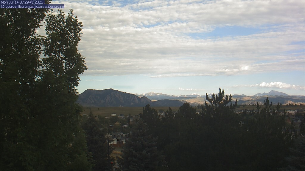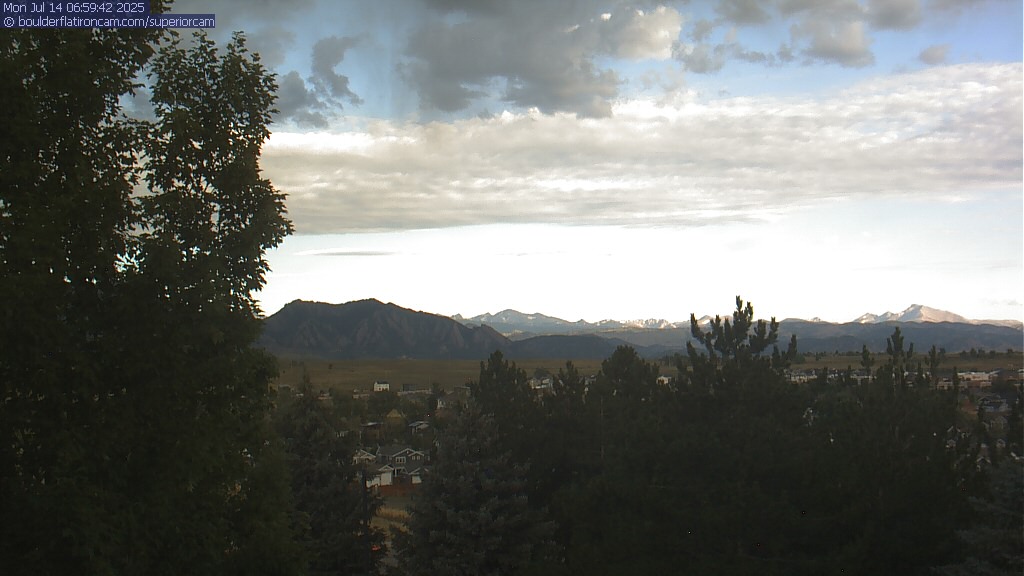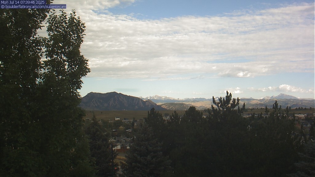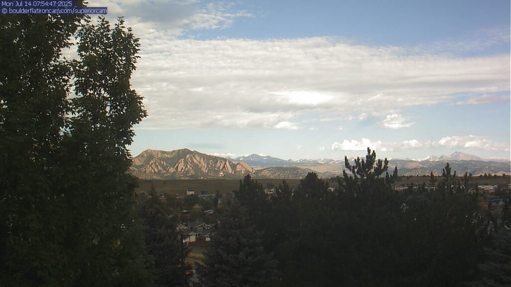 The Superior cam has a great view to the northwest over Boulder, the Flatirons, Indian Peaks and Long’s Peak.   The Coal Creek trail is visible in the foreground with old town Superior.  Thanks to Aweida Venture Partners management for the great view.
