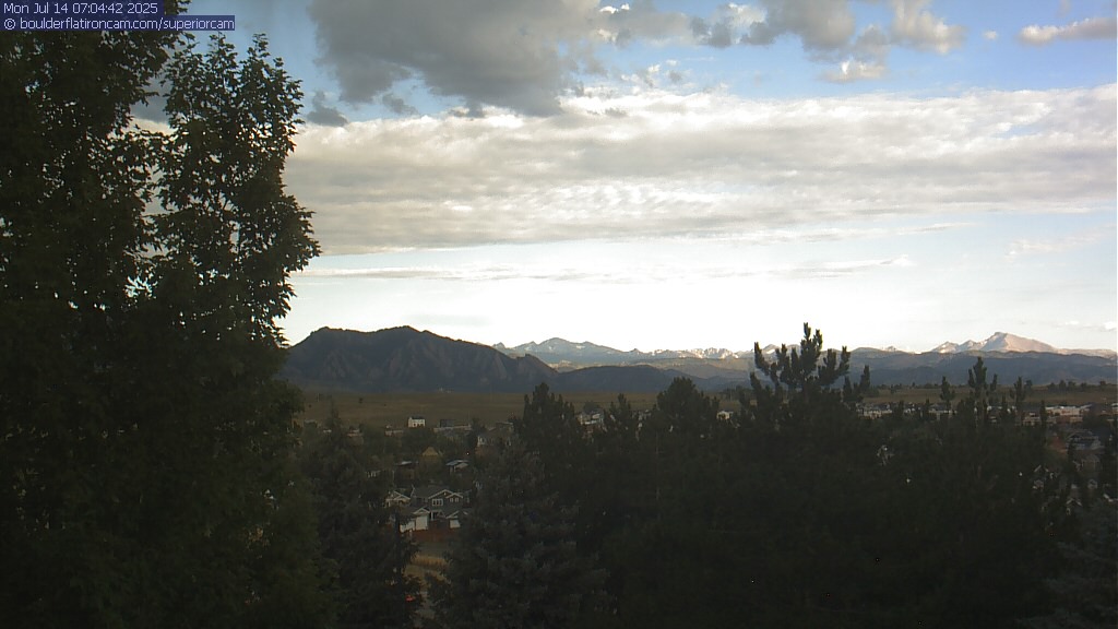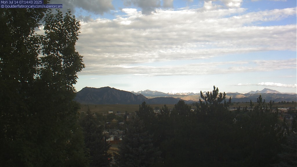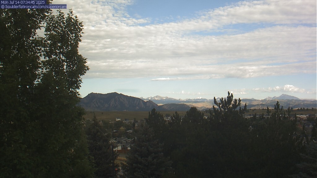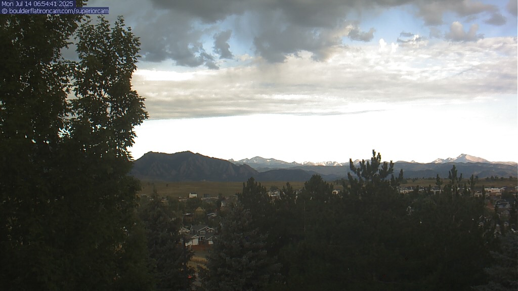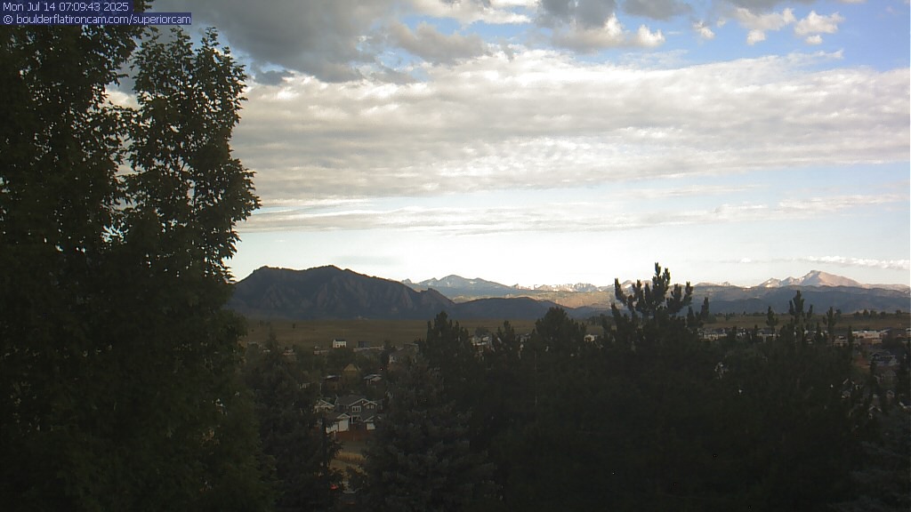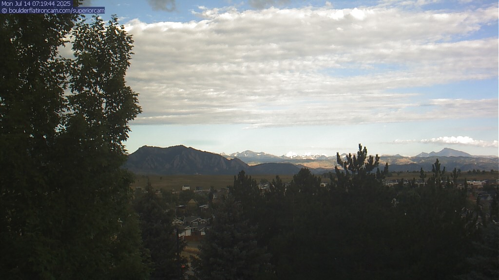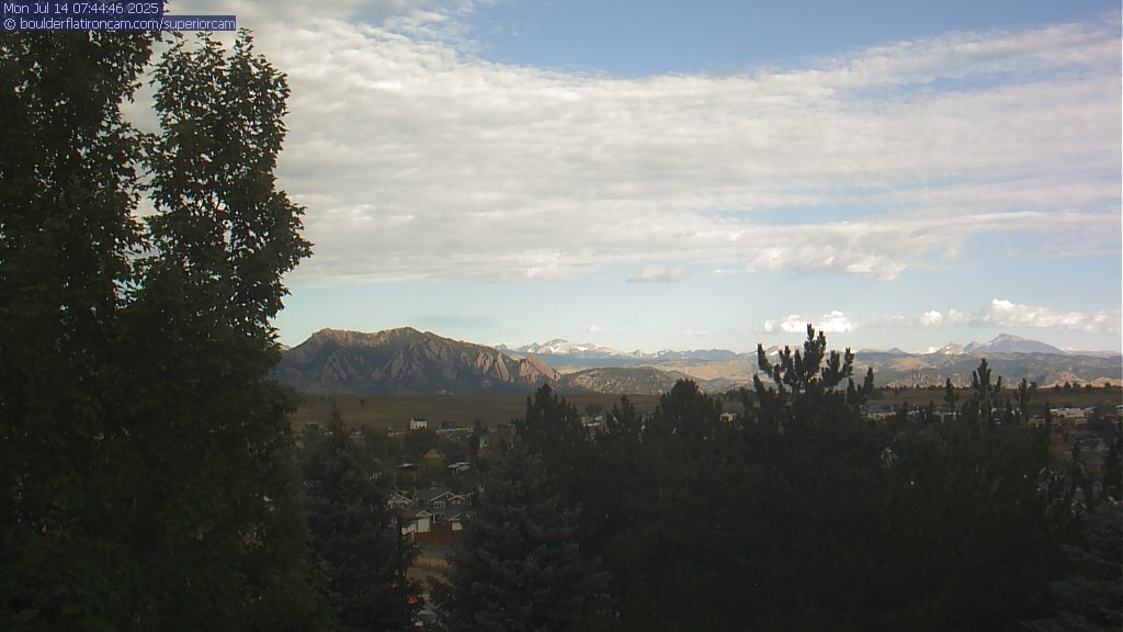 The Superior cam has a great view to the northwest over Boulder, the Flatirons, Indian Peaks and Long’s Peak.   The Coal Creek trail is visible in the foreground with old town Superior.  Thanks to Aweida Venture Partners management for the great view.