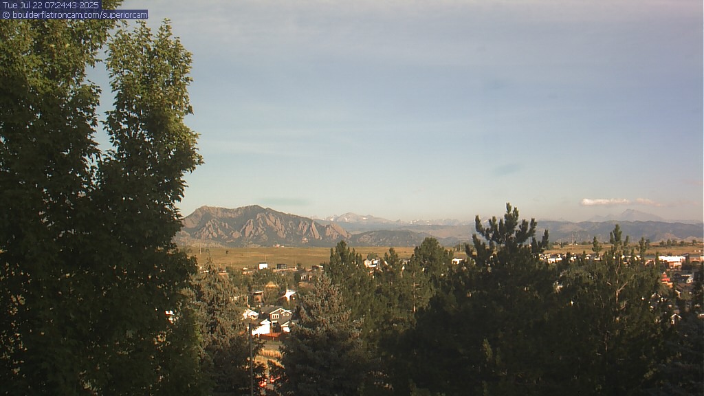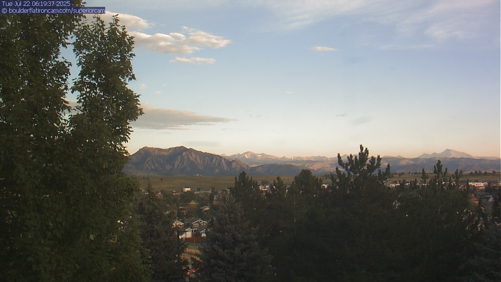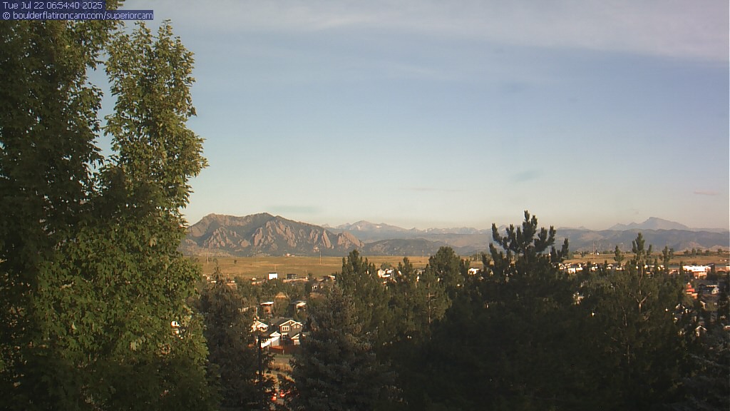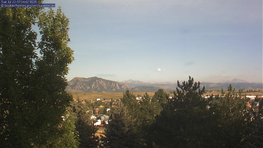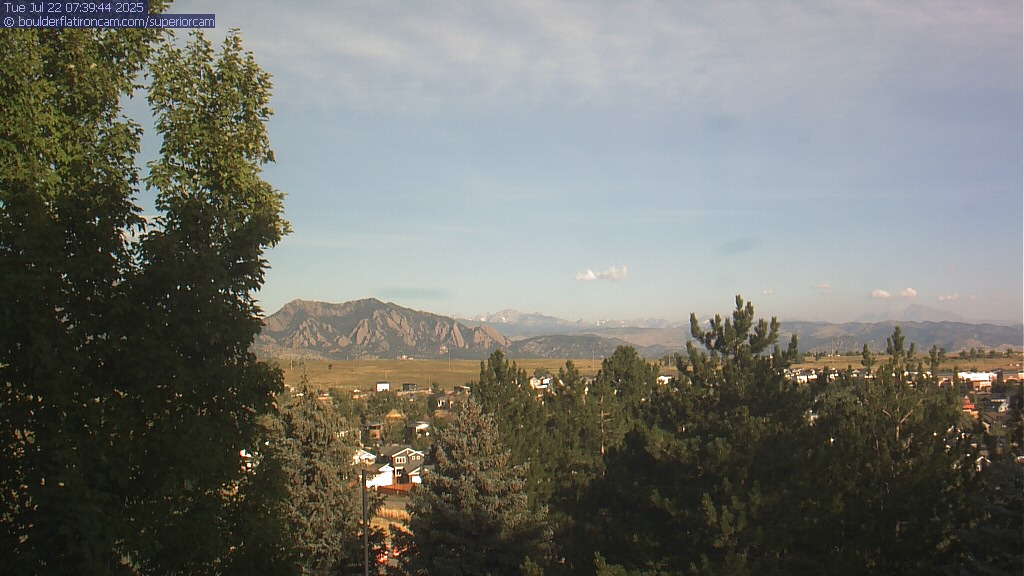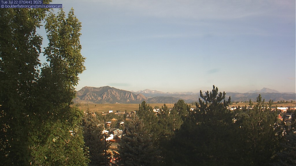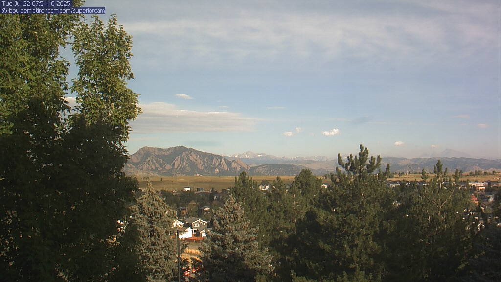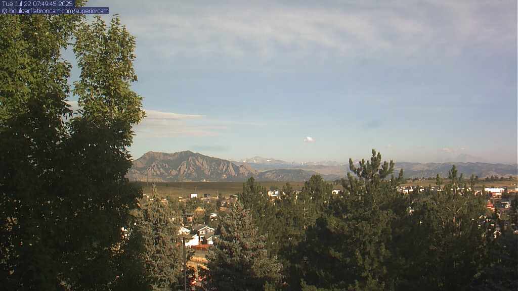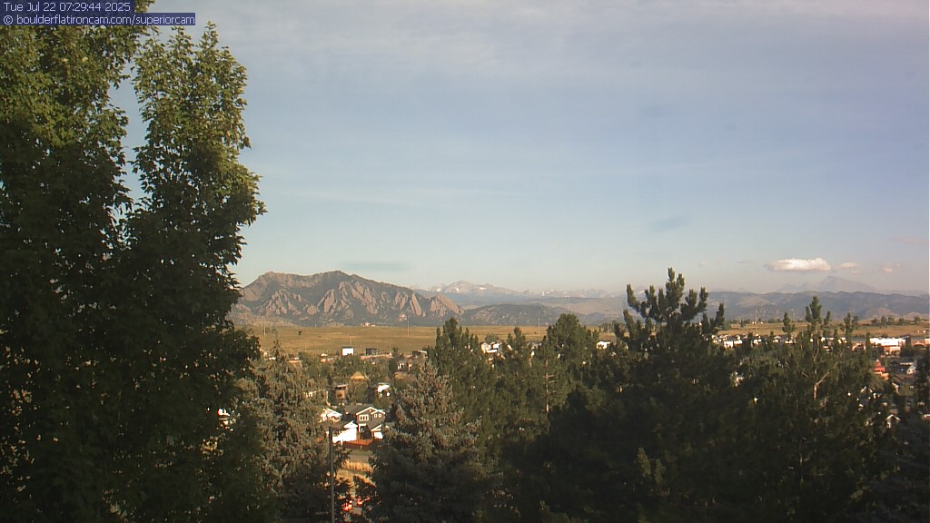 The Superior cam has a great view to the northwest over Boulder, the Flatirons, Indian Peaks and Long’s Peak.   The Coal Creek trail is visible in the foreground with old town Superior.  Thanks to Aweida Venture Partners management for the great view.