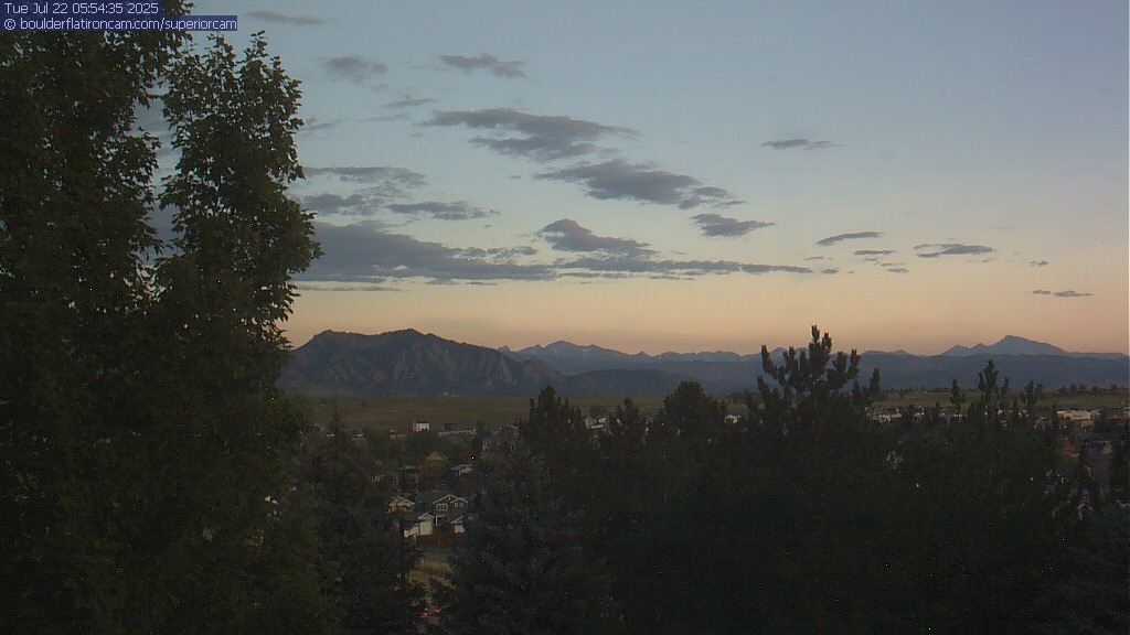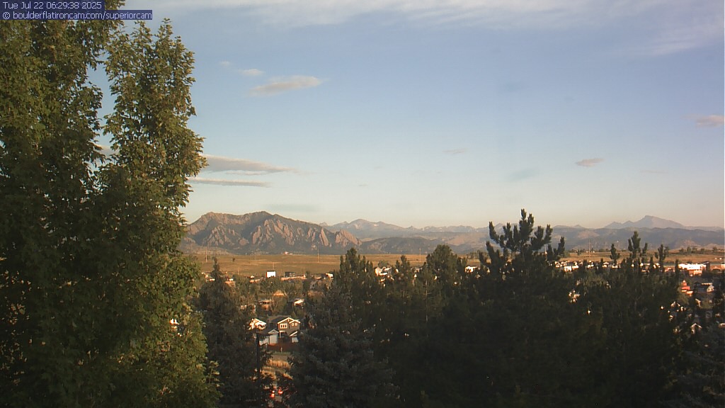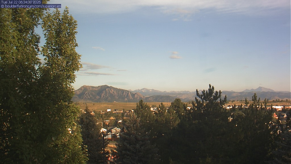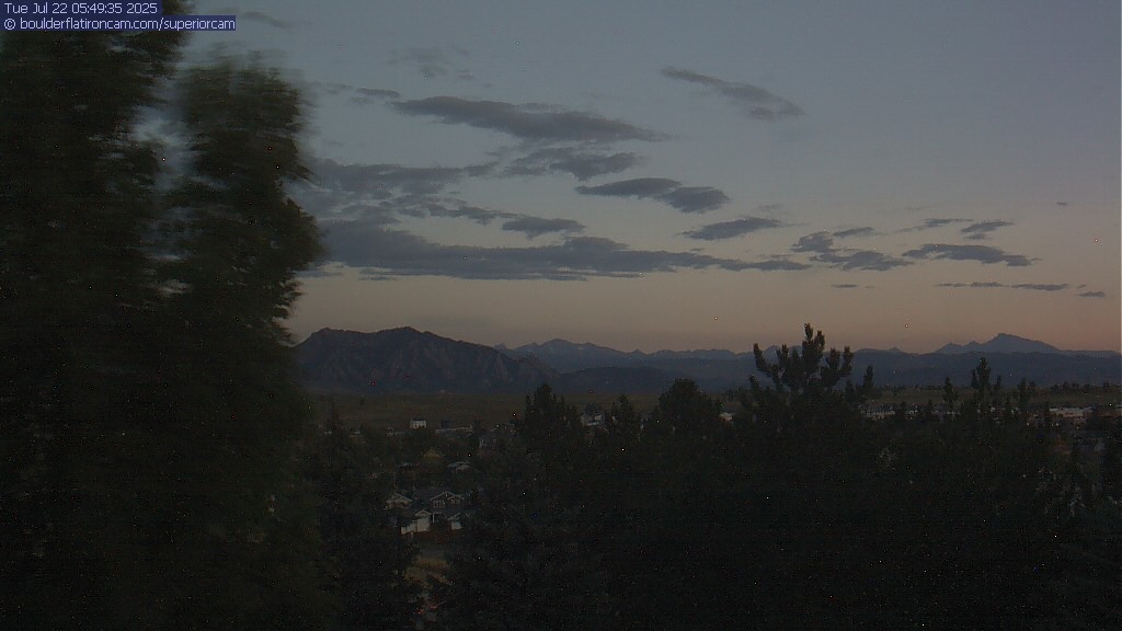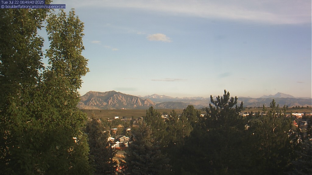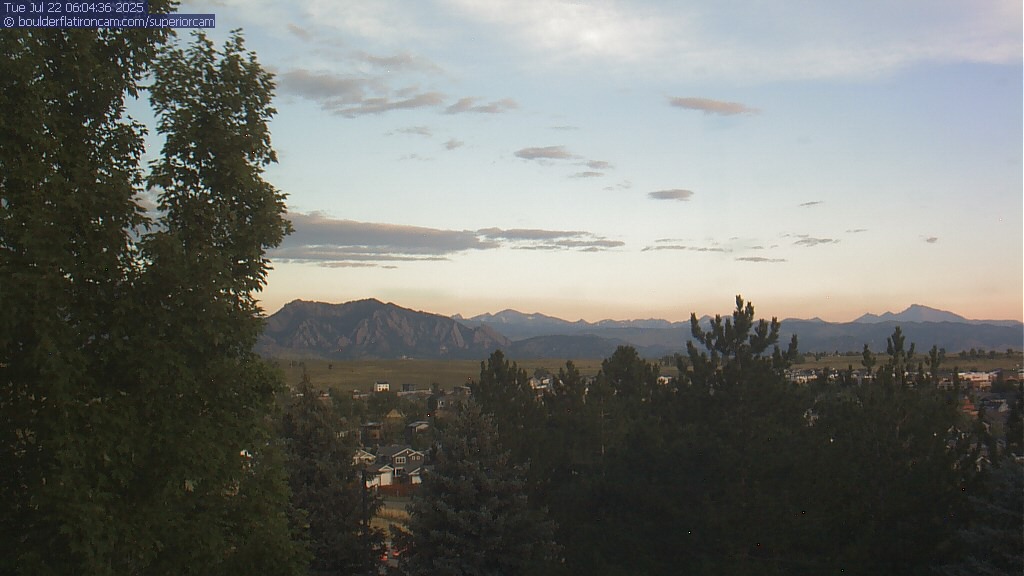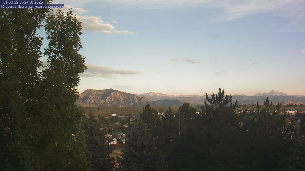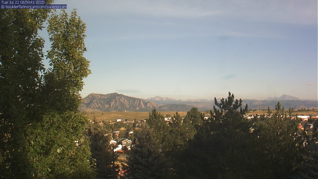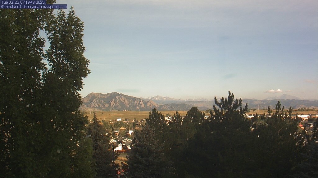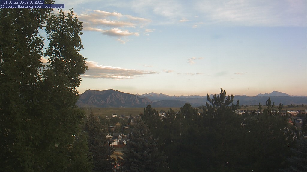 The Superior cam has a great view to the northwest over Boulder, the Flatirons, Indian Peaks and Long’s Peak.   The Coal Creek trail is visible in the foreground with old town Superior.  Thanks to Aweida Venture Partners management for the great view.