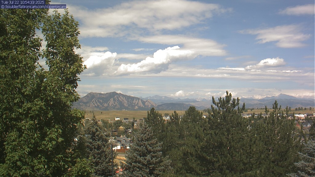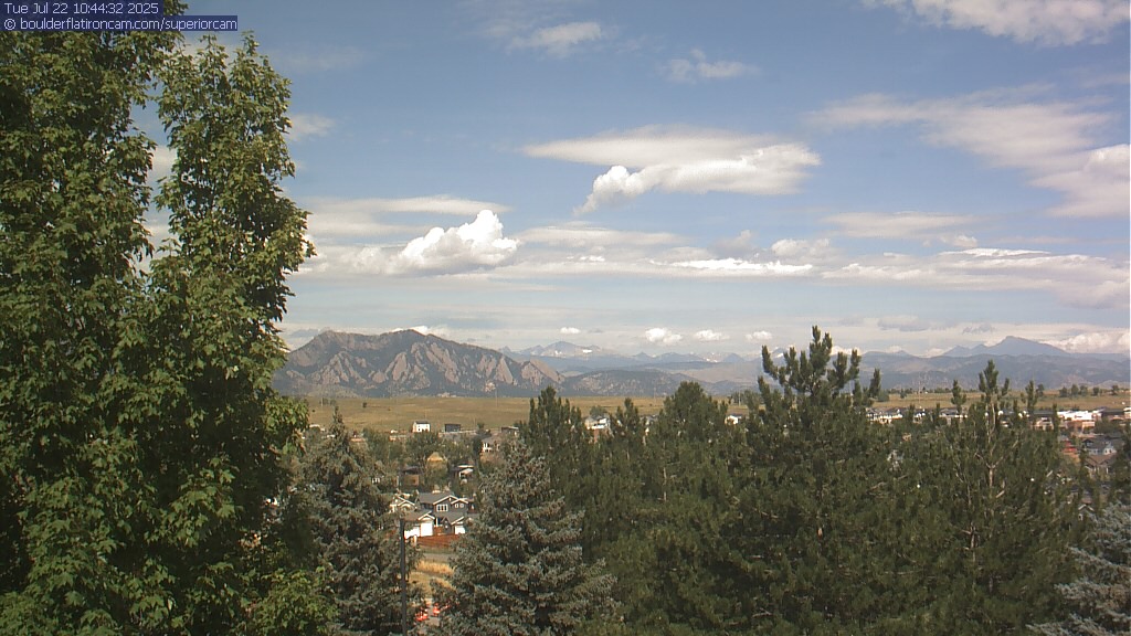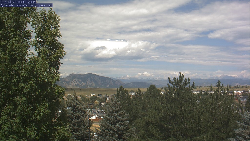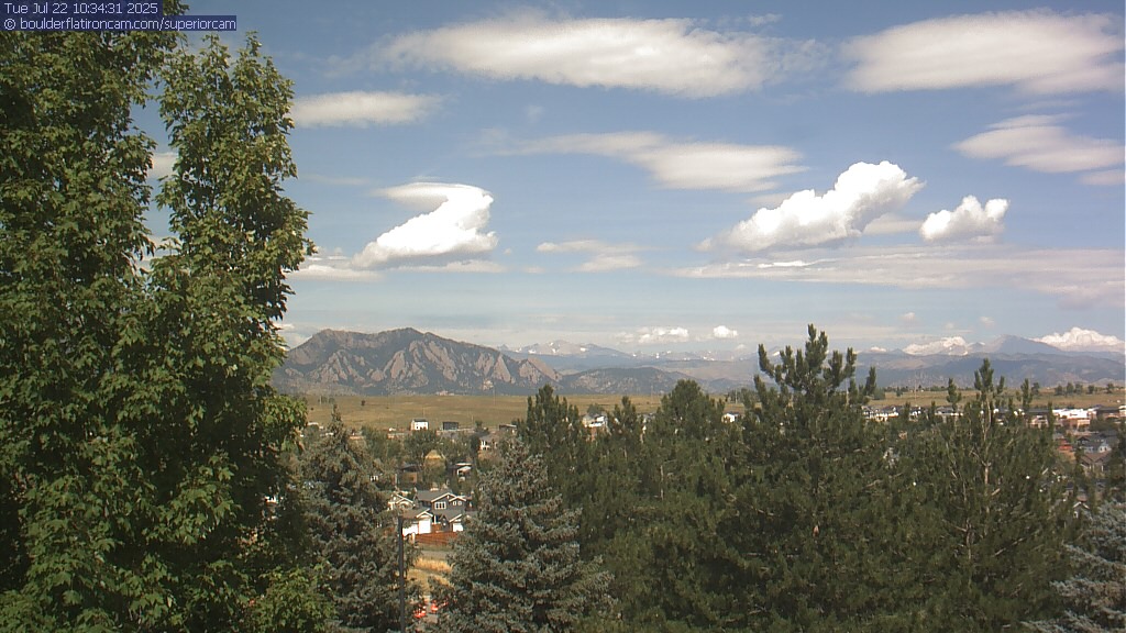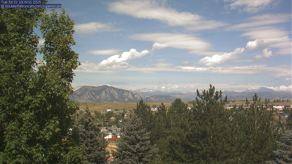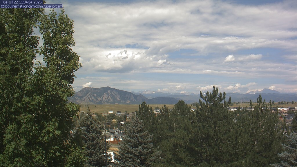 The Superior cam has a great view to the northwest over Boulder, the Flatirons, Indian Peaks and Long’s Peak.   The Coal Creek trail is visible in the foreground with old town Superior.  Thanks to Aweida Venture Partners management for the great view.