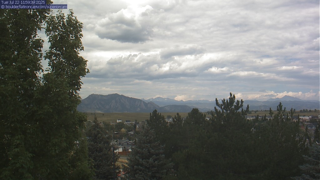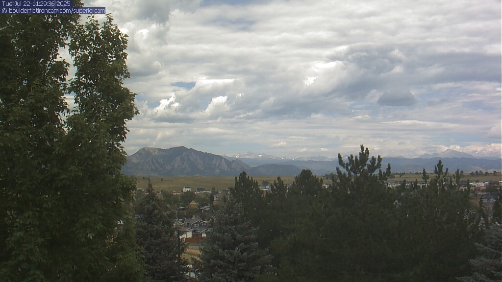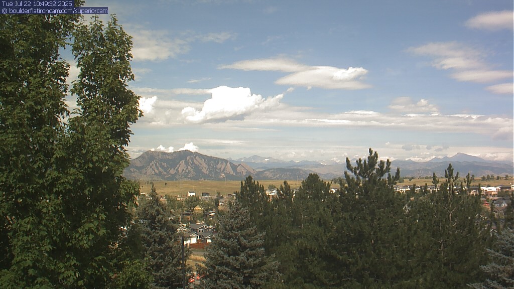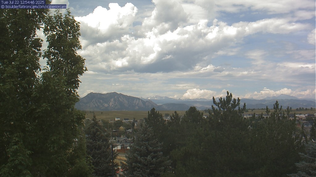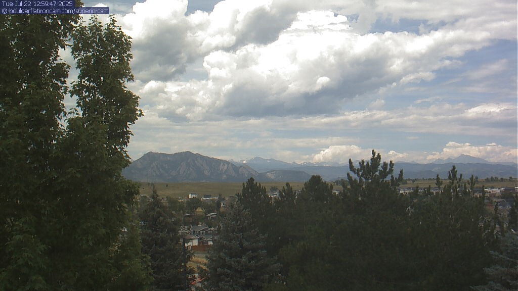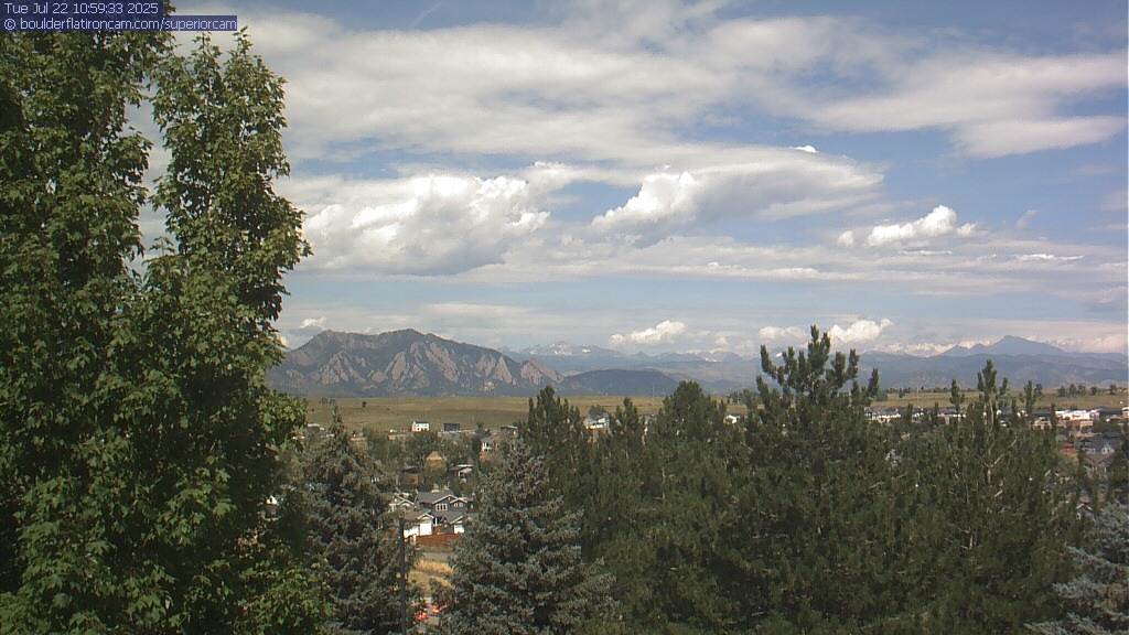 The Superior cam has a great view to the northwest over Boulder, the Flatirons, Indian Peaks and Long’s Peak.   The Coal Creek trail is visible in the foreground with old town Superior.  Thanks to Aweida Venture Partners management for the great view.