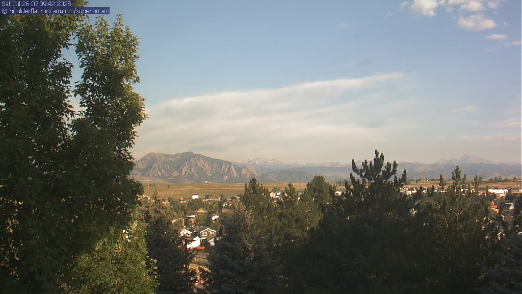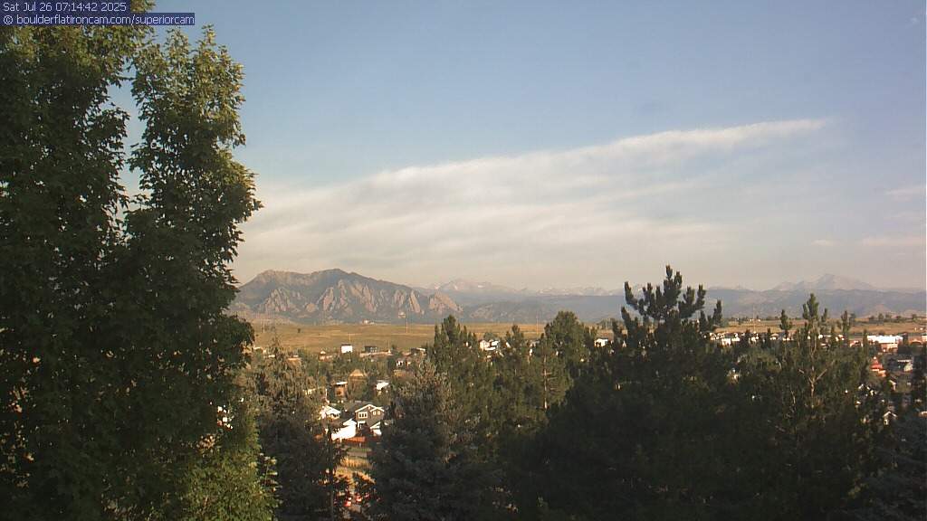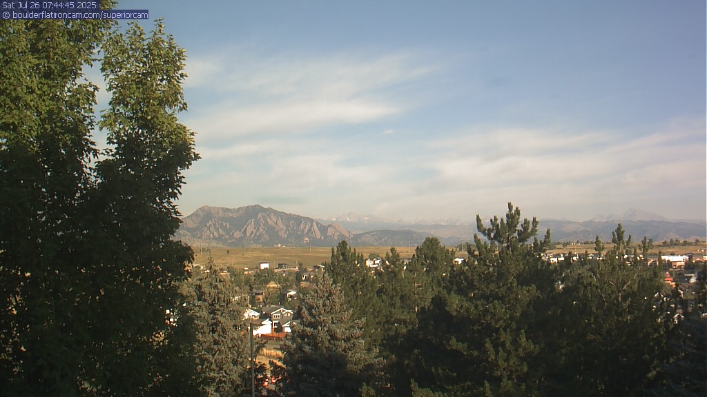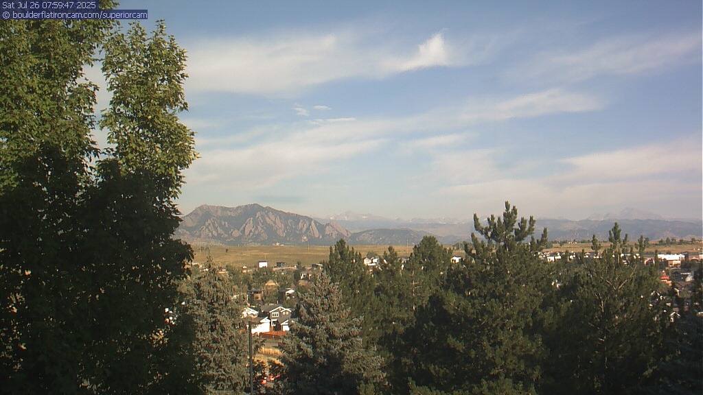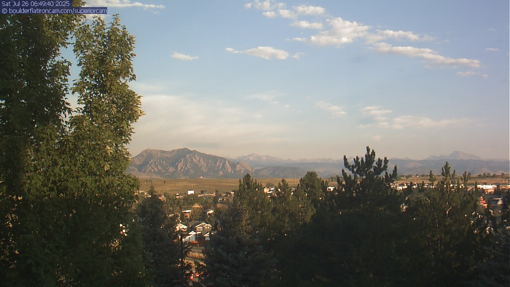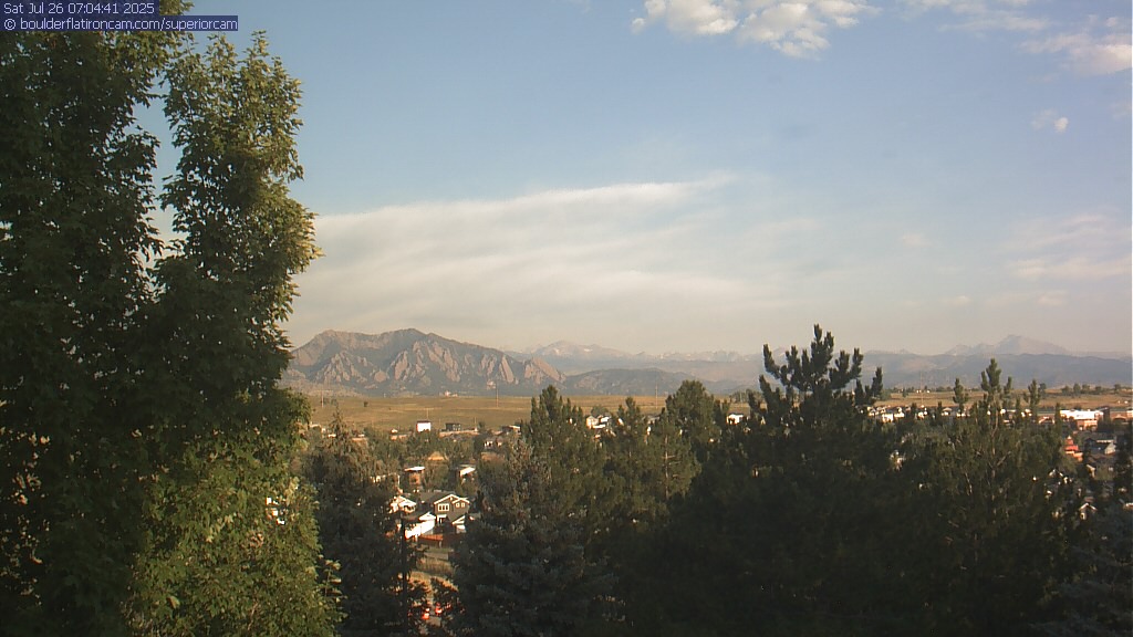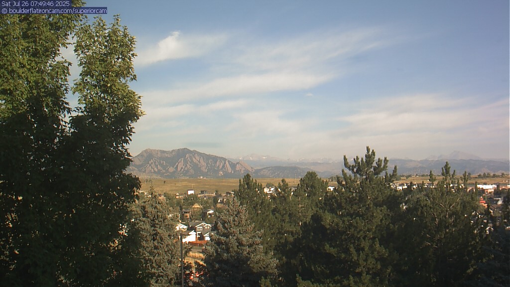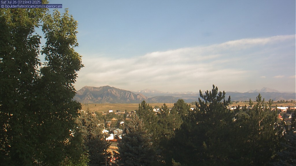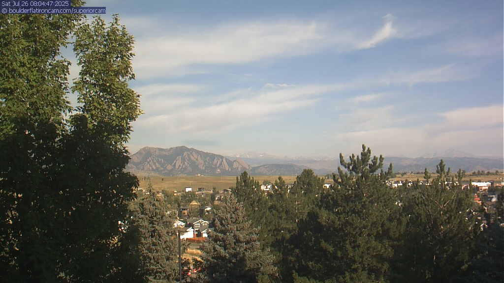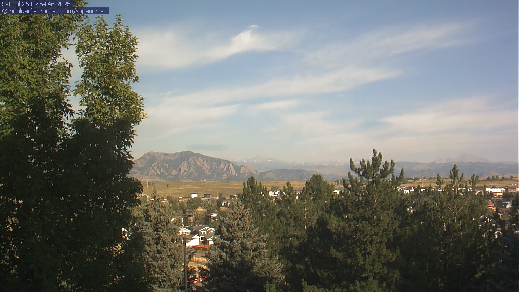 The Superior cam has a great view to the northwest over Boulder, the Flatirons, Indian Peaks and Long’s Peak.   The Coal Creek trail is visible in the foreground with old town Superior.  Thanks to Aweida Venture Partners management for the great view.